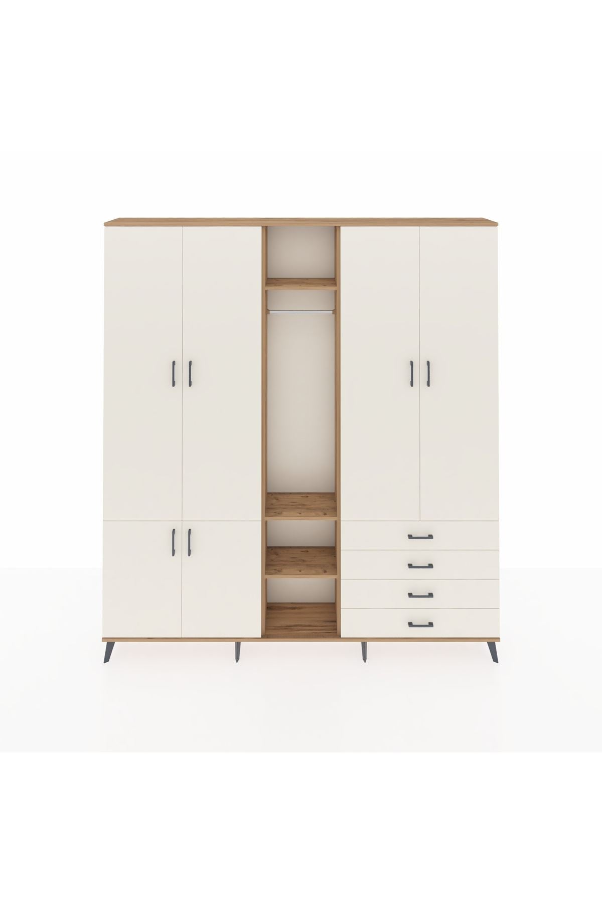 Arges Gardrop 14 Raflı 4 Çekmeceli Tek Askılı 220x30x243 Çam-Aytaşı