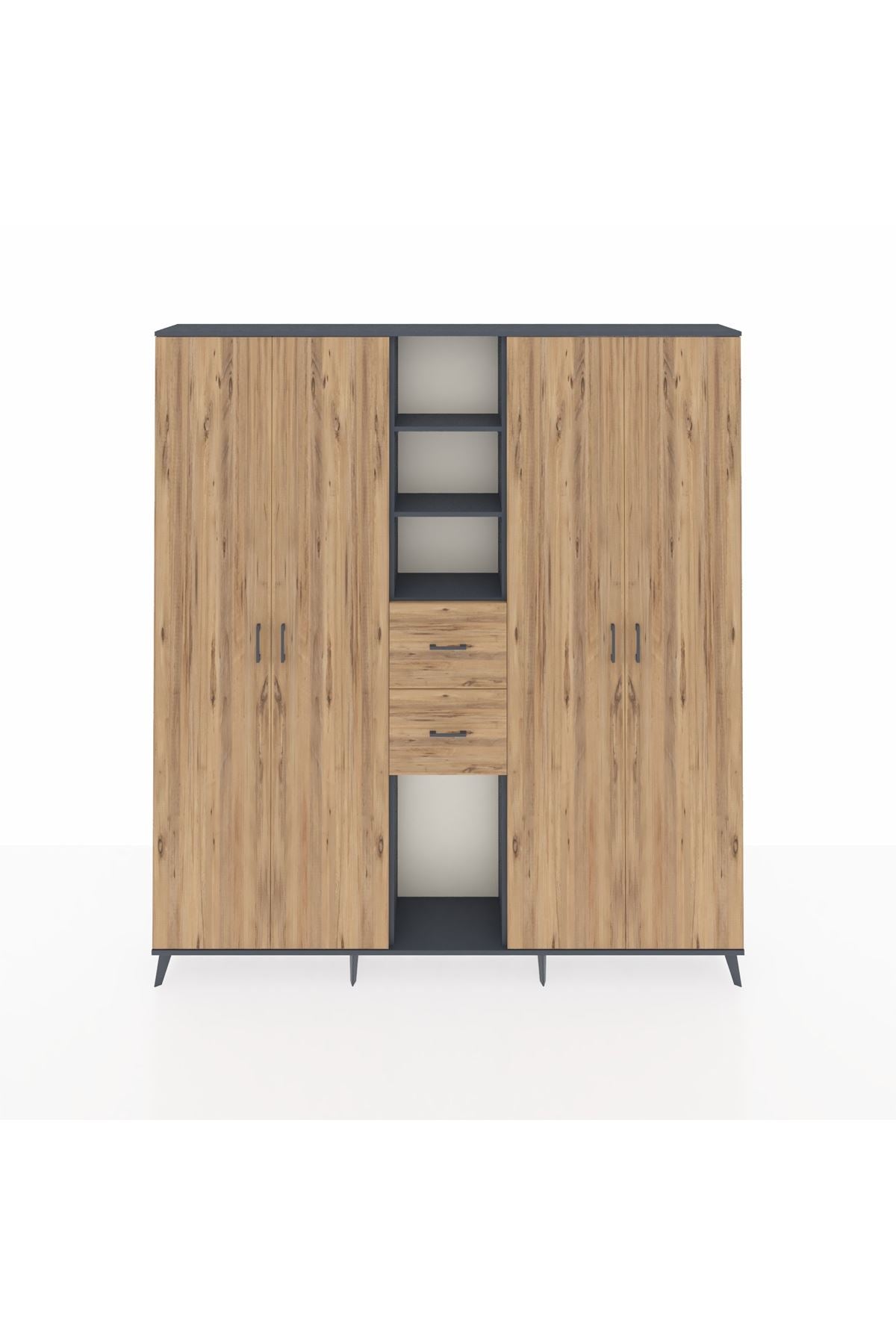 Arges Gardrop 15 Raflı 2 Çekmeceli 4 Kapaklı 220x30x243 Antrasit-Çam