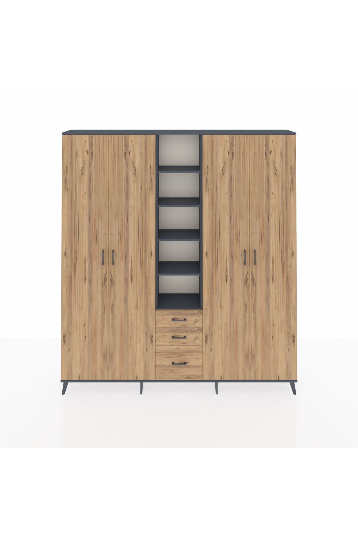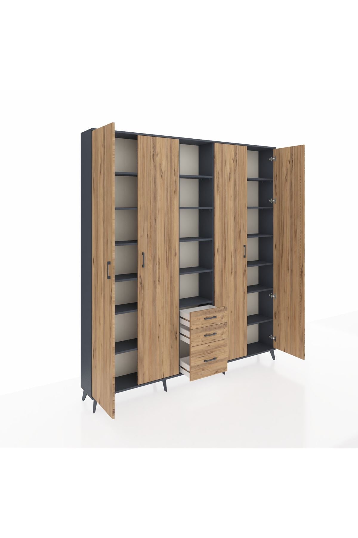 Arges Gardrop 17 Raflı 3 Çekmeceli 4 Kapaklı 220x30x243 Antrasit-Çam