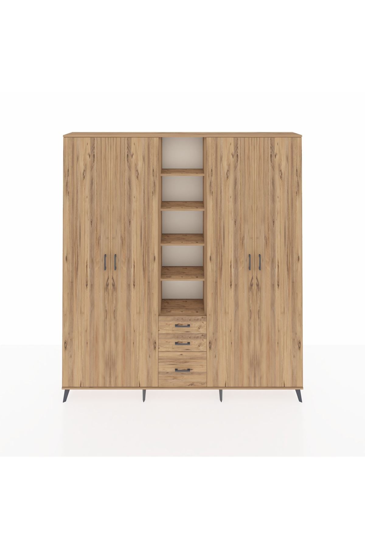 Arges Gardrop 17 Raflı 3 Çekmeceli 4 Kapaklı 220x30x243 Çam-Çam