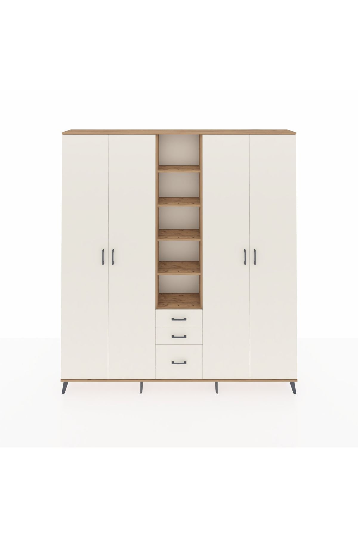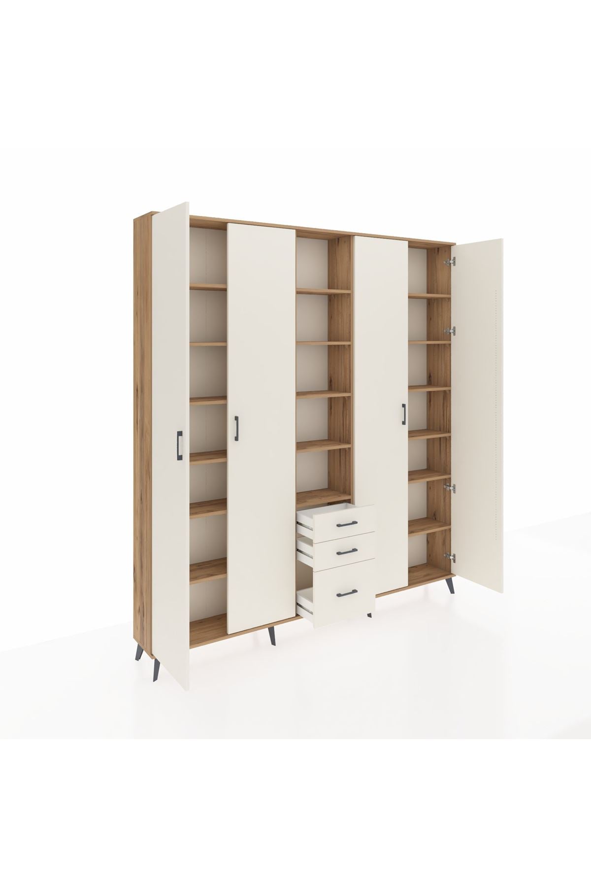 Arges Gardrop 17 Raflı 3 Çekmeceli 4 Kapaklı 220x30x243 Çam-Aytaşı