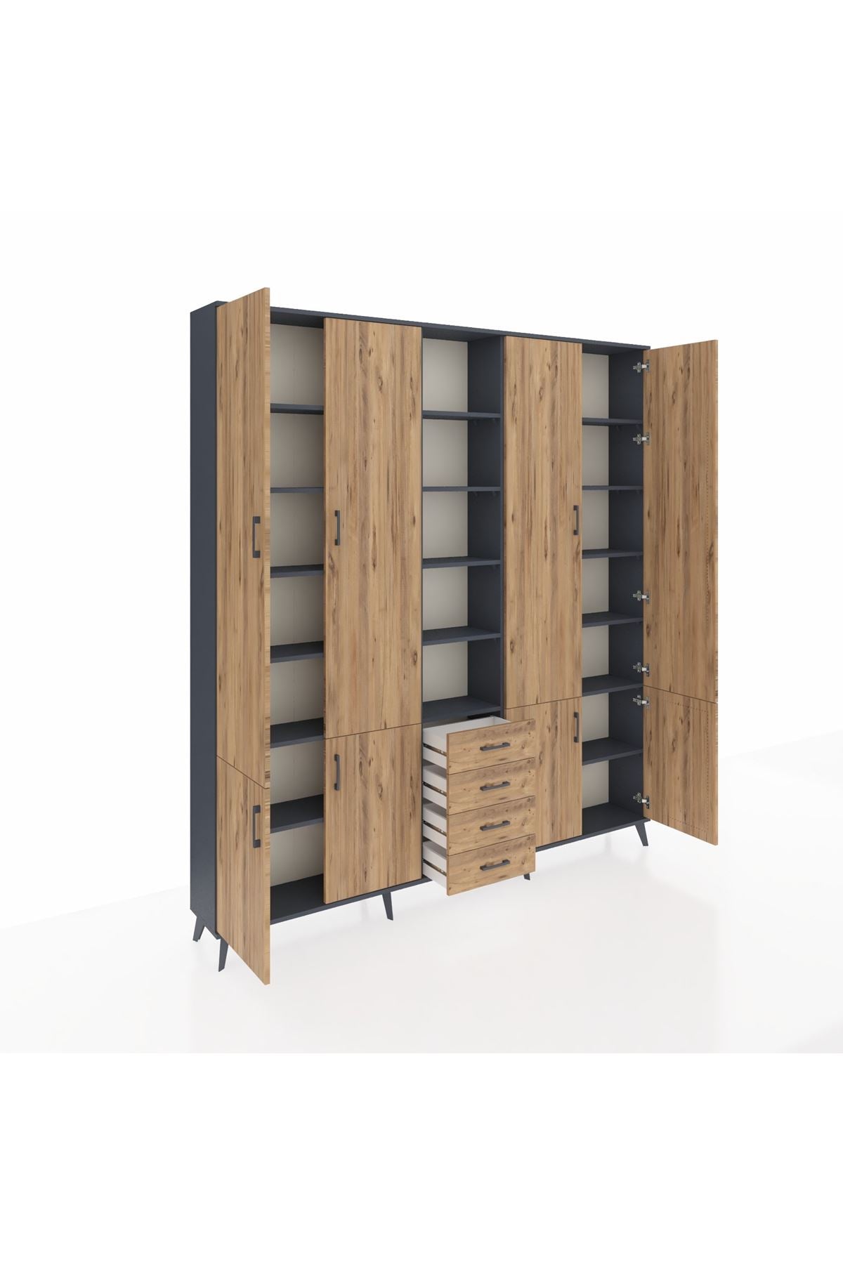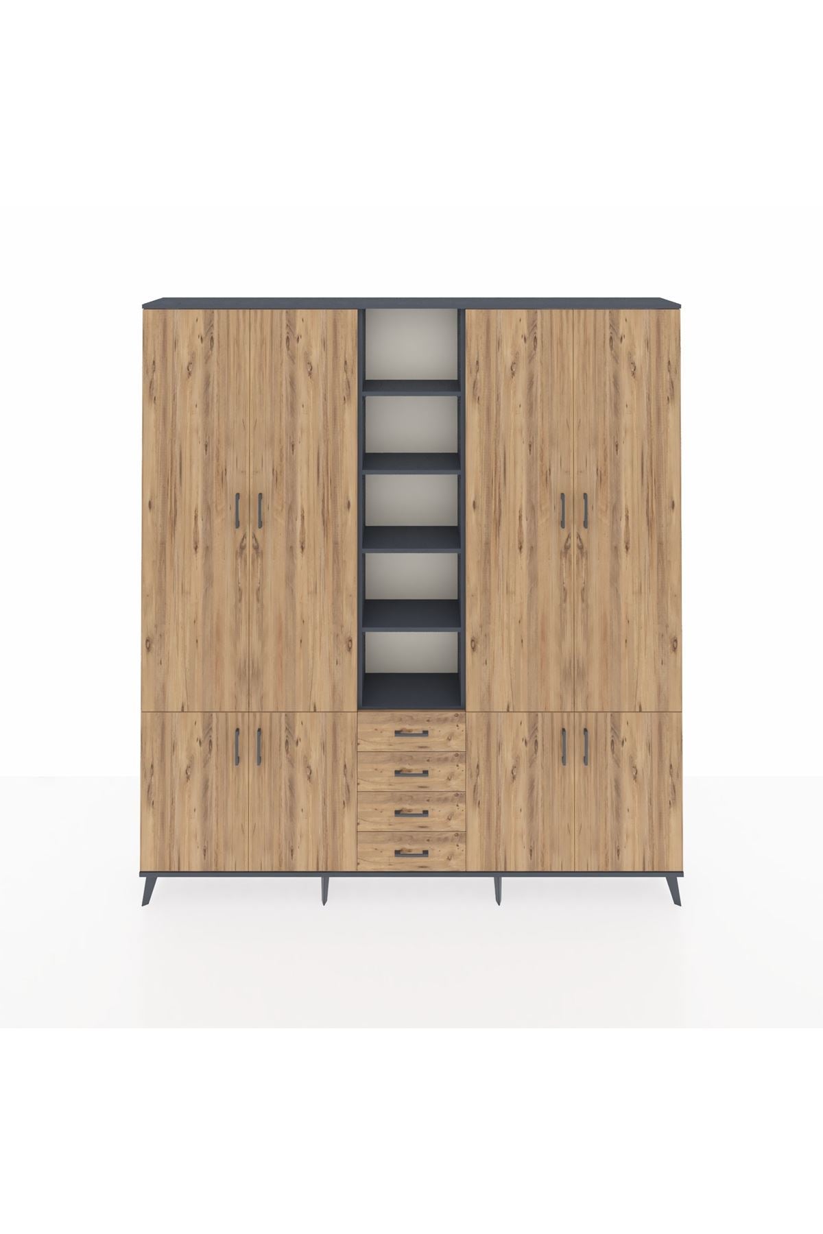 Arges Gardrop 17 Raflı 4 Çekmeceli 8 Kapaklı 220x30x243 Antrasit-Çam