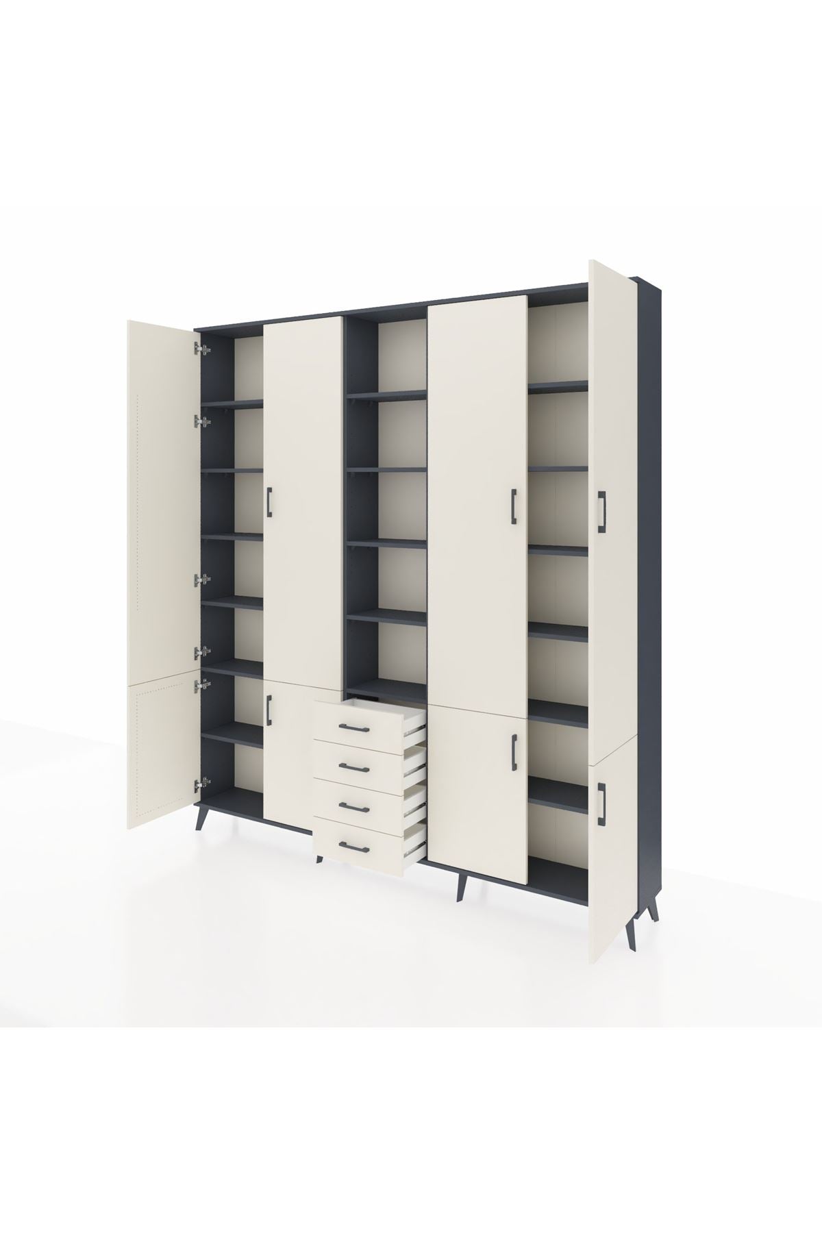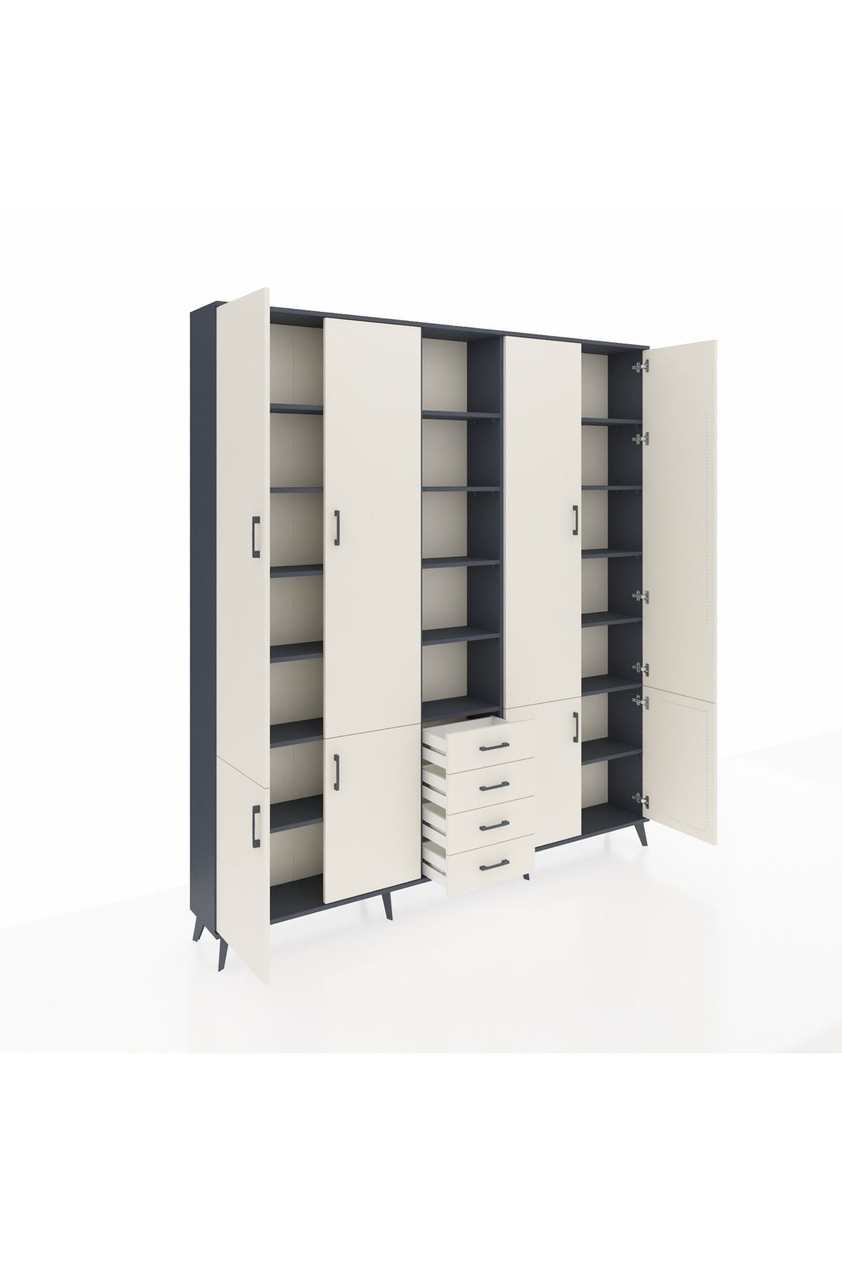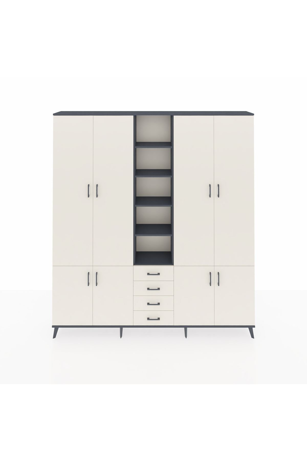 Arges Gardrop 17 Raflı 4 Çekmeceli 8 Kapaklı 220x30x243 Antrasit-Aytaşı
