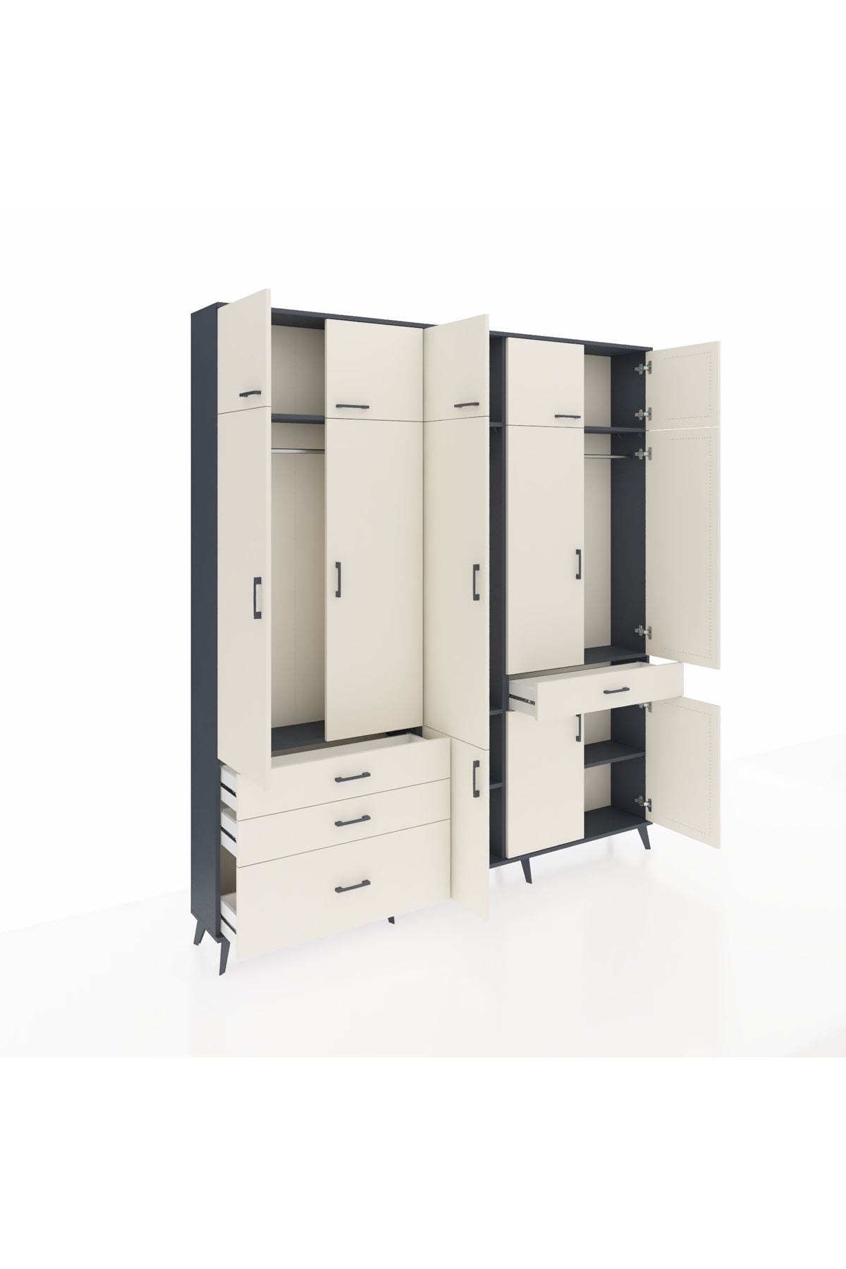 Arges Gardrop 8 Raflı 4 Çekmeceli 3 Askılı 220x30x243 Antrasit-Aytaşı