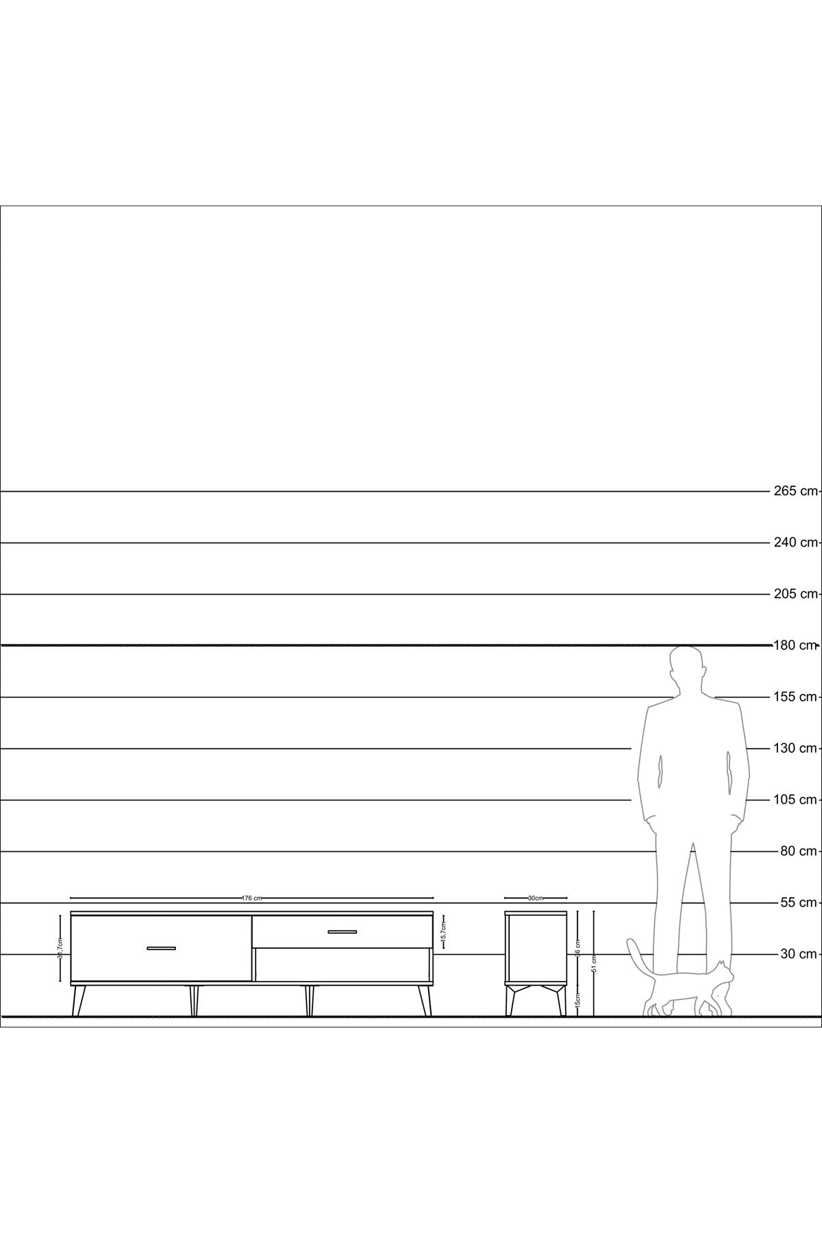 Arges TV Ünitesi 2 Çekmeceli 176x30x51 Çam-Antrasit/Antrasit