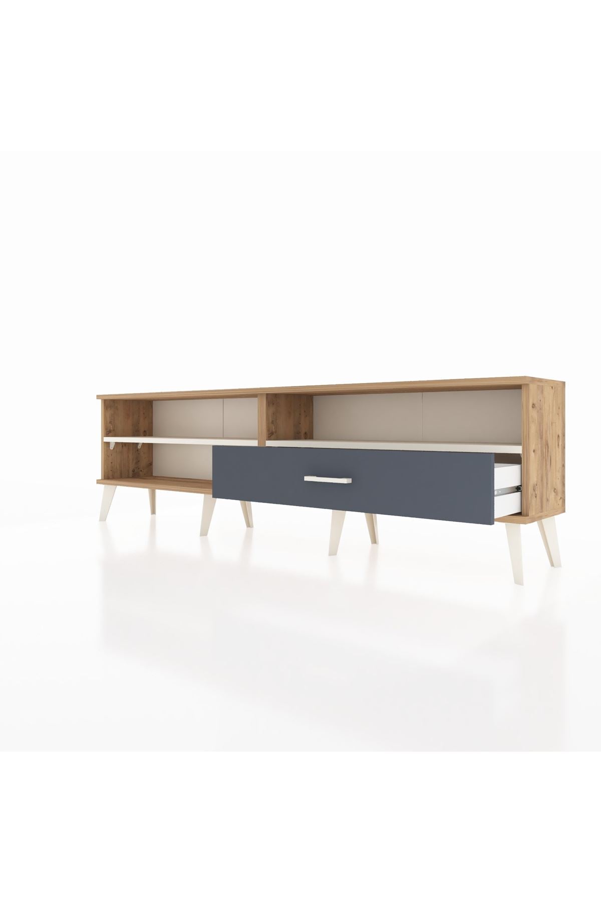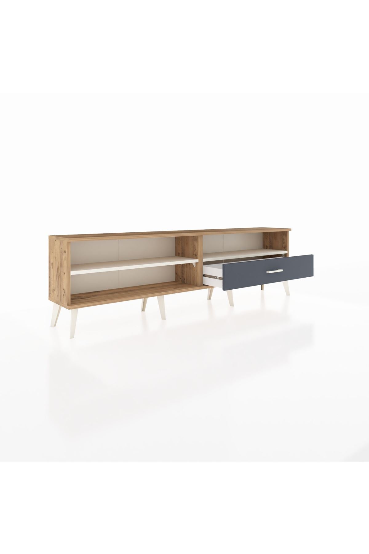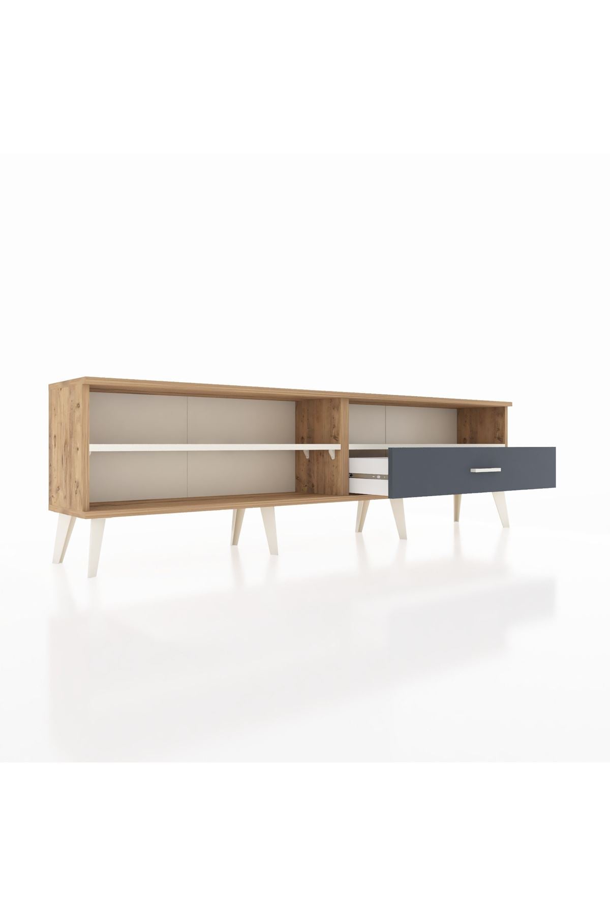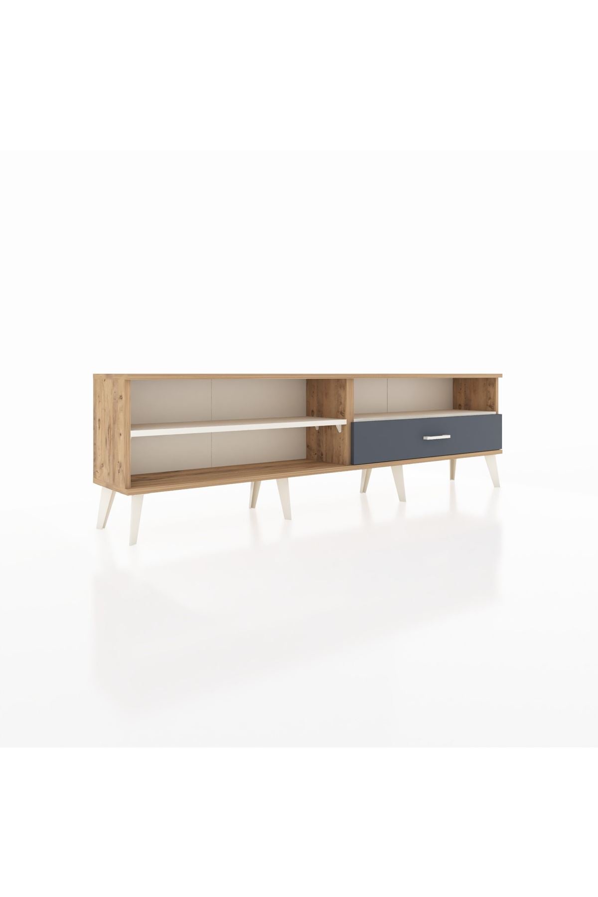 Arges TV Ünitesi 2 Raflı Tek Çekmeceli 176x30x51 Çam-Aytaşı/Antrasit