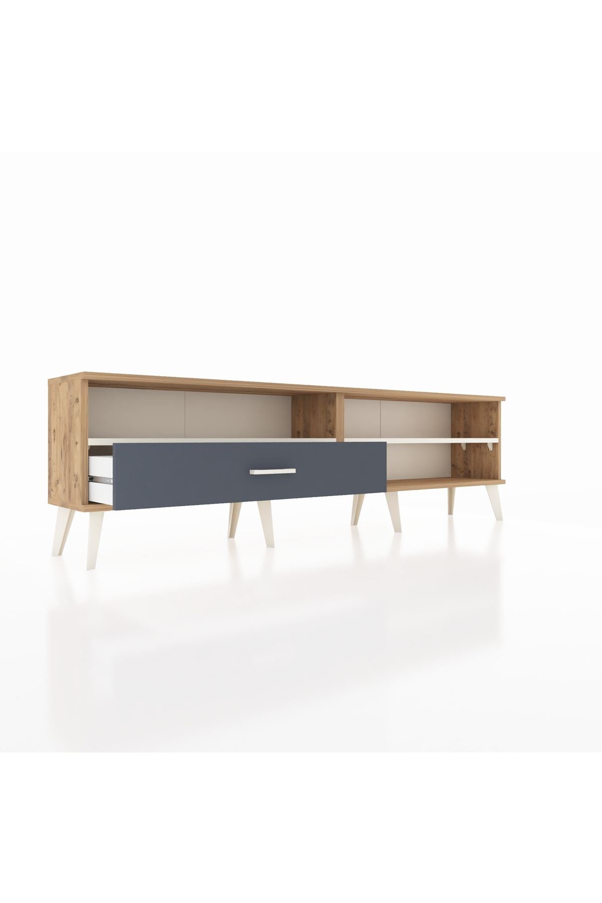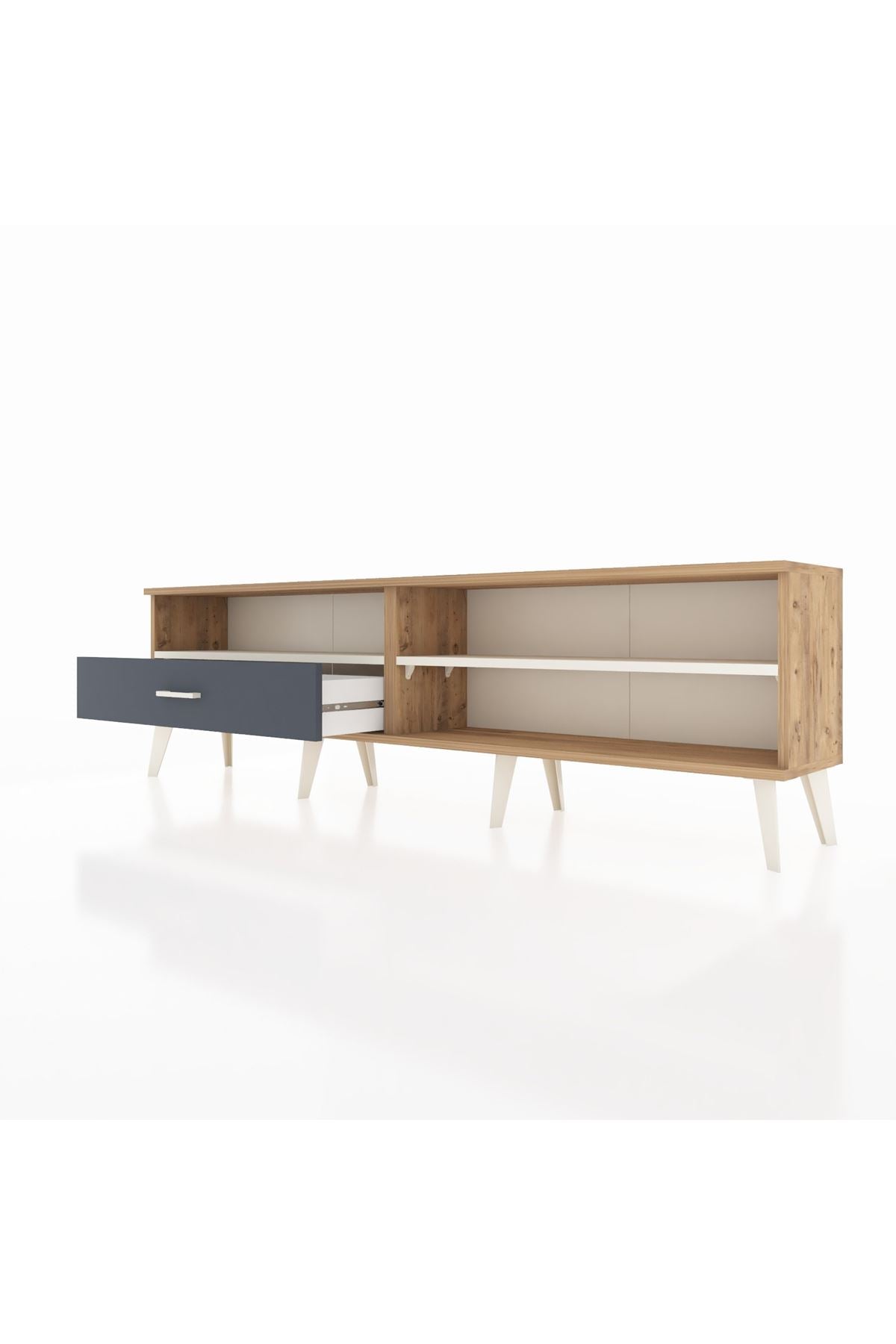 Arges TV Ünitesi 2 Raflı Tek Çekmeceli 176x30x51 Çam-Aytaşı/Antrasit