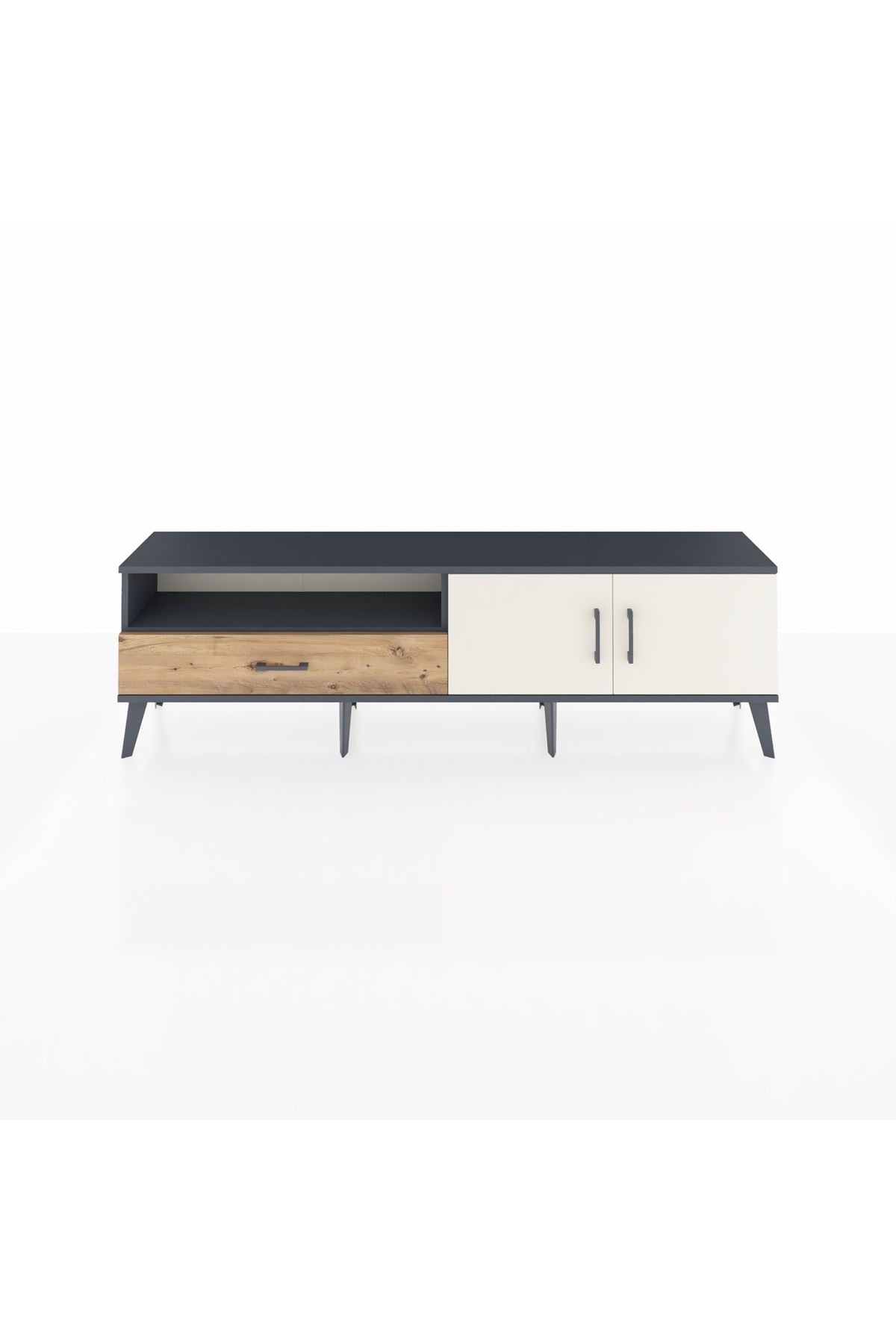 Arges TV Ünitesi 2 Raflı Tek Çekmeceli 2 Kapaklı 176x30x51 Antrasit-Aytaşı/Çam