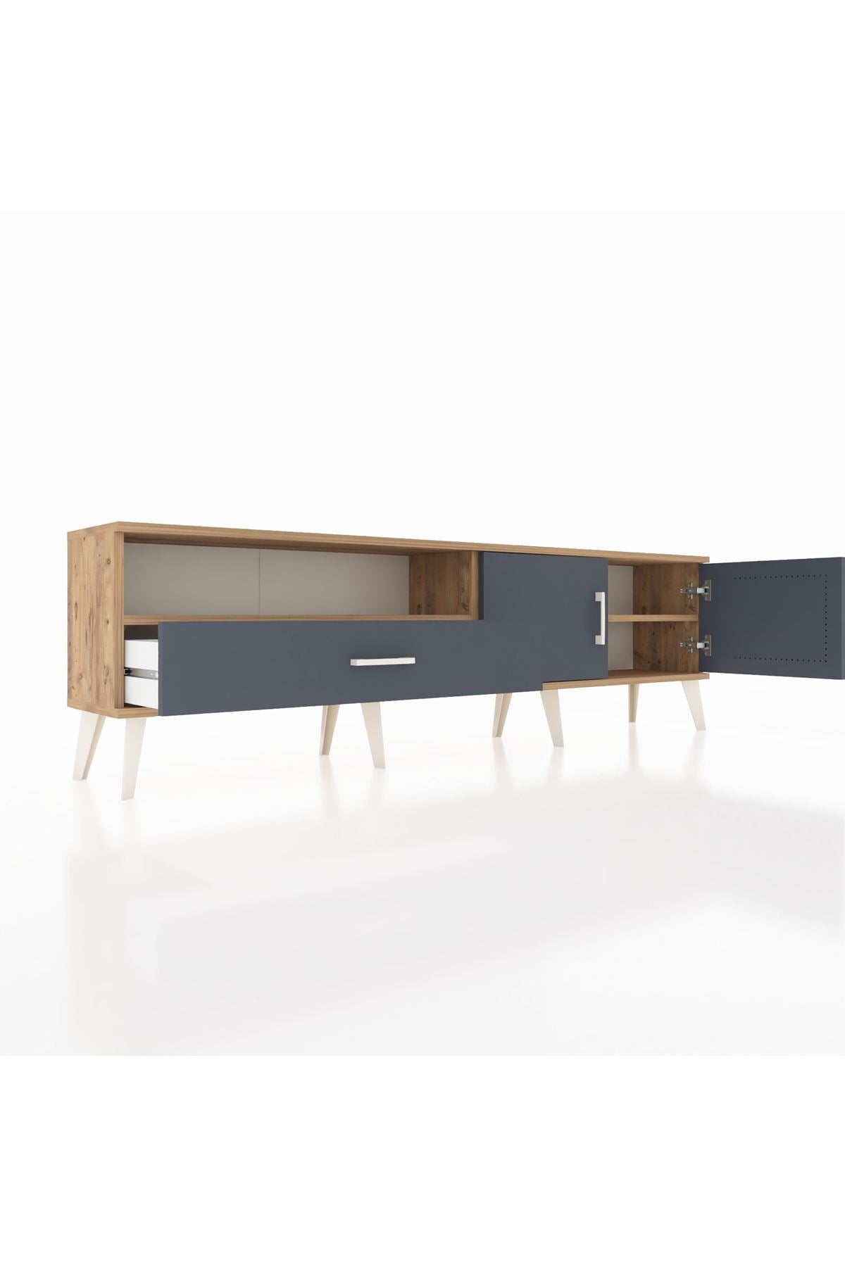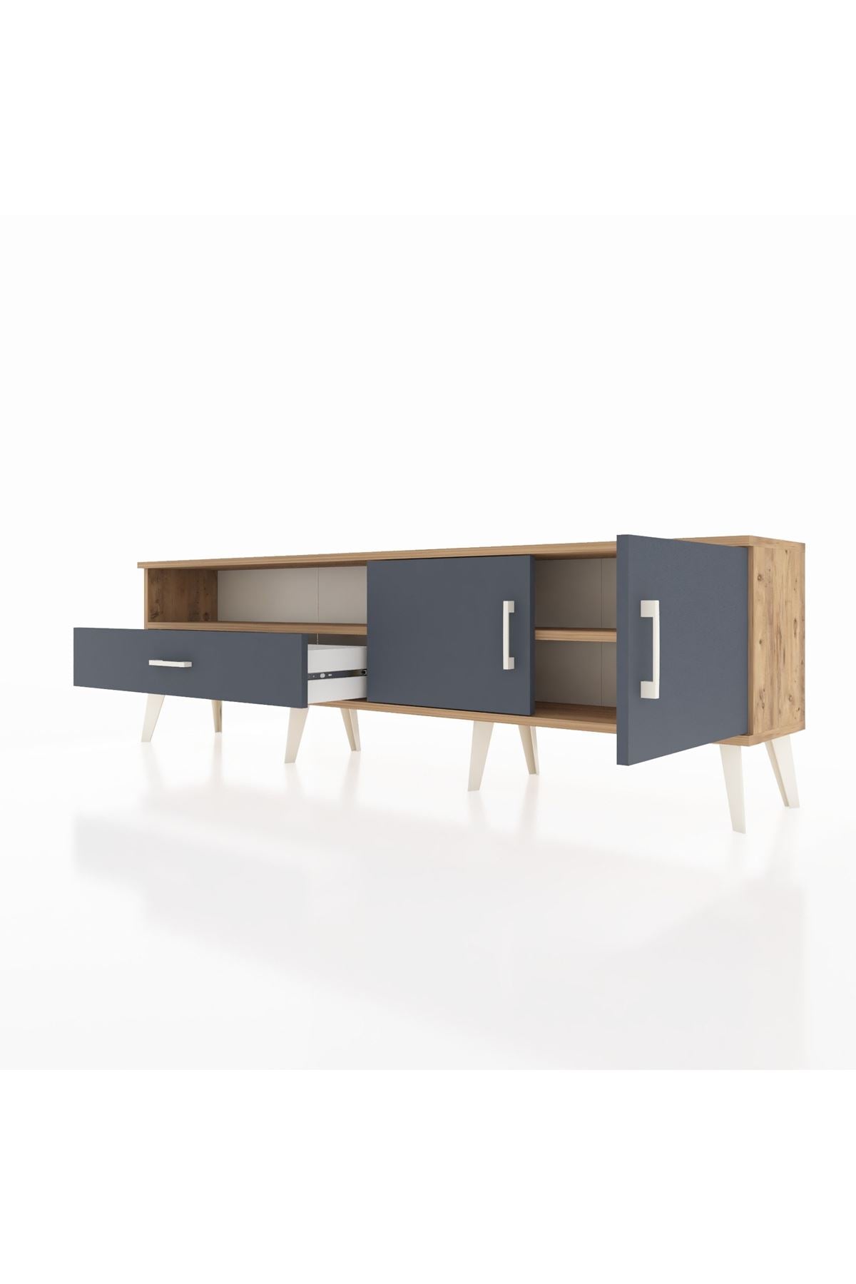 Arges TV Ünitesi 2 Raflı Tek Çekmeceli 2 Kapaklı 176x30x51 Çam-Antrasit/Antrasit