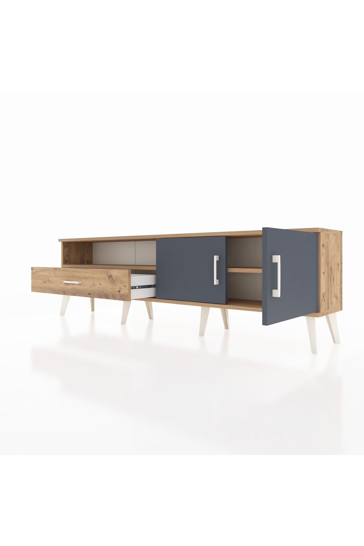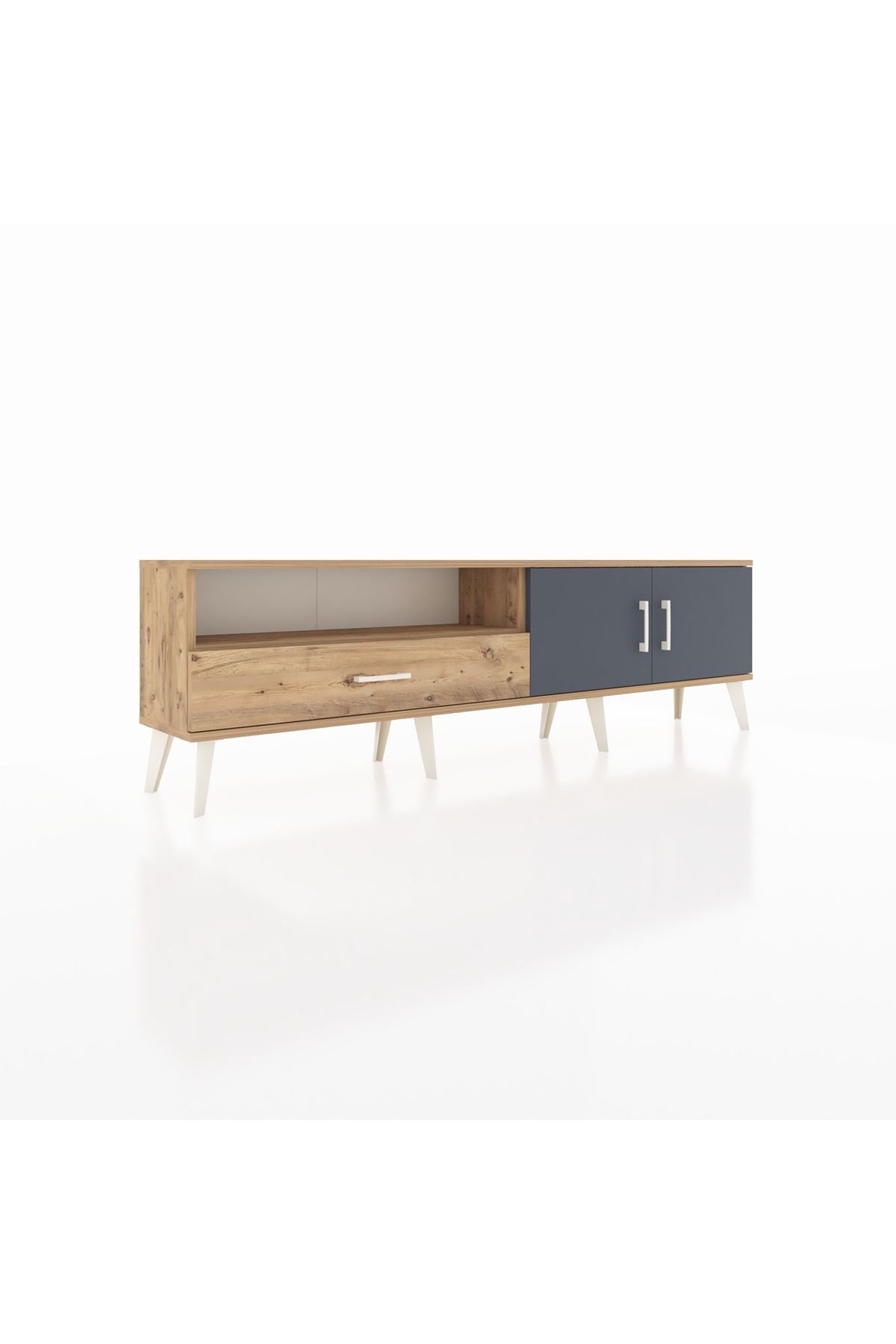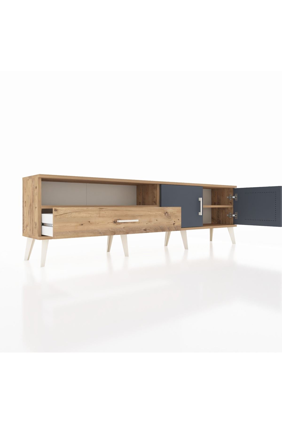 Arges TV Ünitesi 2 Raflı Tek Çekmeceli 2 Kapaklı 176x30x51 Çam-Antrasit/Çam