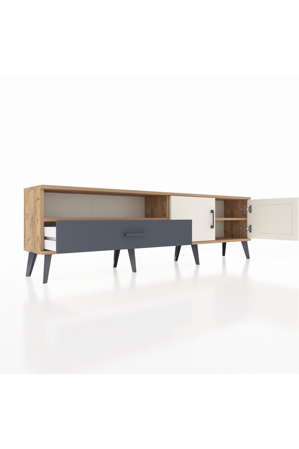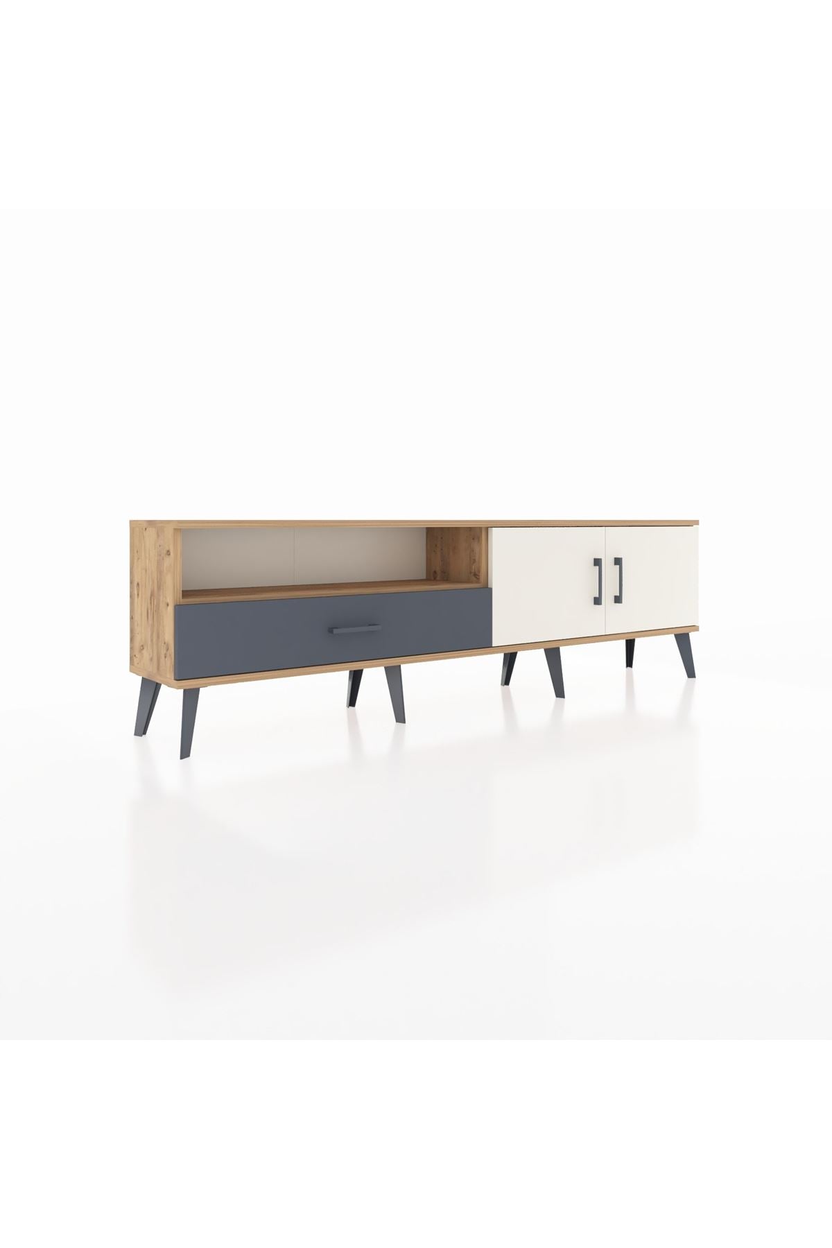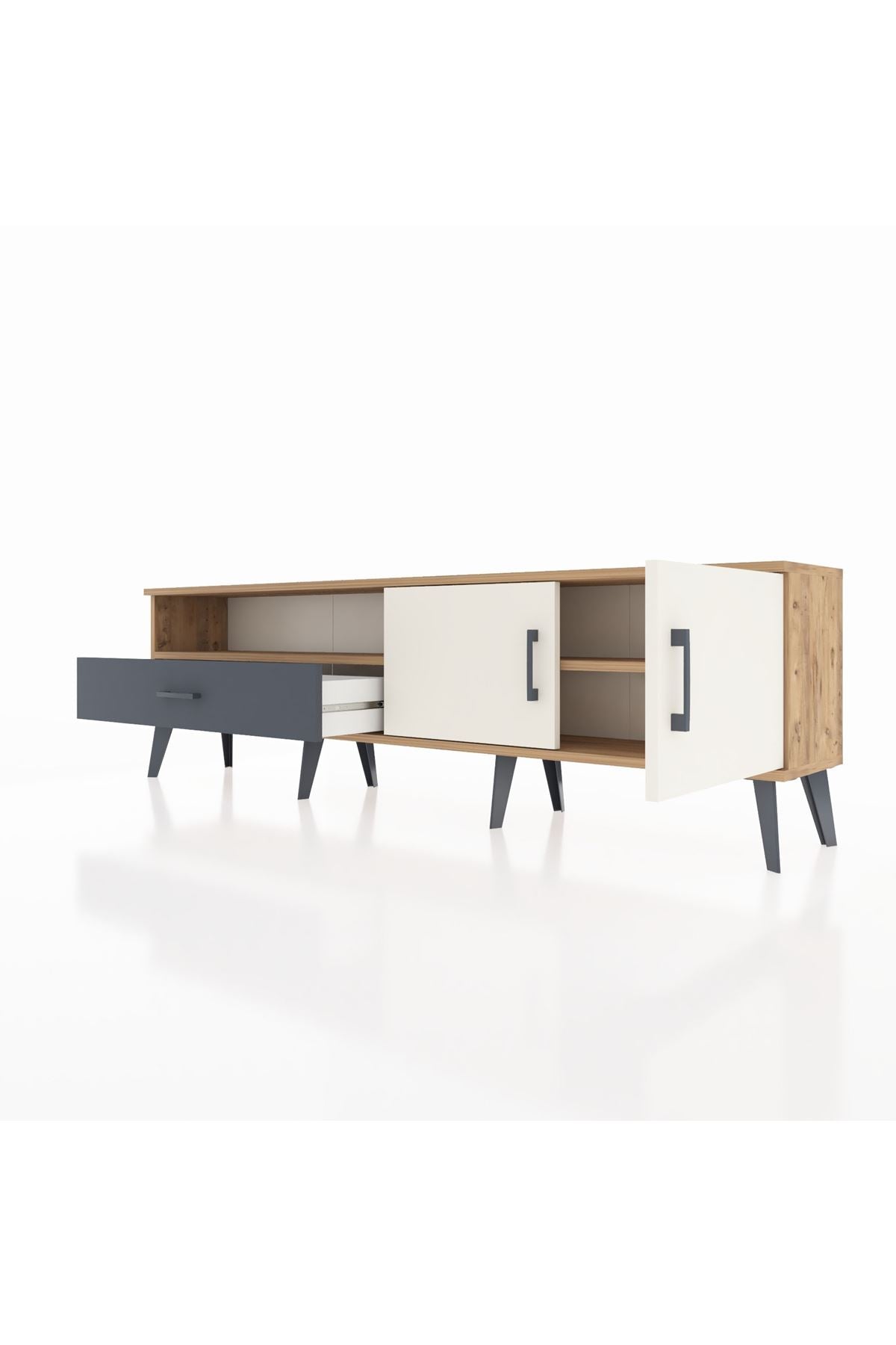 Arges TV Ünitesi 2 Raflı Tek Çekmeceli 2 Kapaklı 176x30x51 Çam-Aytaşı/Antrasit