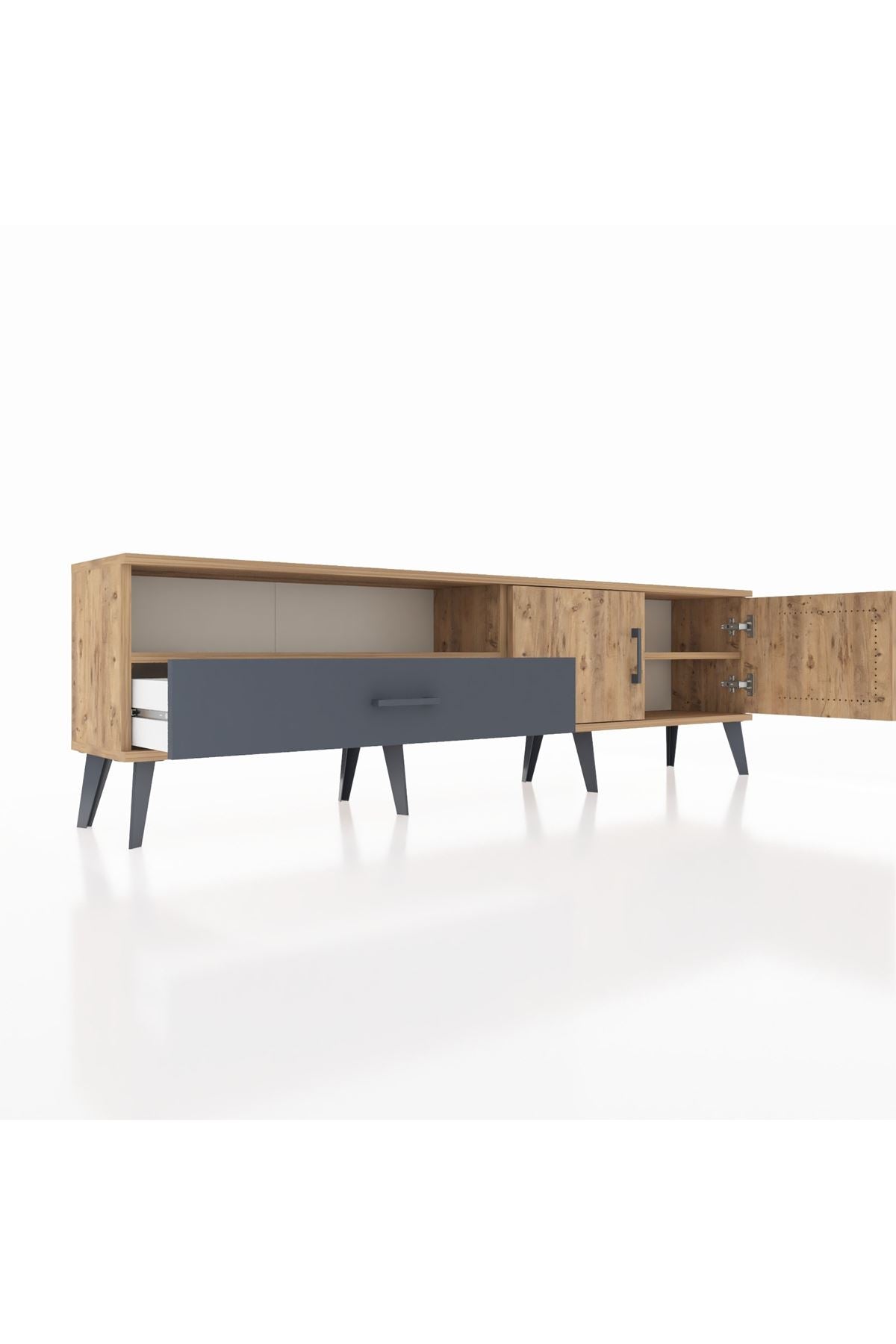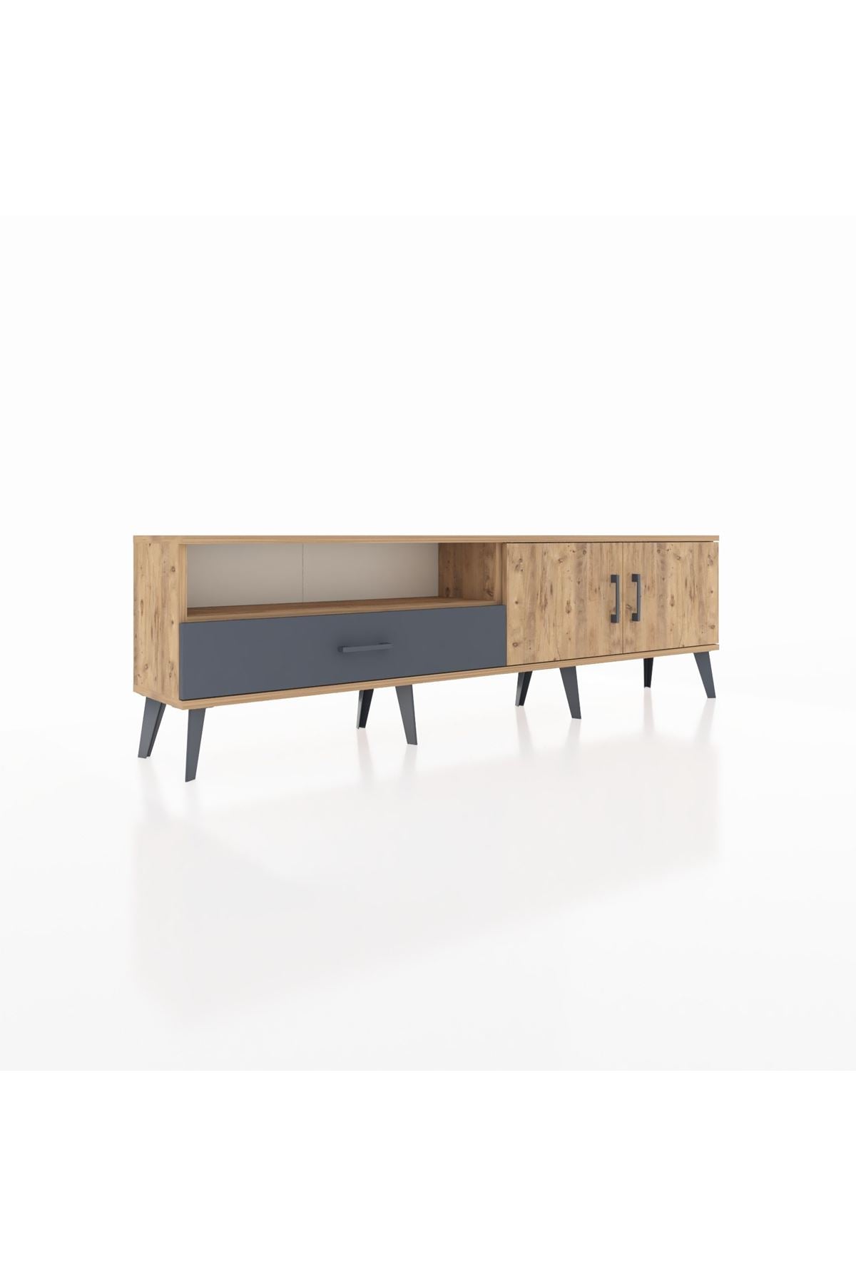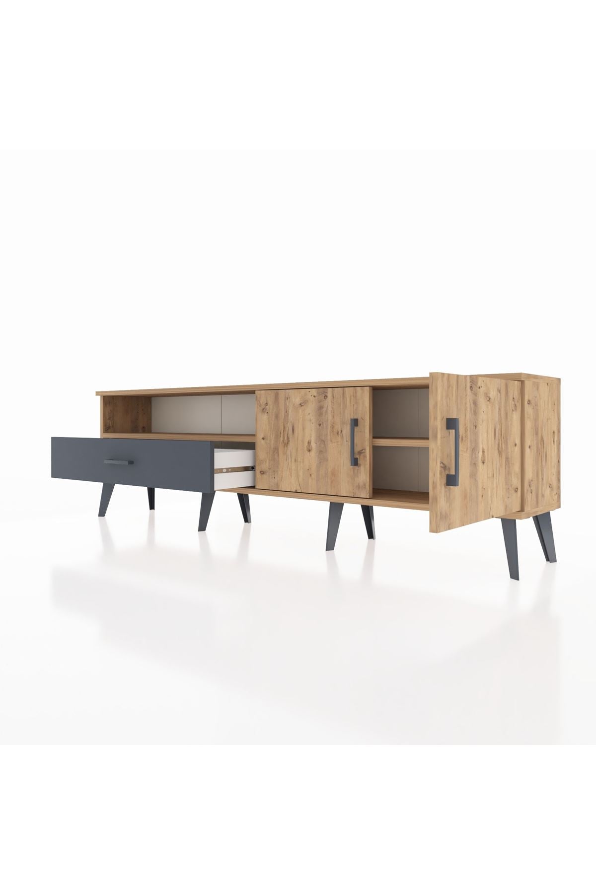 Arges TV Ünitesi 2 Raflı Tek Çekmeceli 2 Kapaklı 176x30x51 Çam-Çam/Antrasit