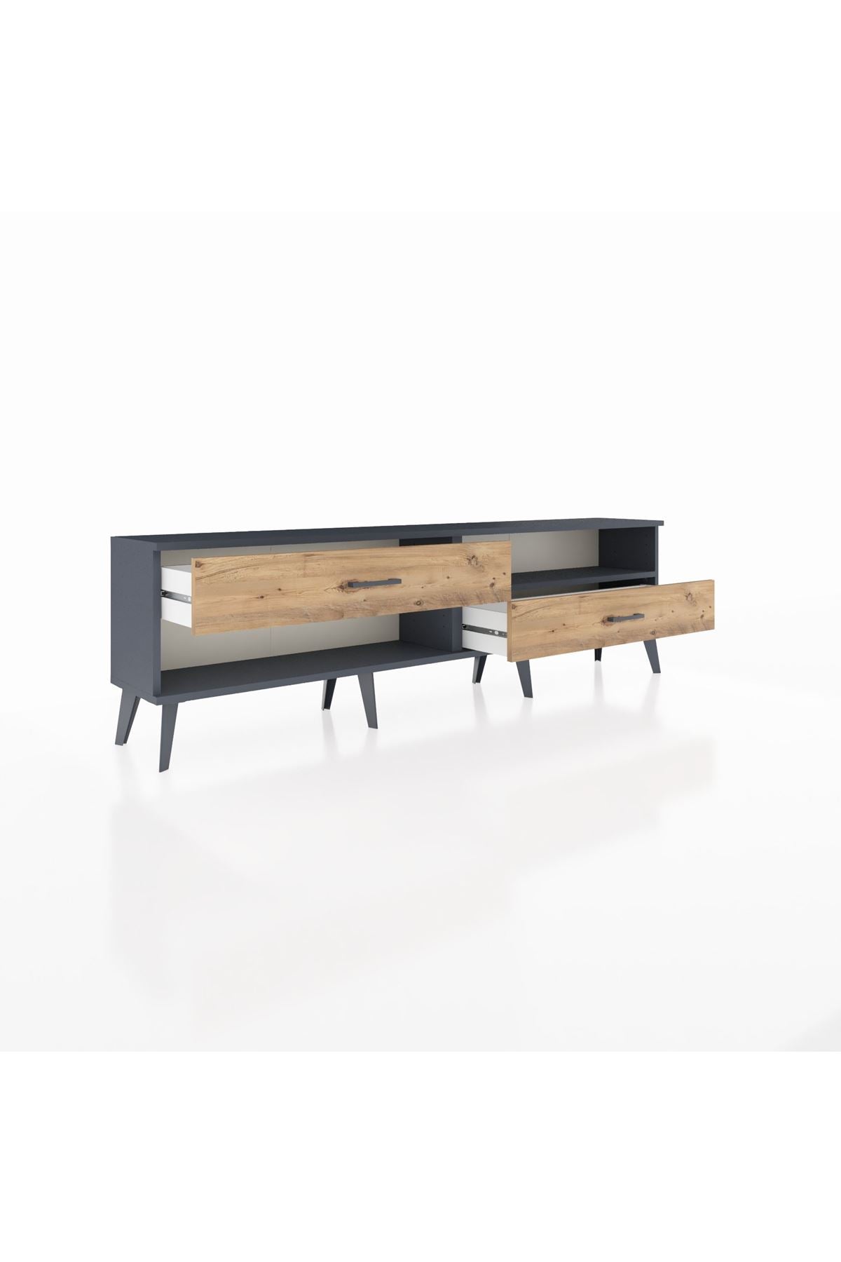 Arges TV Ünitesi Tek Raflı 2 Çekmeceli 176x30x51 Antrasit-Antrasit/Çam