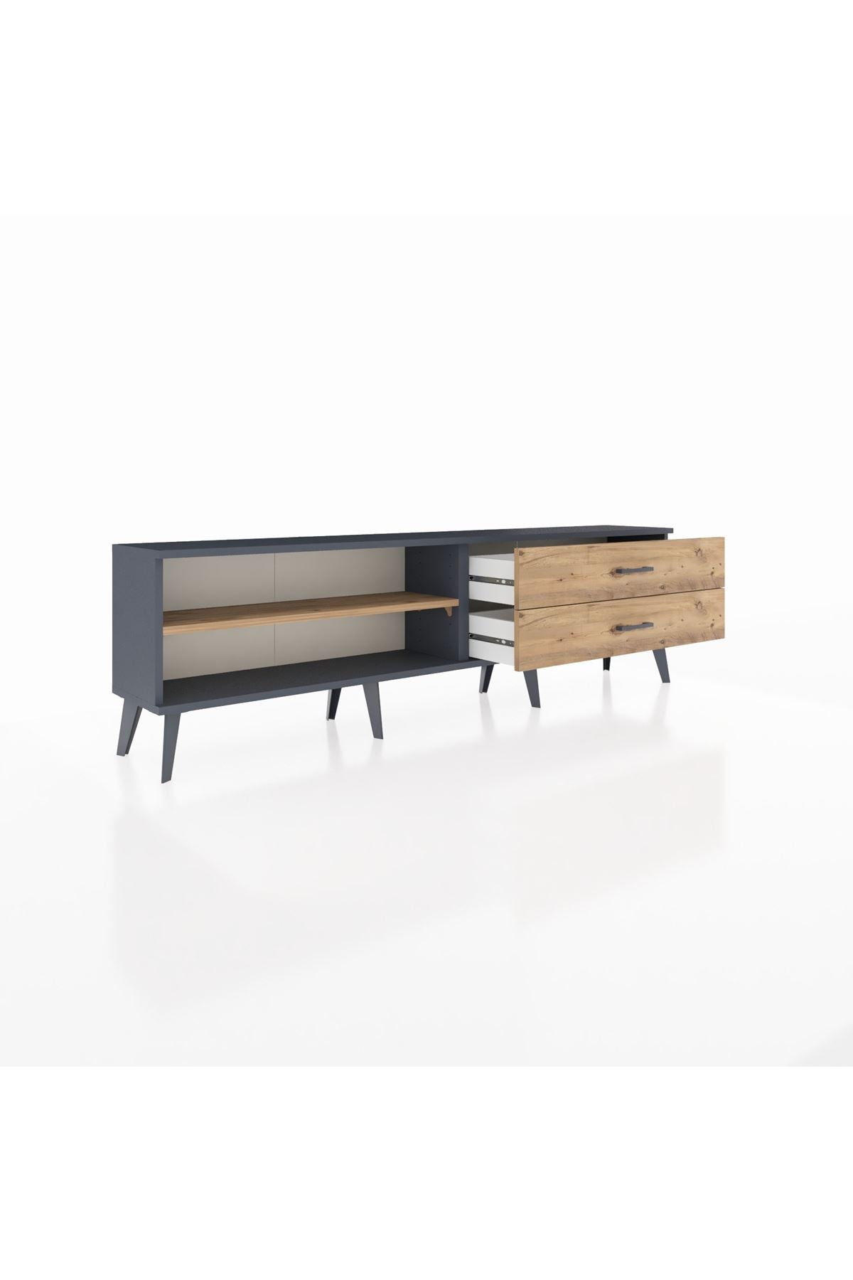 Arges TV Ünitesi Tek Raflı 2 Çekmeceli 176x30x51 Antrasit-Çam/Çam