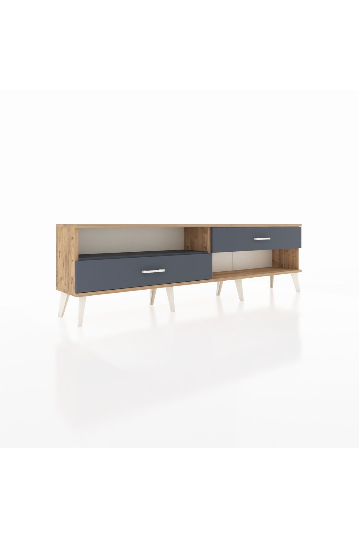 Arges TV Ünitesi Tek Raflı 2 Çekmeceli 176x30x51 Çam-Antrasit/Antrasit