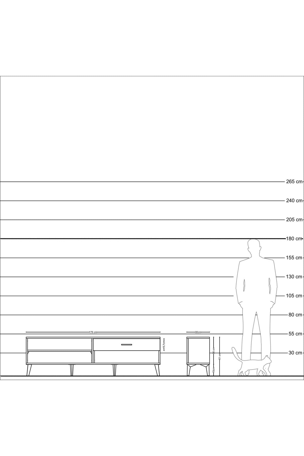 Arges TV Ünitesi Tek Raflı Tek Çekmeceli 176x30x51 Antrasit-Antrasit/Antrasit
