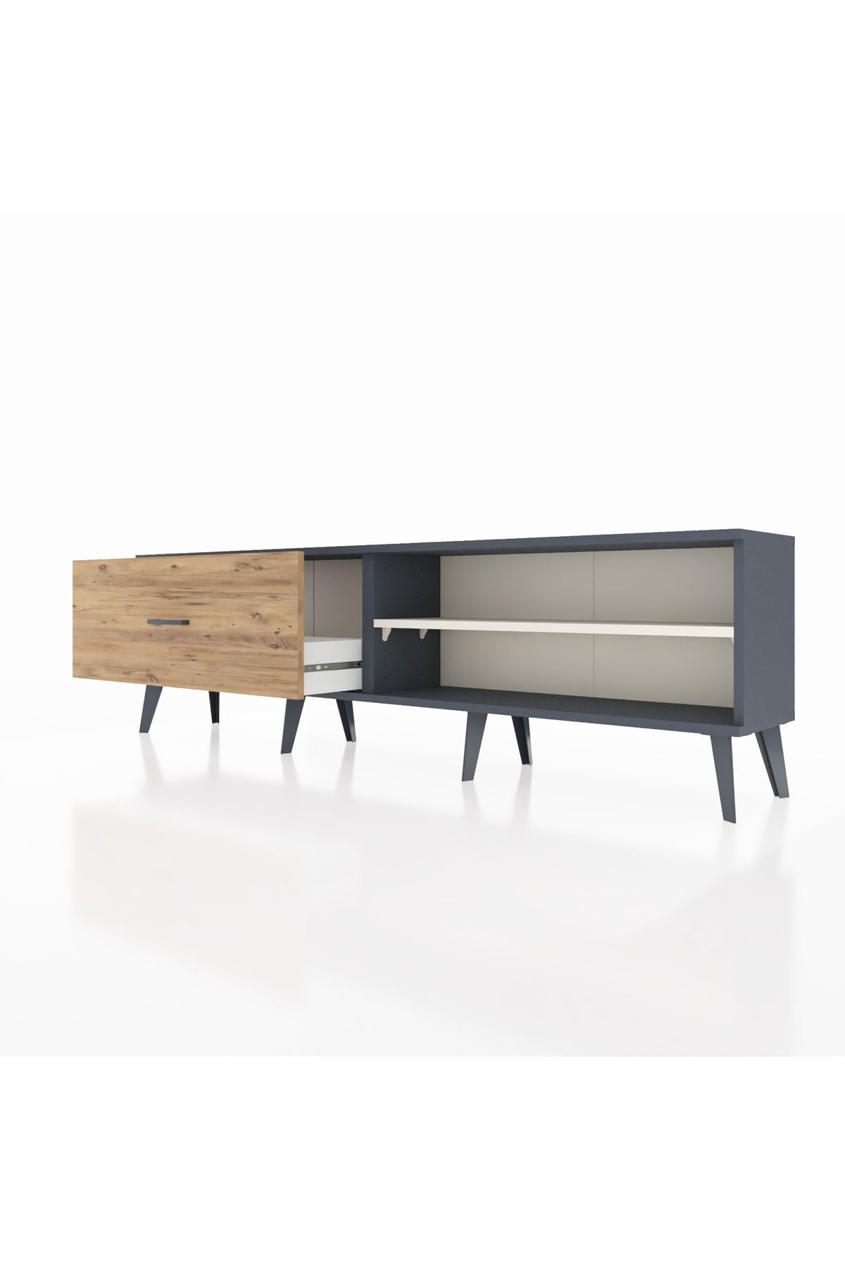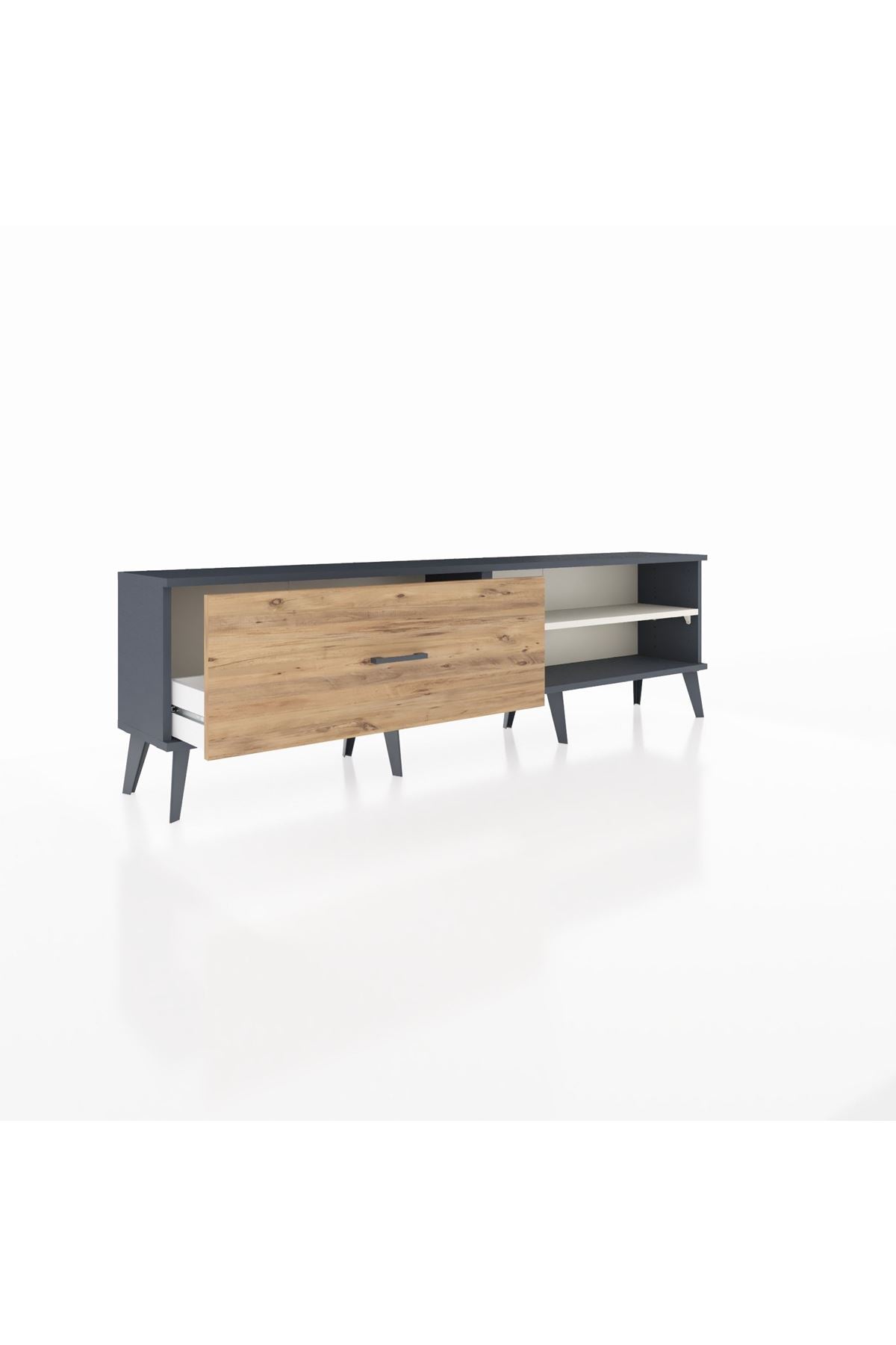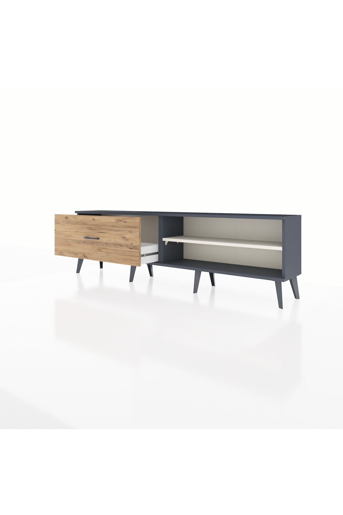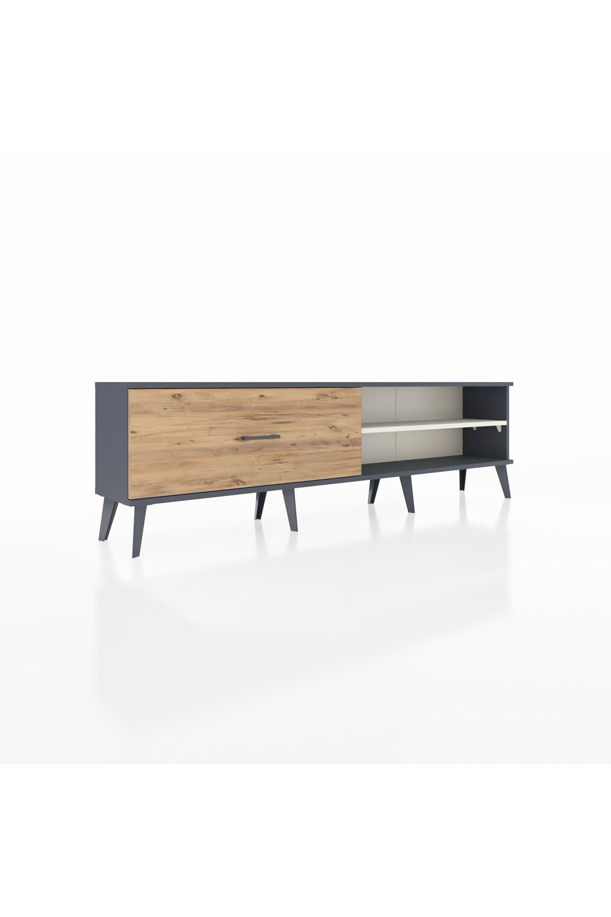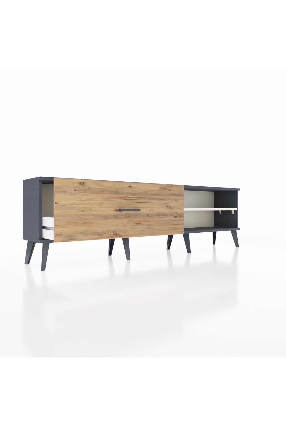 Arges TV Ünitesi Tek Raflı Tek Çekmeceli 176x30x51 Antrasit-Aytaşı/Çam