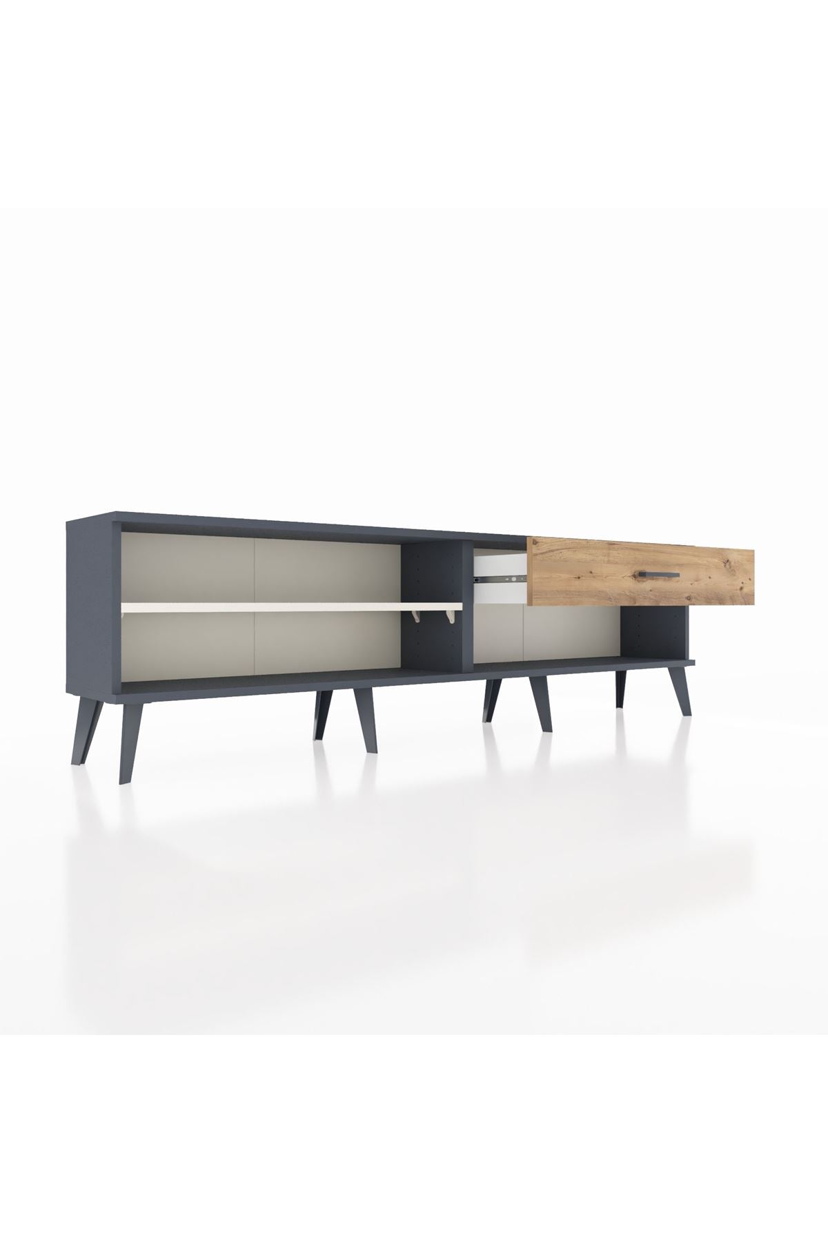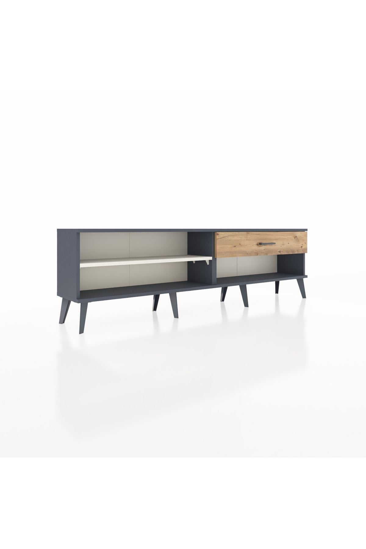 Arges TV Ünitesi Tek Raflı Tek Çekmeceli 176x30x51 Antrasit-Aytaşı/Çam