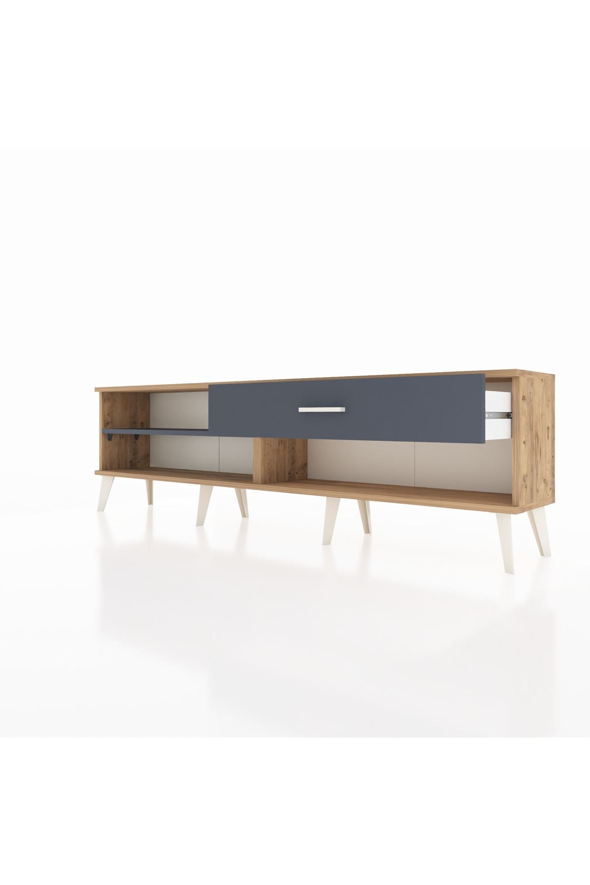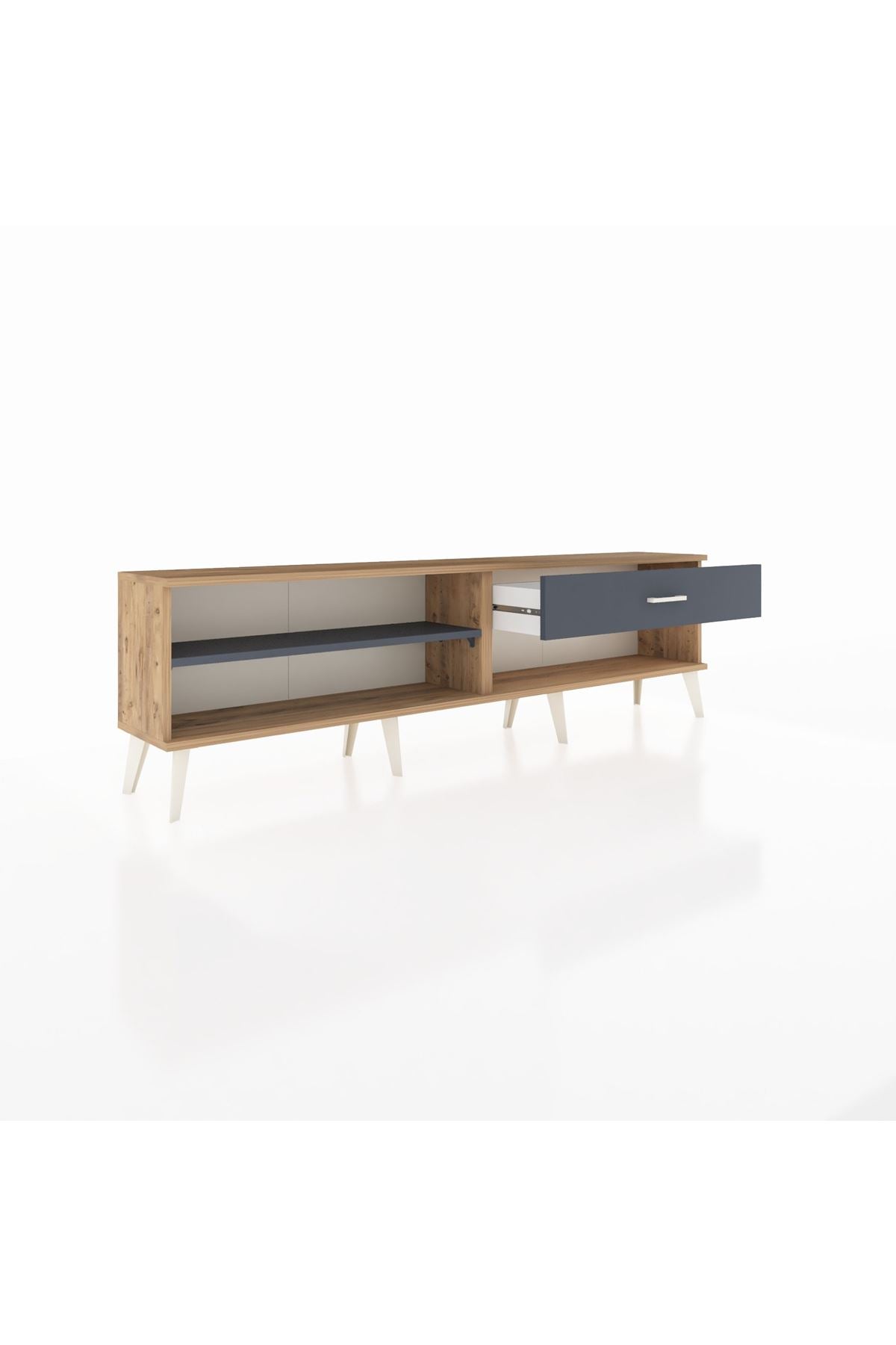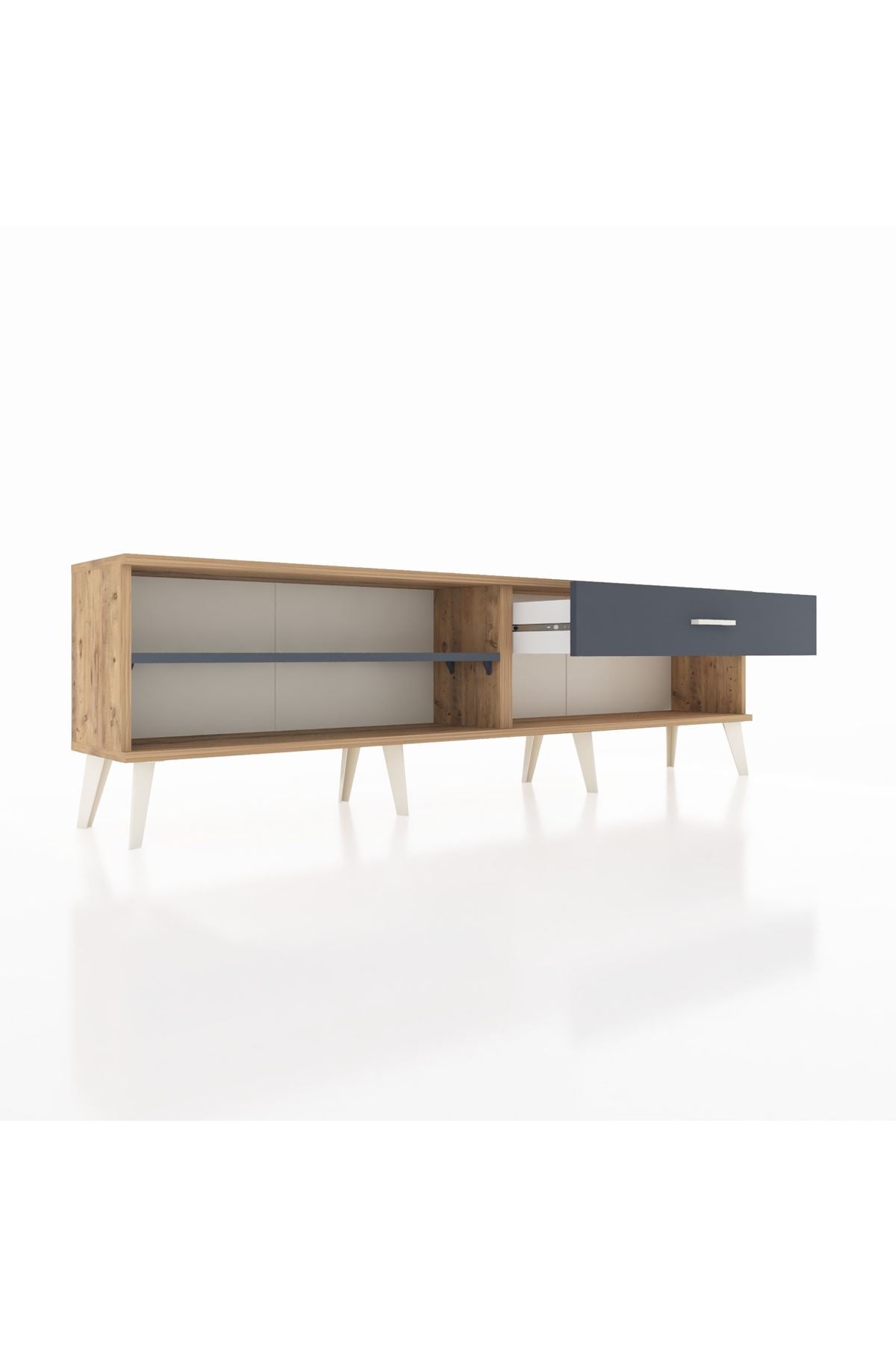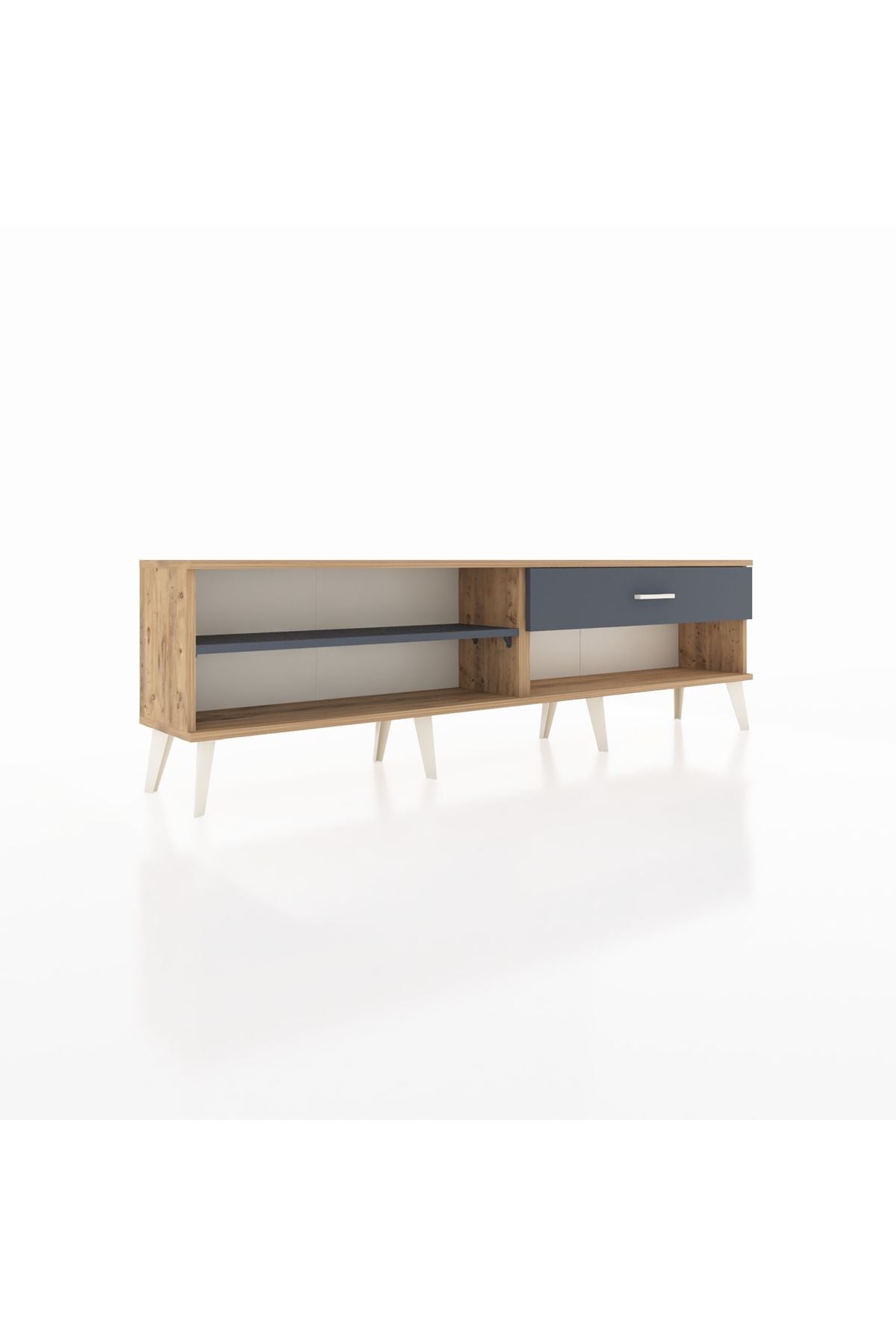Arges TV Ünitesi Tek Raflı Tek Çekmeceli 176x30x51 Çam-Antrasit/Antrasit
