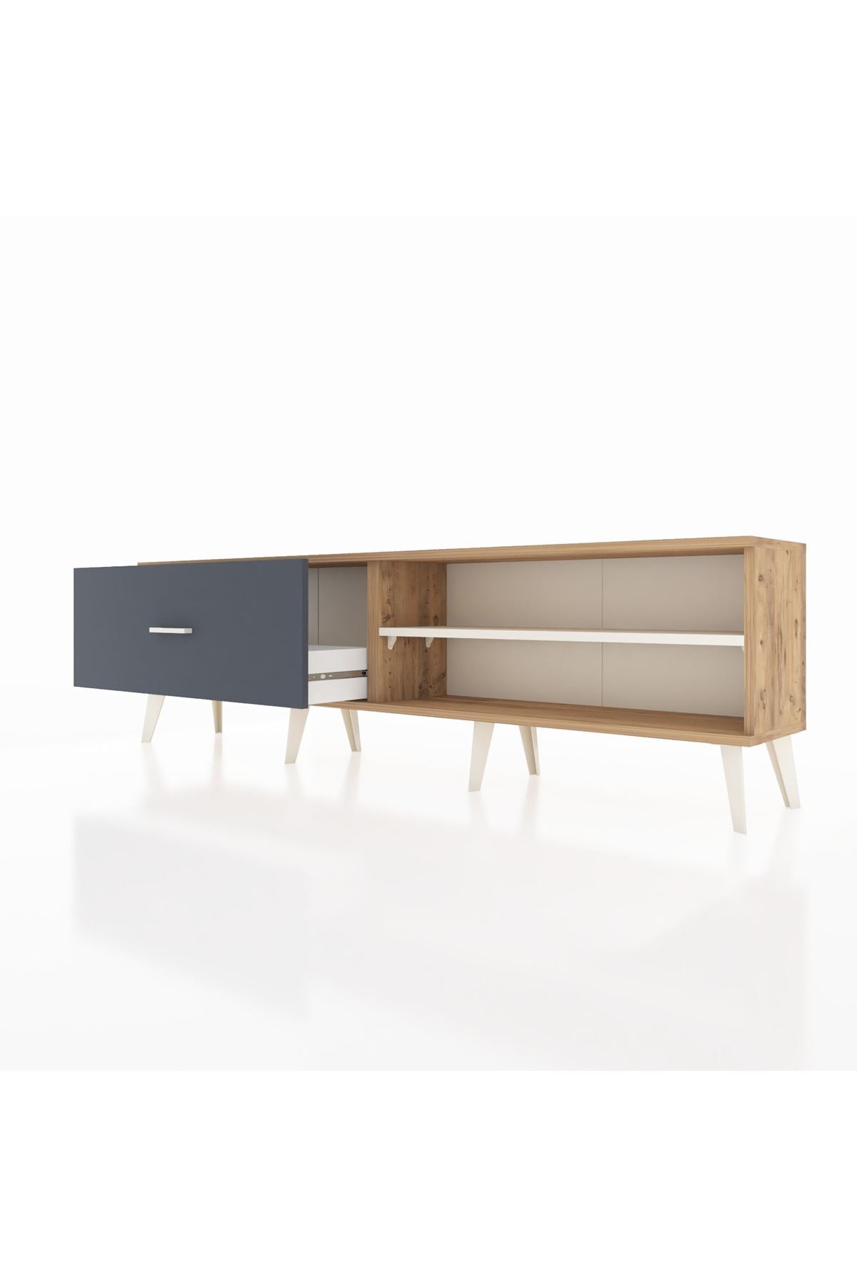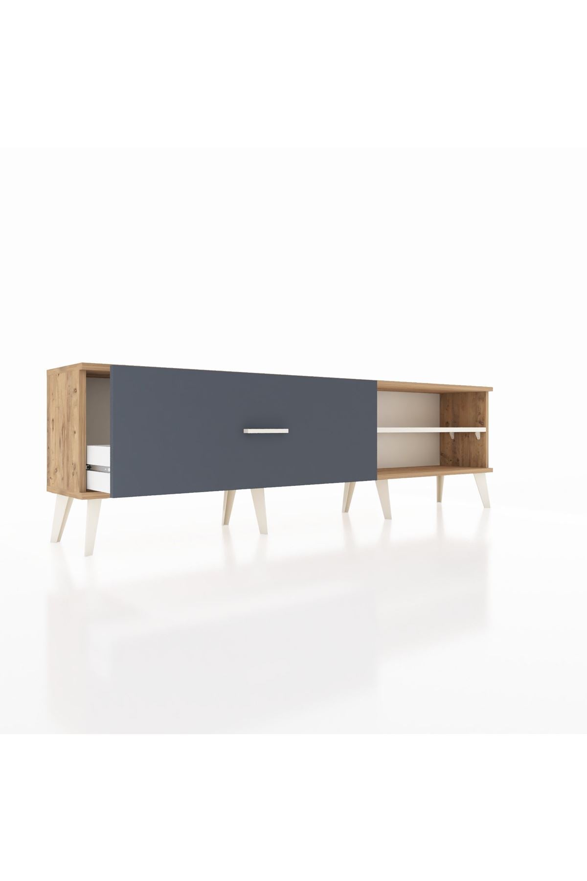 Arges TV Ünitesi Tek Raflı Tek Çekmeceli 176x30x51 Çam-Aytaşı/Antrasit
