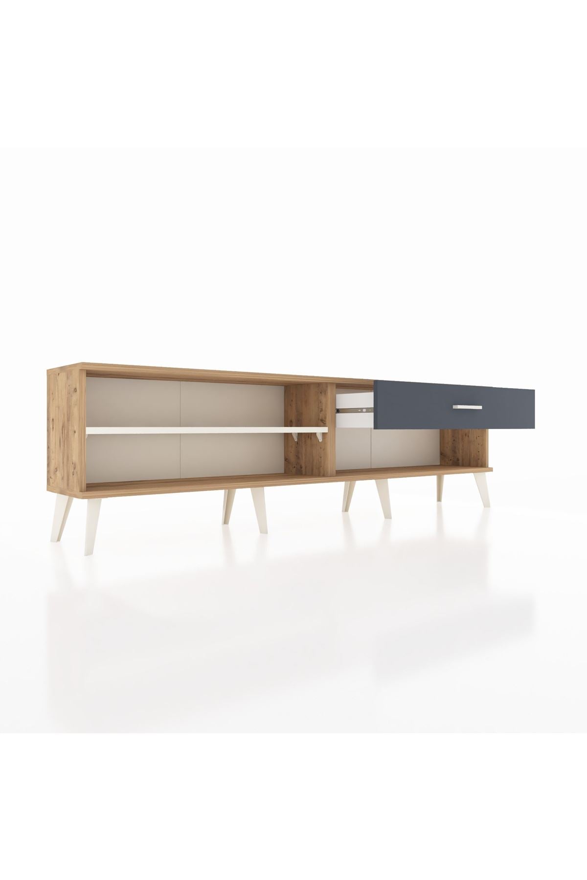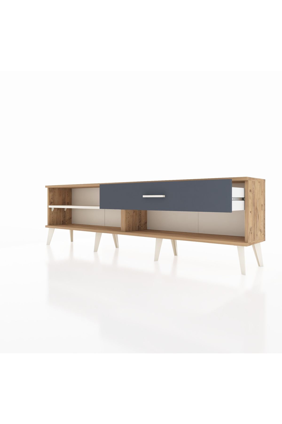 Arges TV Ünitesi Tek Raflı Tek Çekmeceli 176x30x51 Çam-Aytaşı/Antrasit