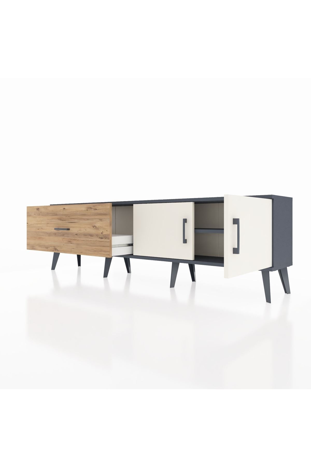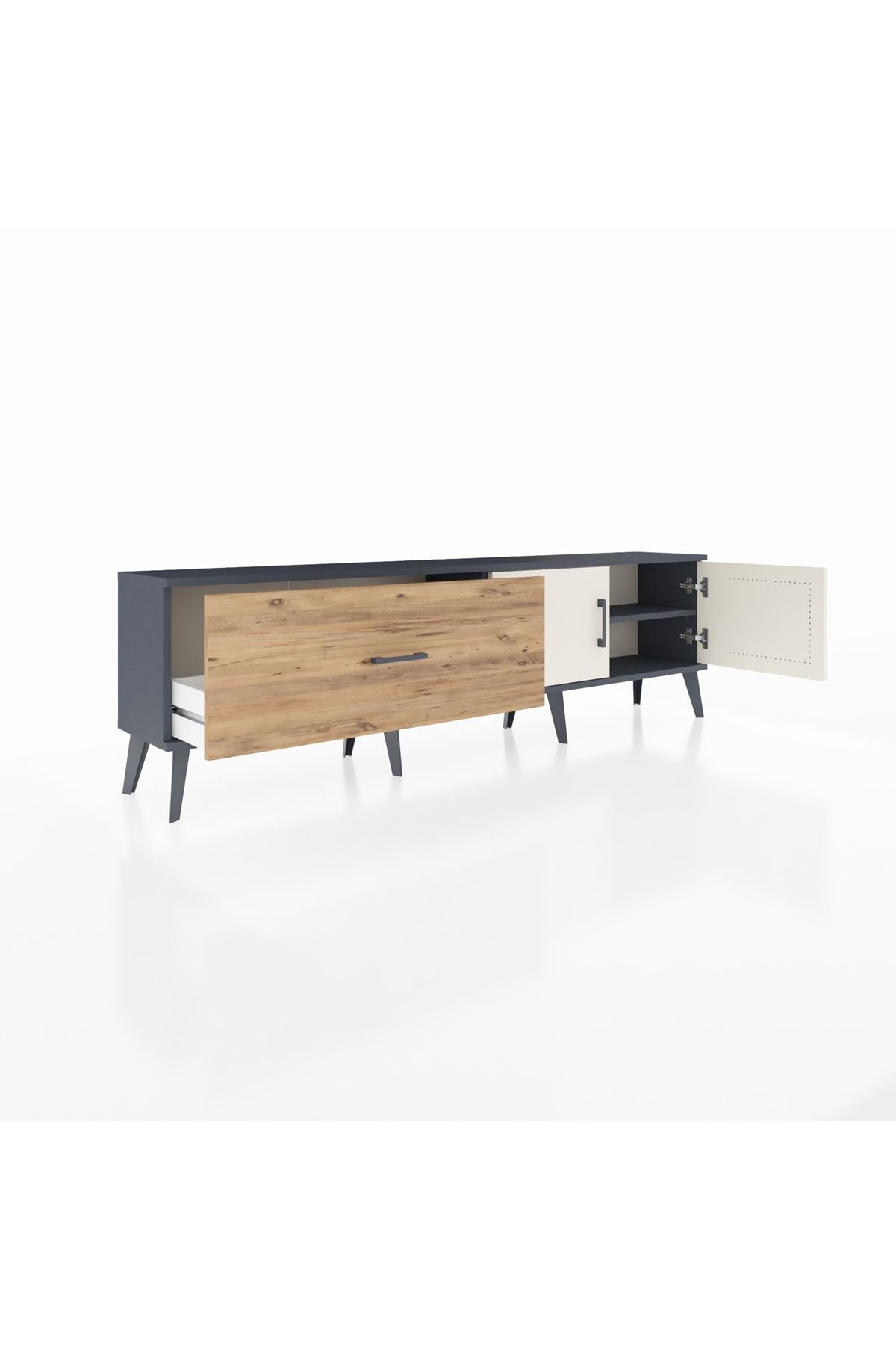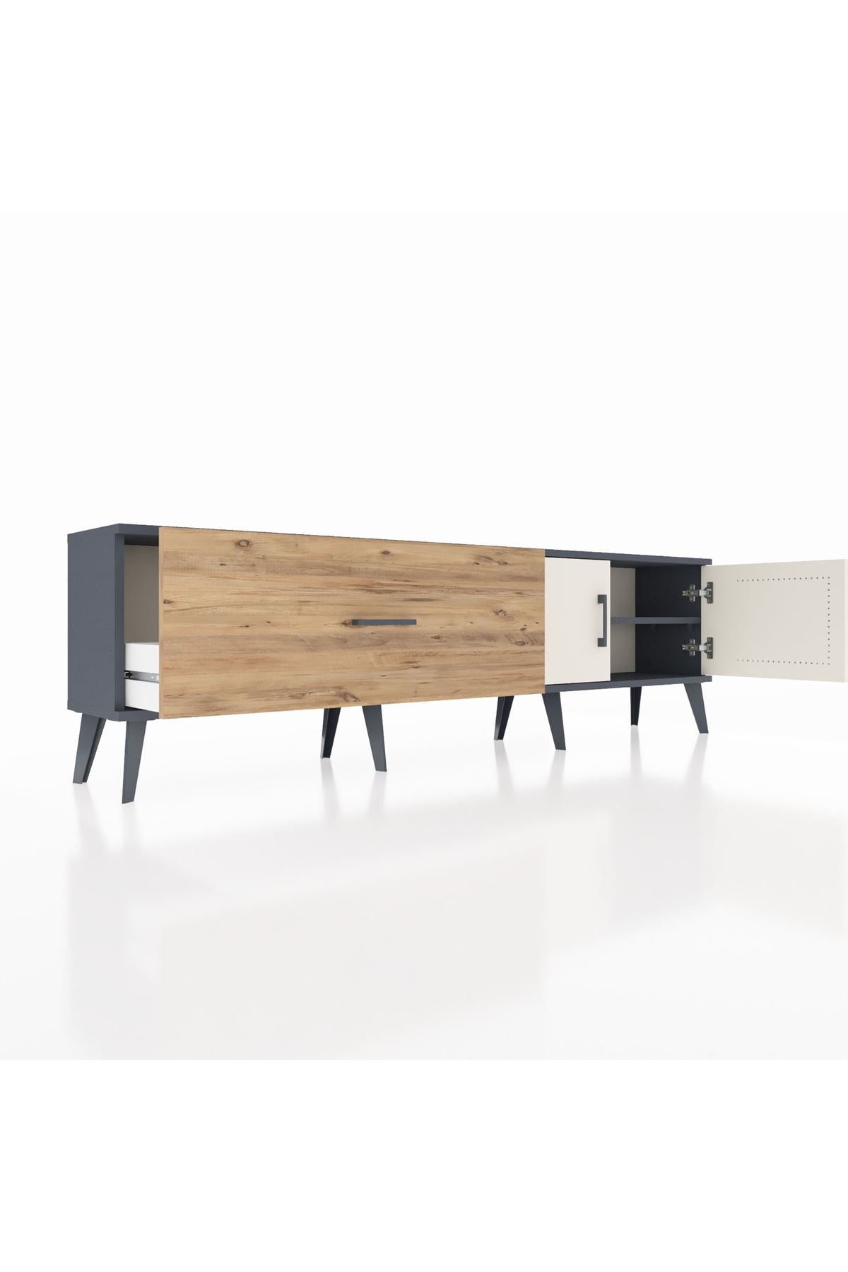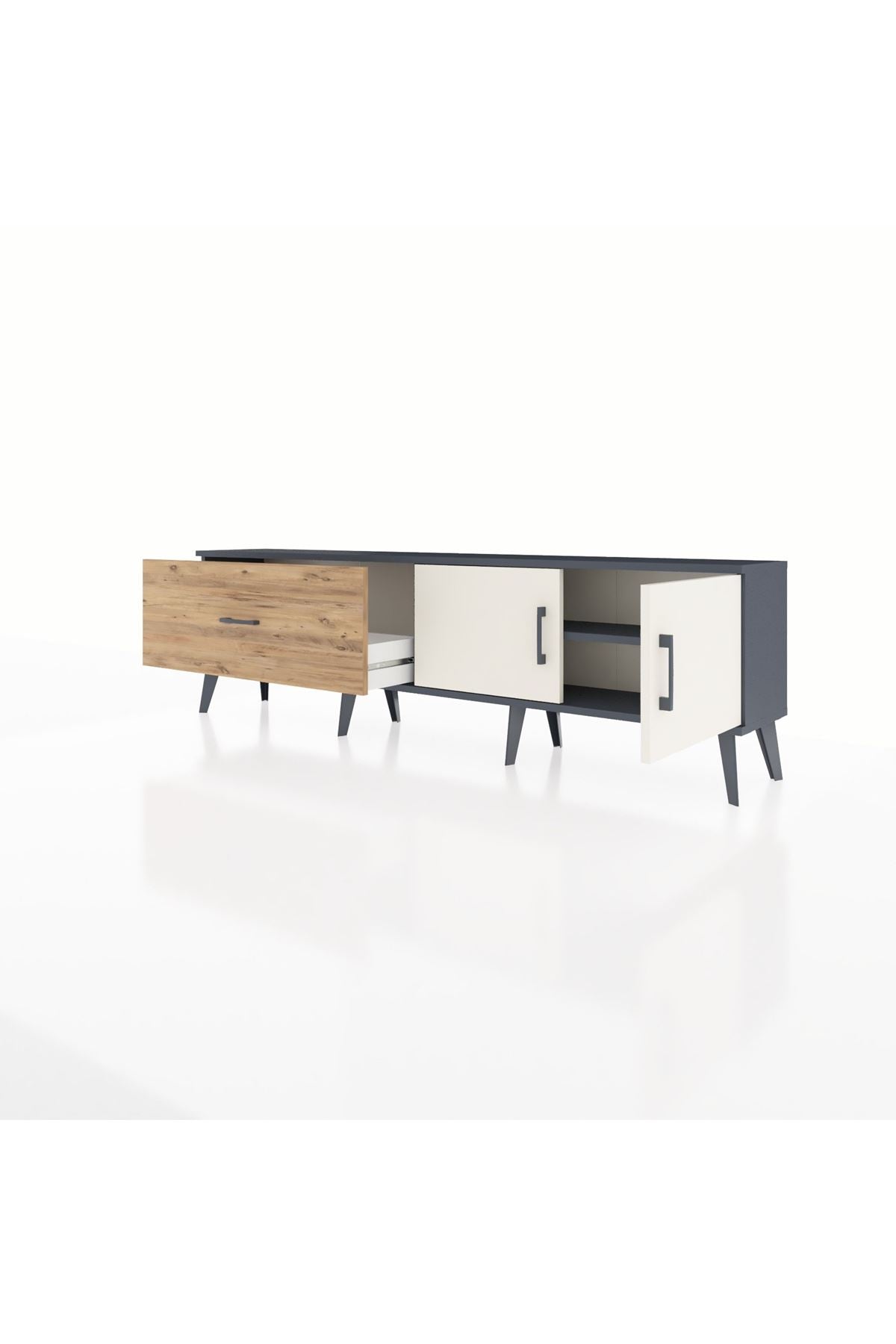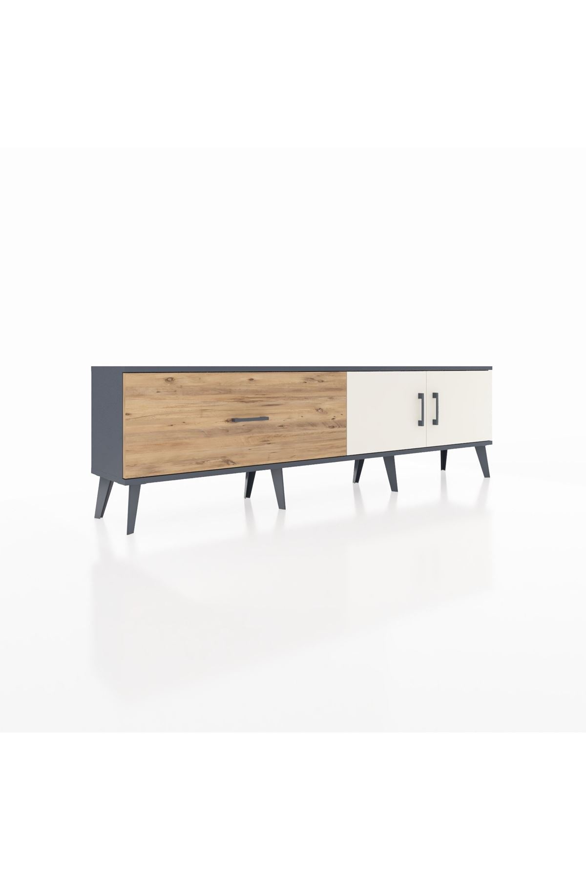 Arges TV Ünitesi Tek Raflı Tek Çekmeceli 2 Kapaklı 176x30x51 Antrasit-Aytaşı/Çam