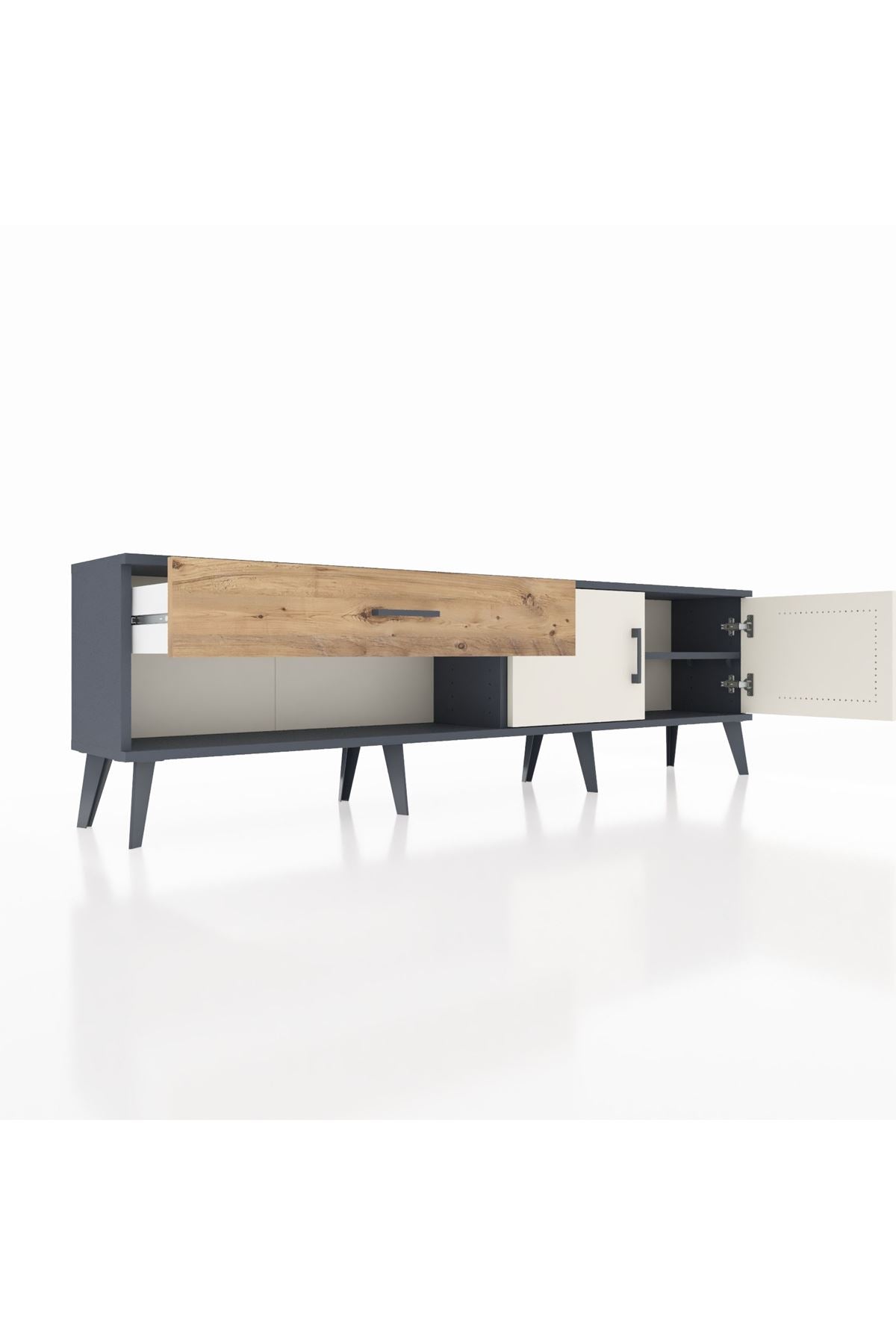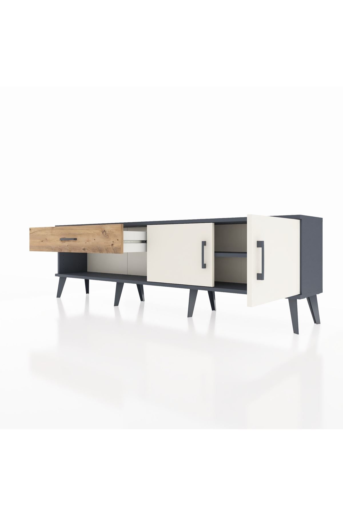 Arges TV Ünitesi Tek Raflı Tek Çekmeceli 2 Kapaklı 176x30x51 Antrasit-Aytaşı/Çam