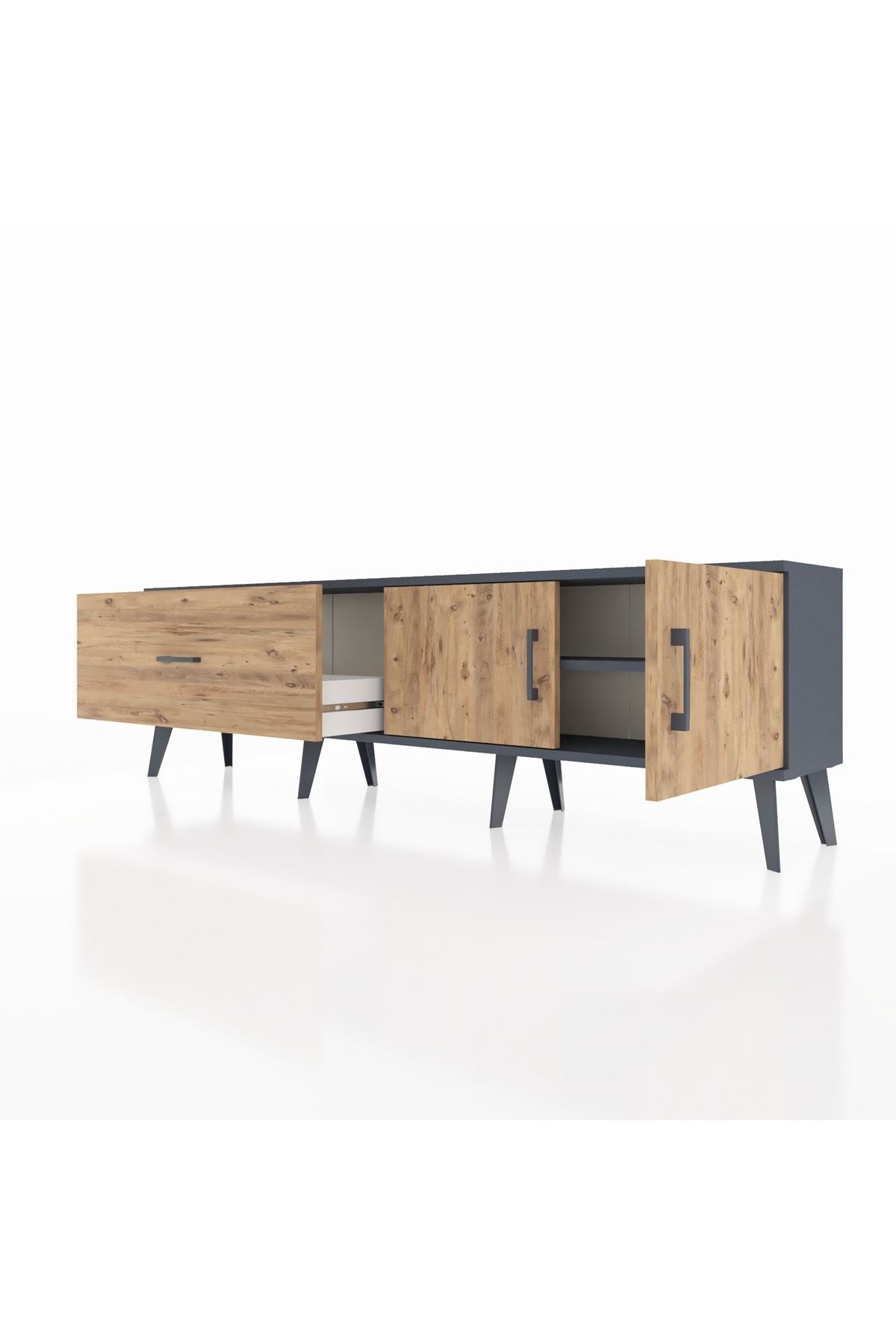 Arges TV Ünitesi Tek Raflı Tek Çekmeceli 2 Kapaklı 176x30x51 Antrasit-Çam/Çam