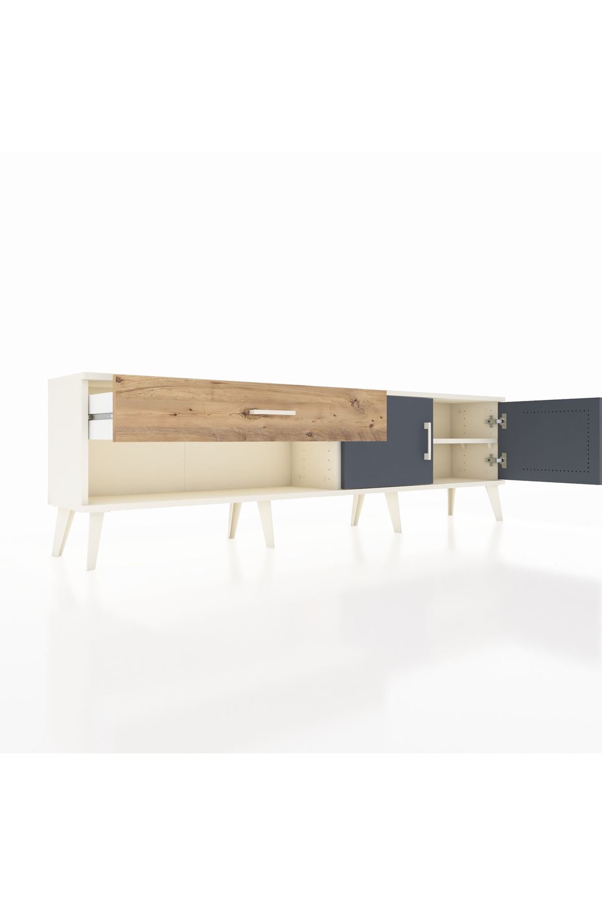 Arges TV Ünitesi Tek Raflı Tek Çekmeceli 2 Kapaklı 176x30x51 Aytaşı-Antrasit/Çam
