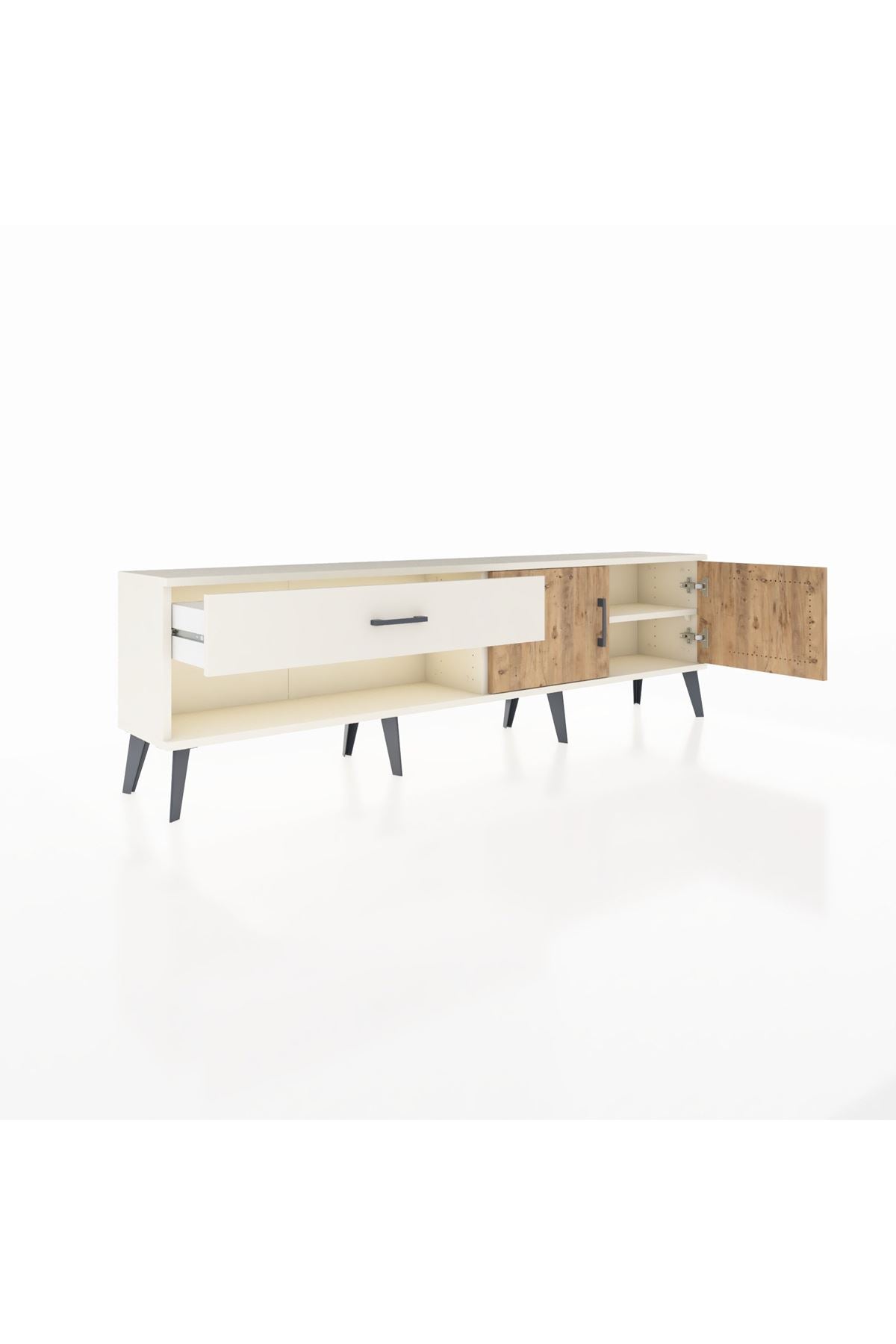 Arges TV Ünitesi Tek Raflı Tek Çekmeceli 2 Kapaklı 176x30x51 Aytaşı-Çam/Aytaşı