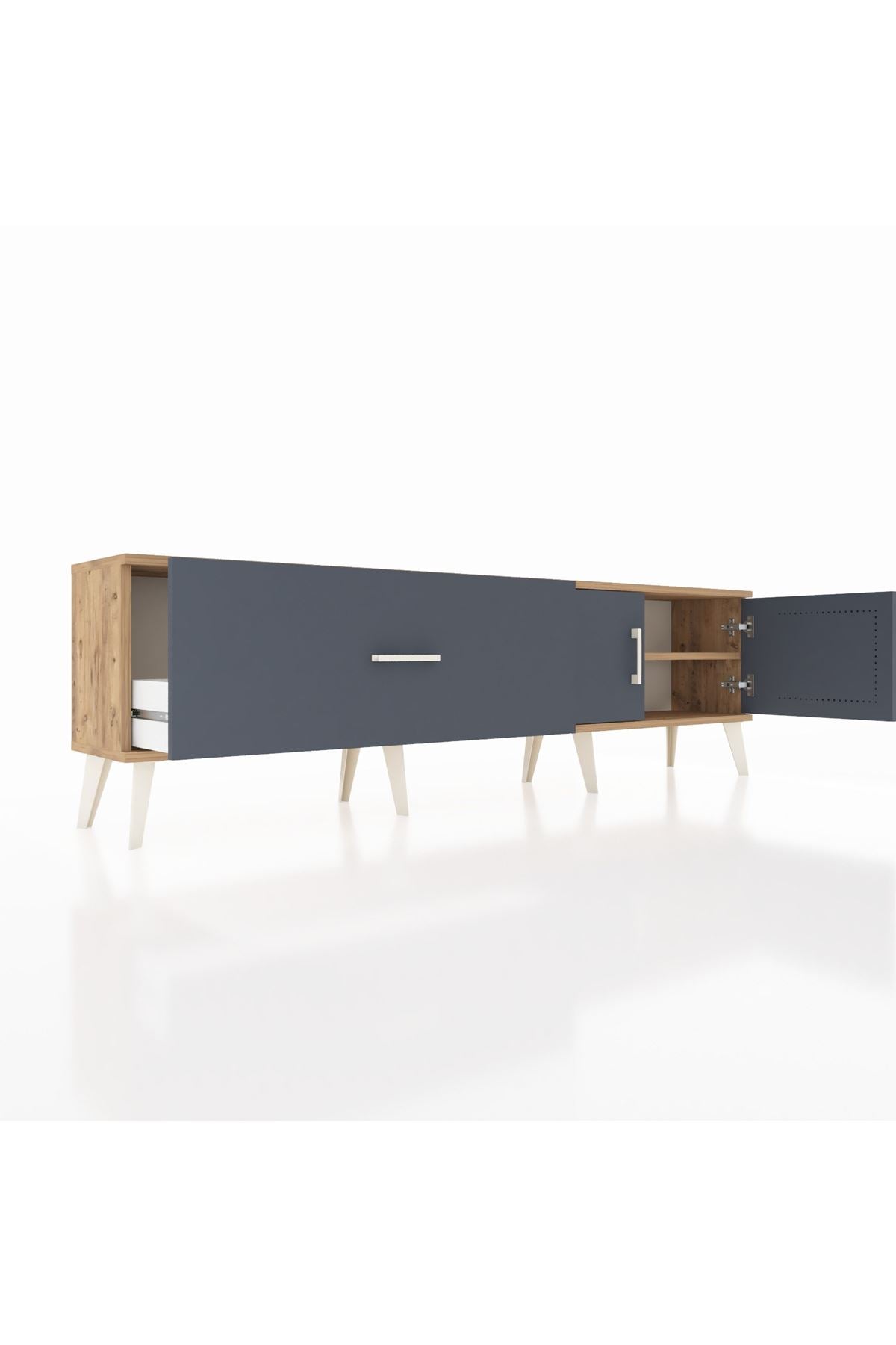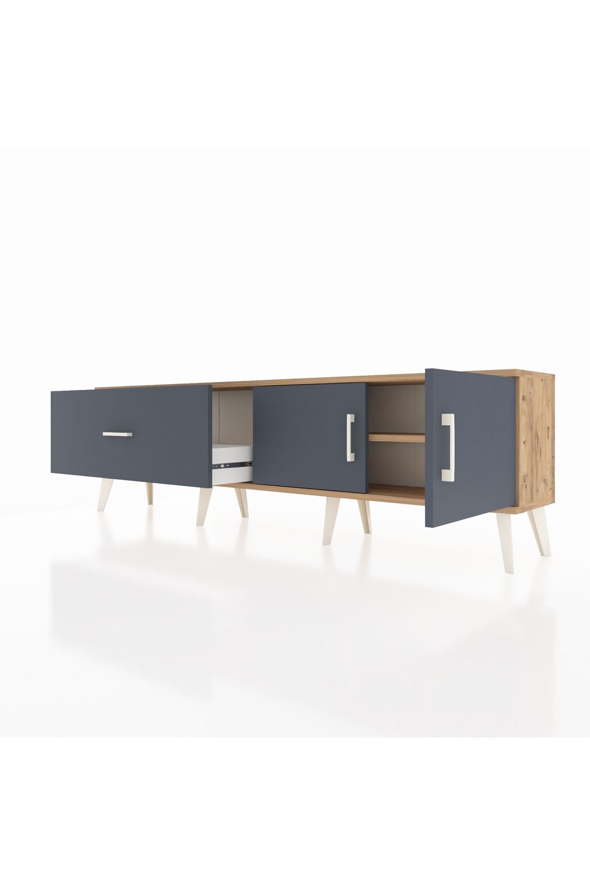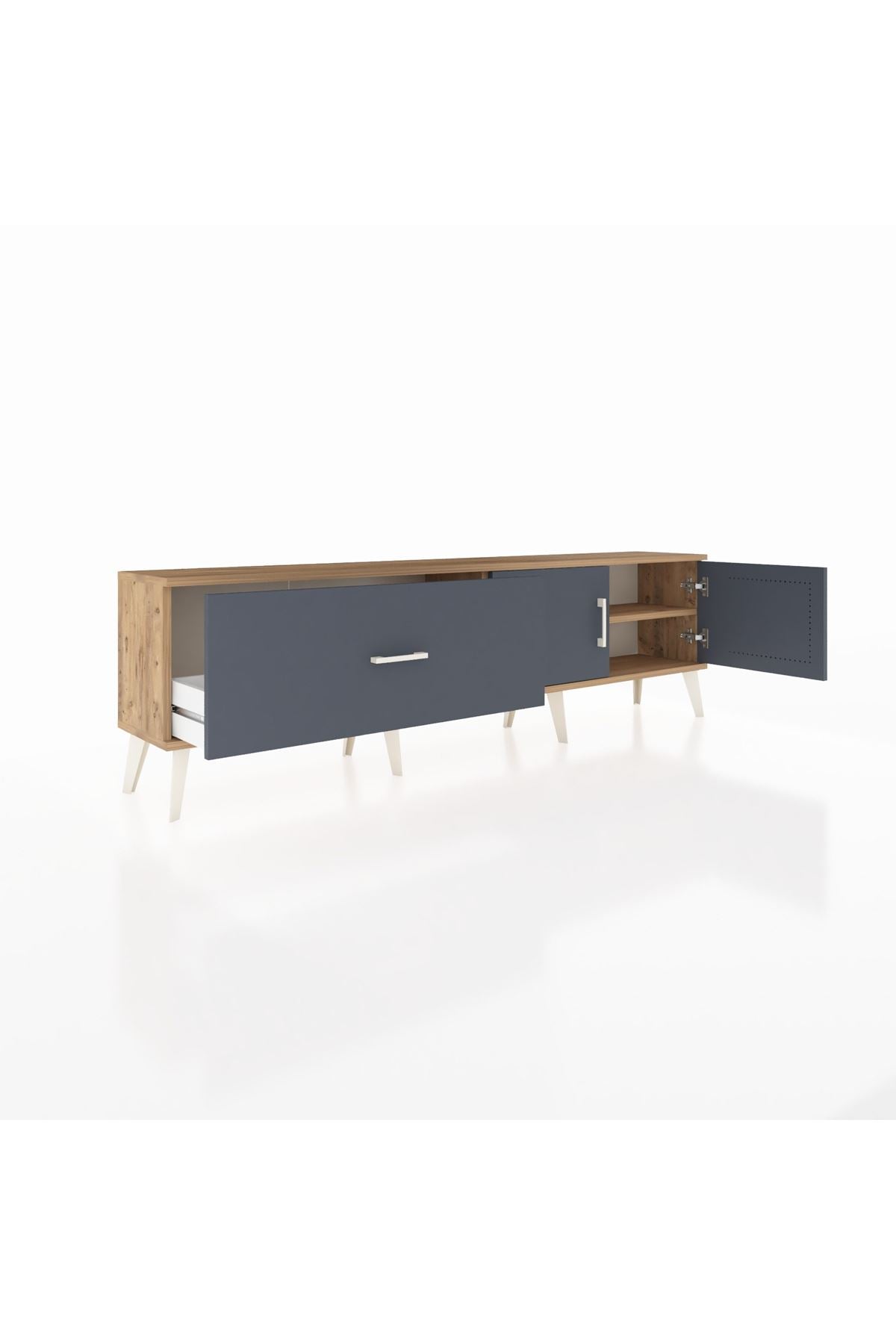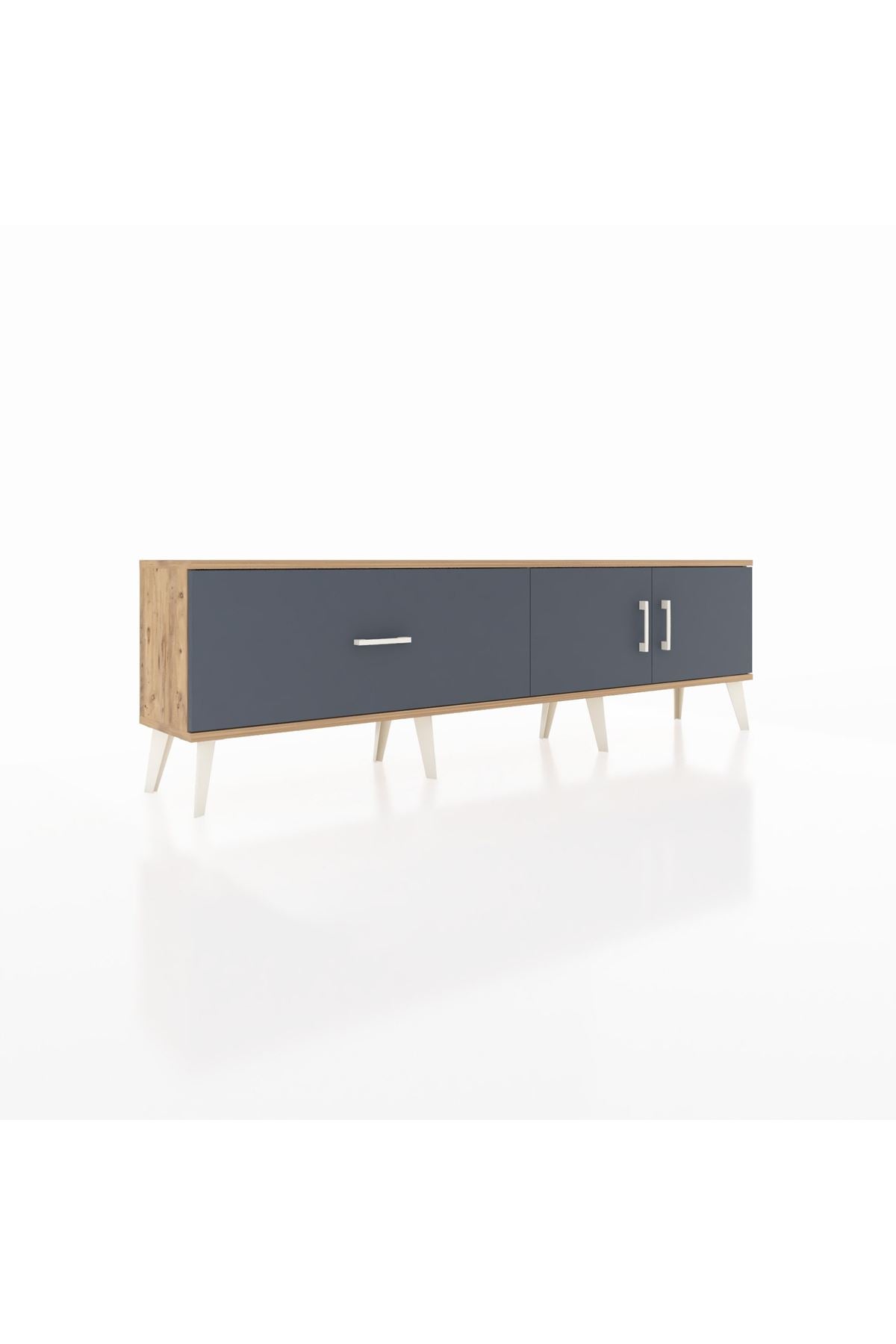 Arges TV Ünitesi Tek Raflı Tek Çekmeceli 2 Kapaklı 176x30x51 Çam-Antrasit/Antrasit