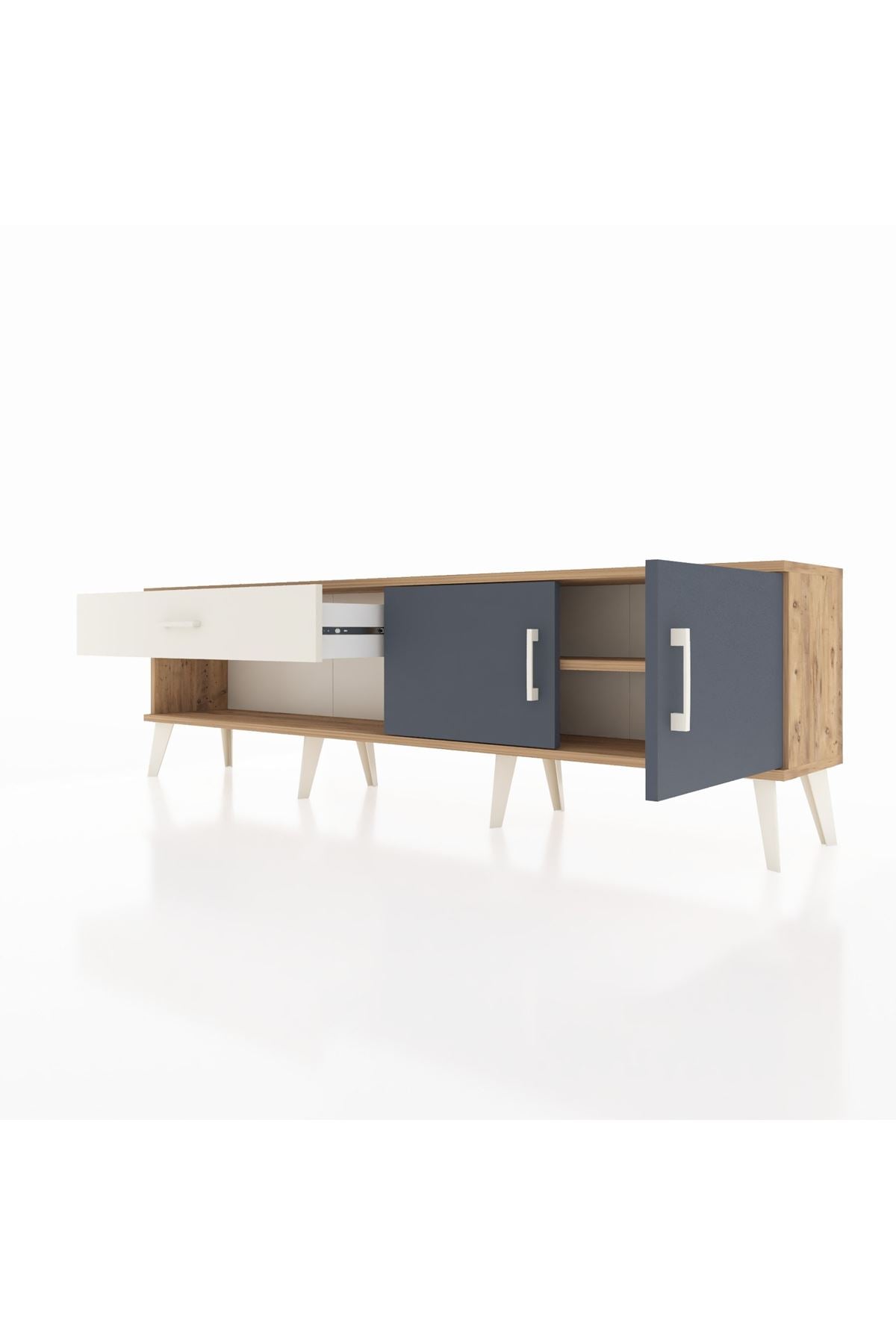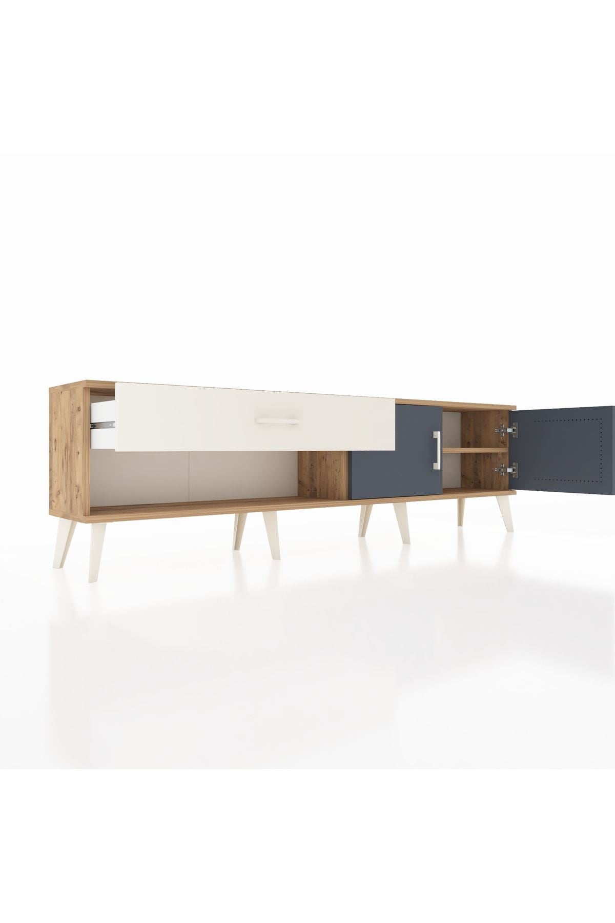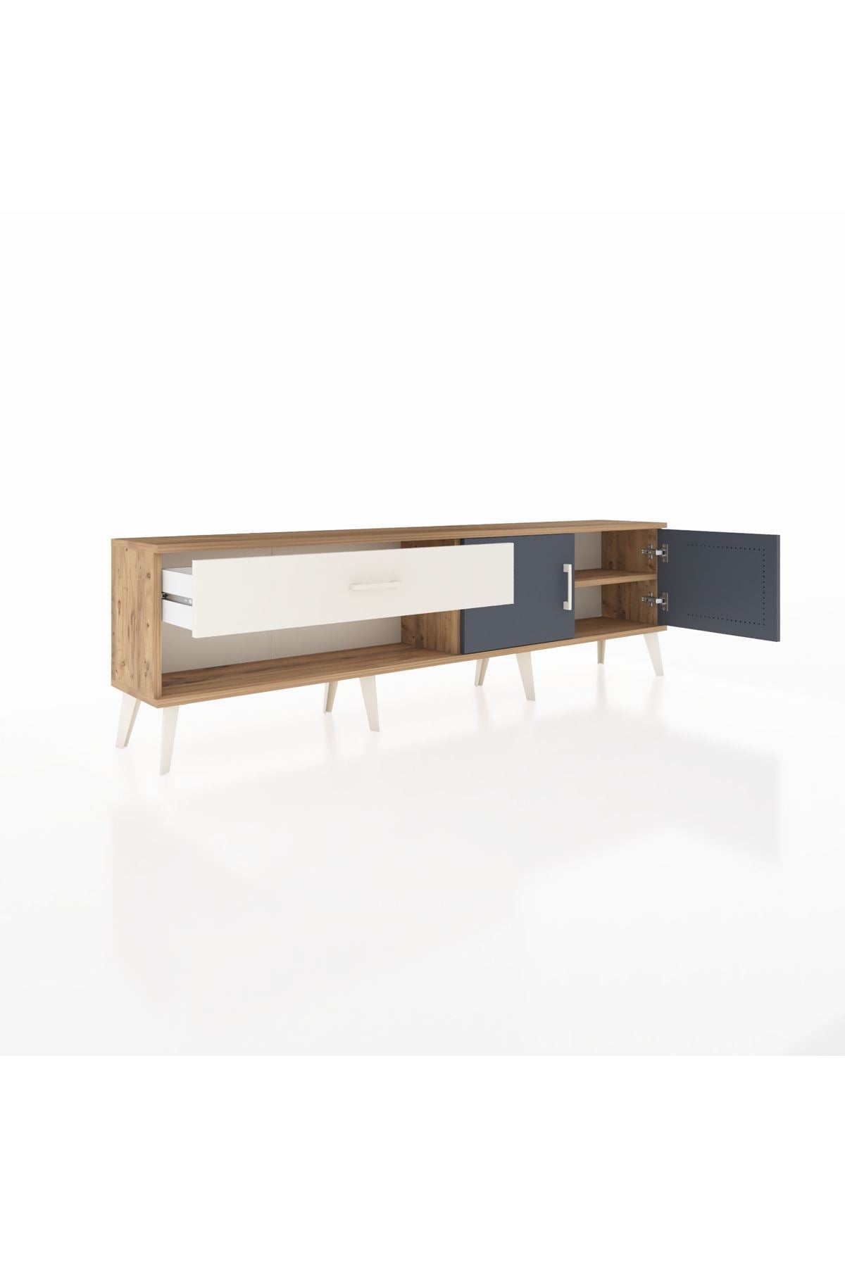 Arges TV Ünitesi Tek Raflı Tek Çekmeceli 2 Kapaklı 176x30x51 Çam-Antrasit/Aytaşı