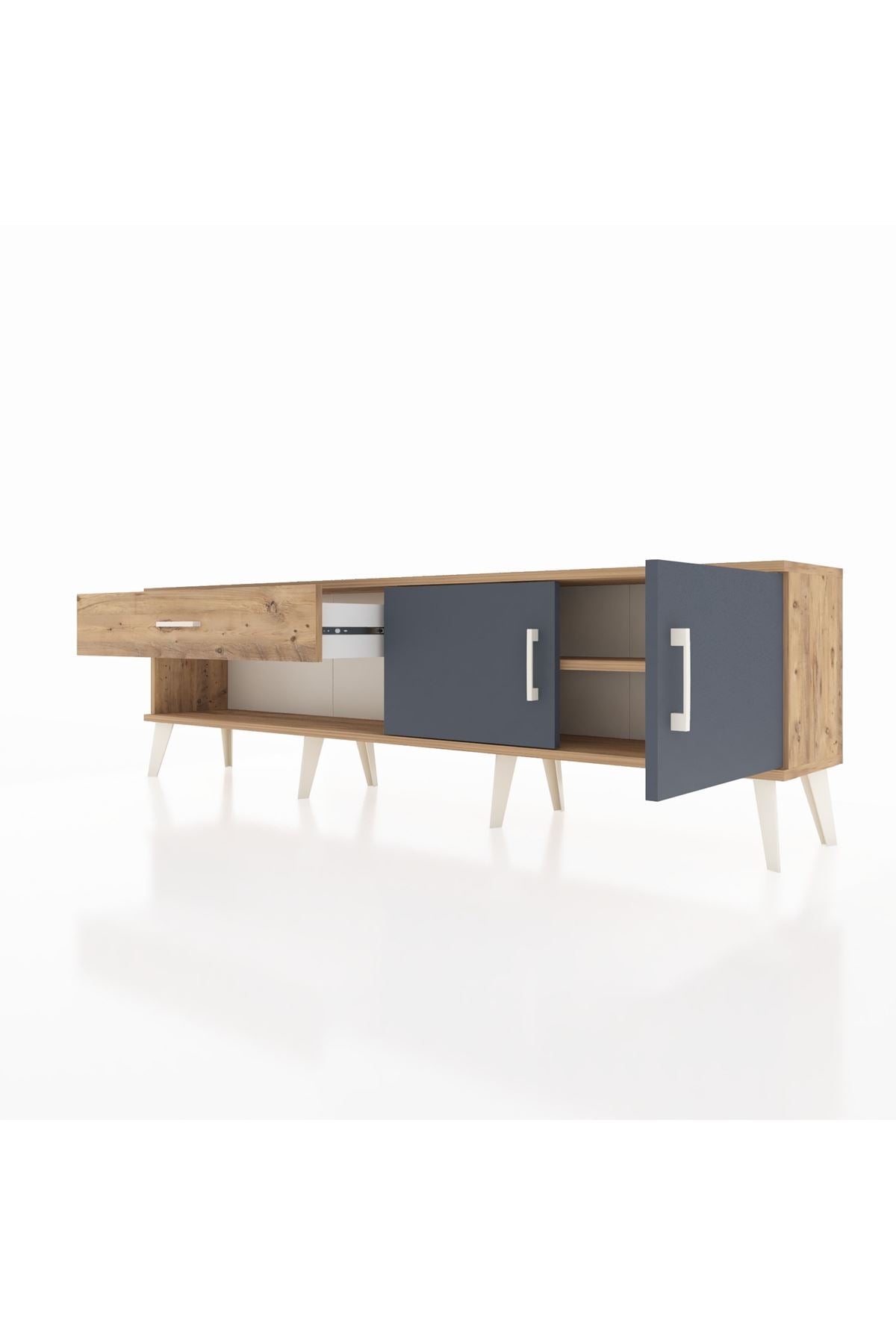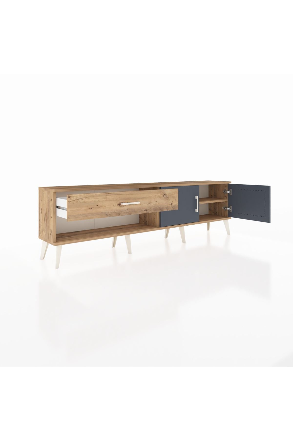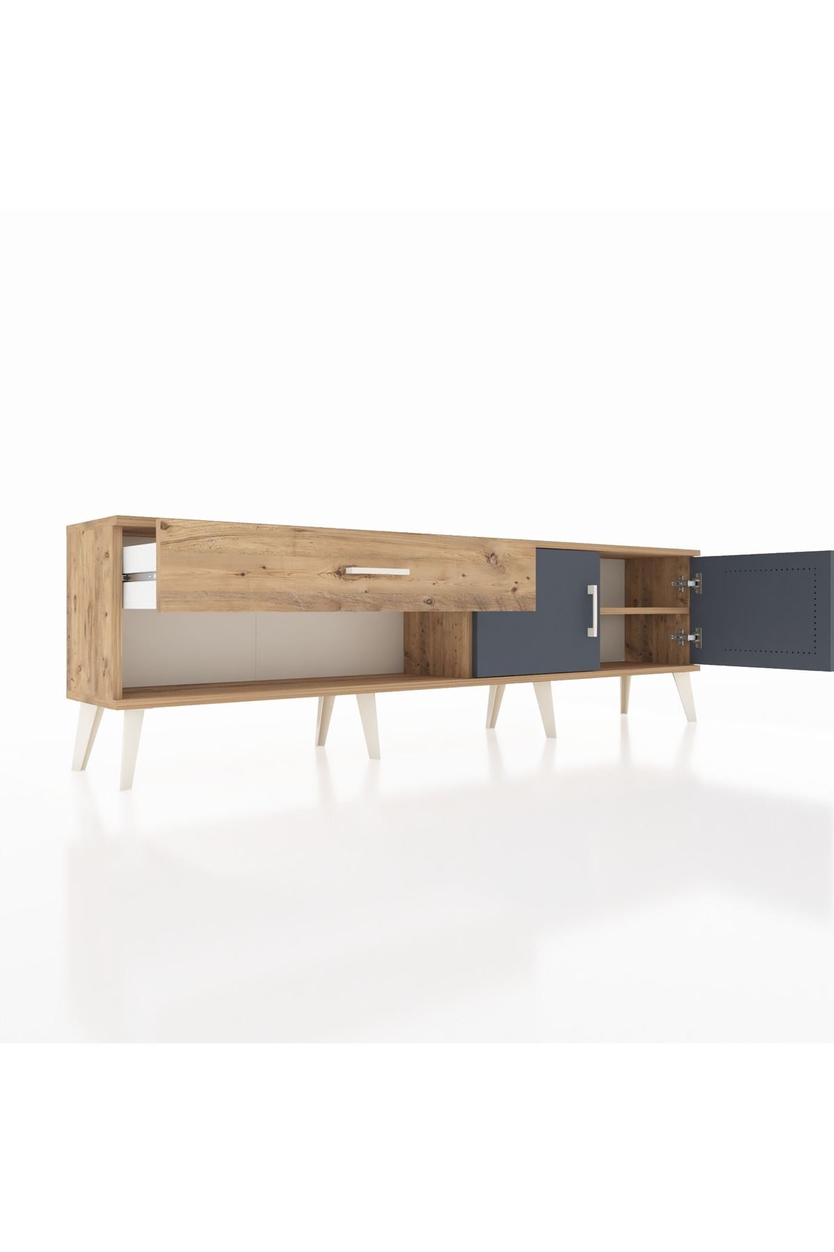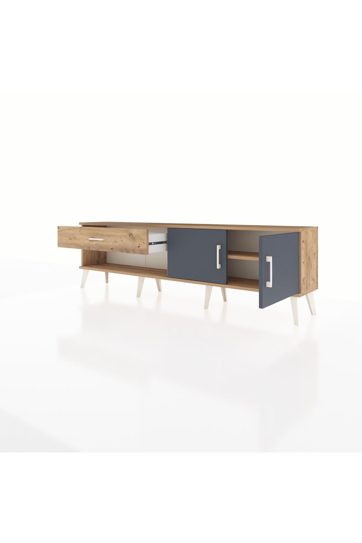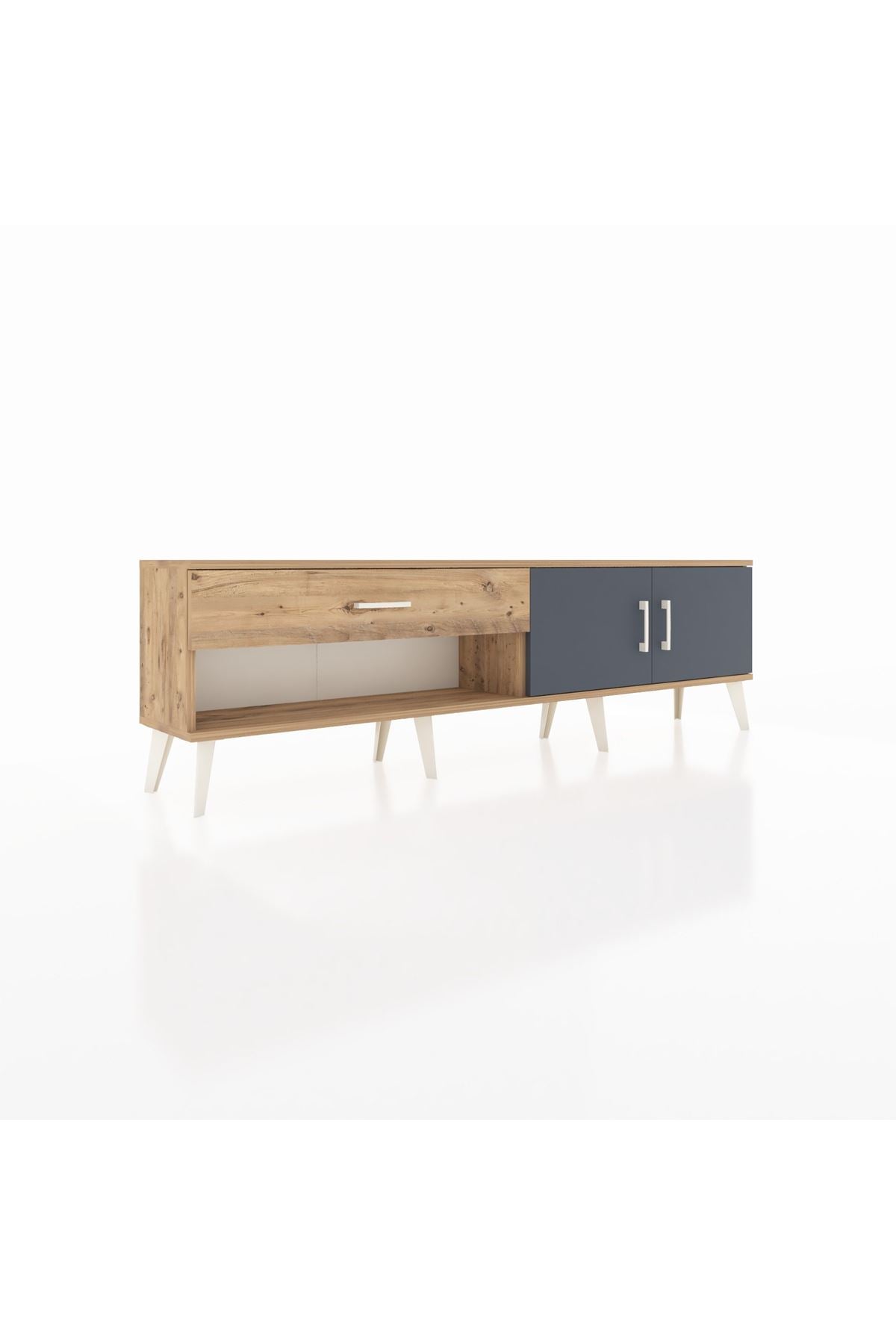 Arges TV Ünitesi Tek Raflı Tek Çekmeceli 2 Kapaklı 176x30x51 Çam-Antrasit/Çam