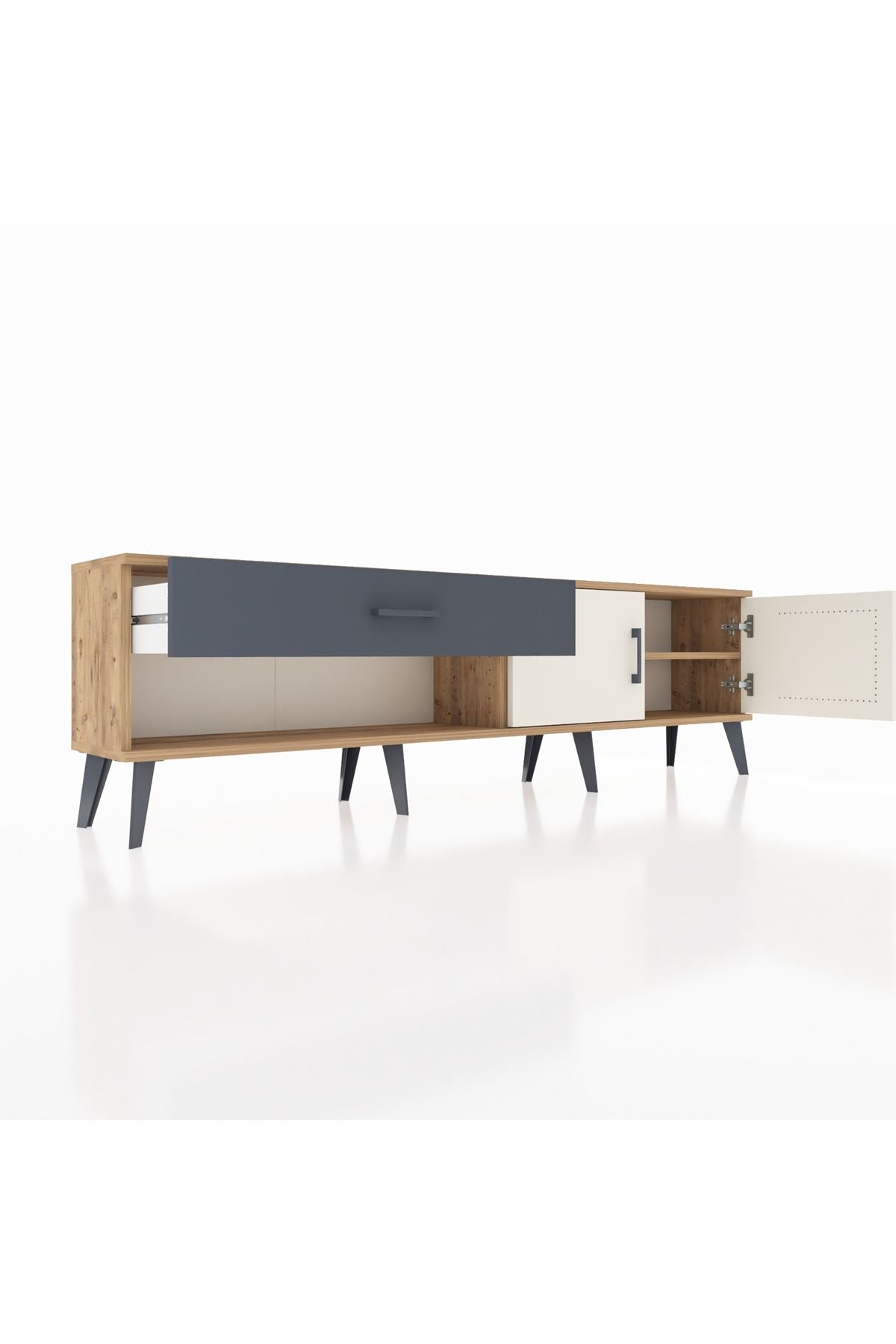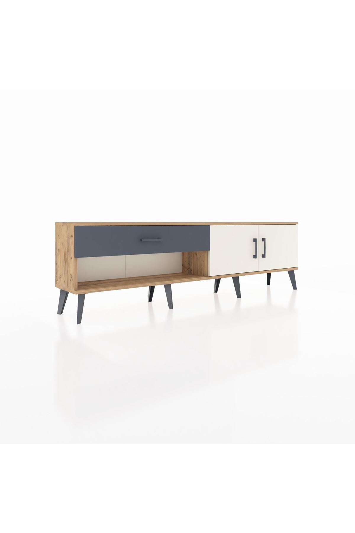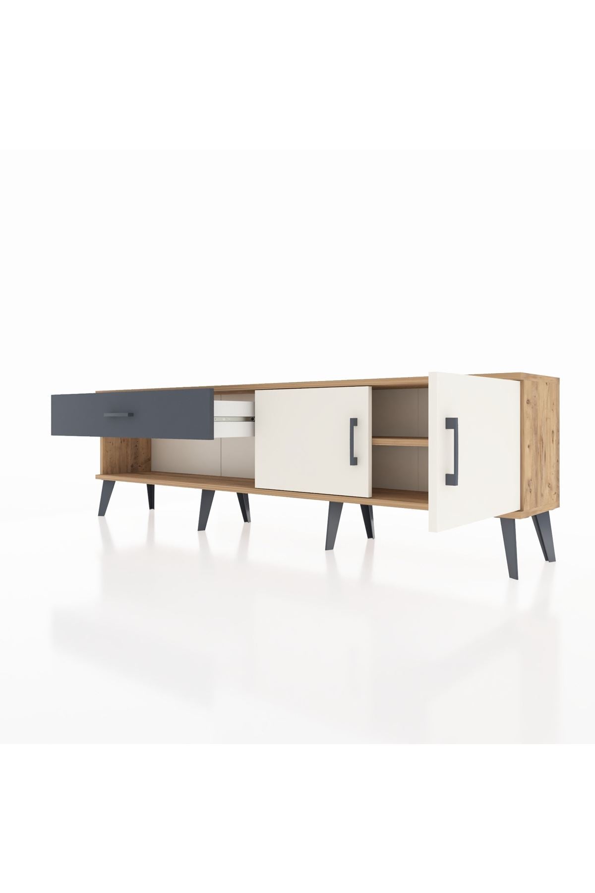Arges TV Ünitesi Tek Raflı Tek Çekmeceli 2 Kapaklı 176x30x51 Çam-Aytaşı/Antrasit