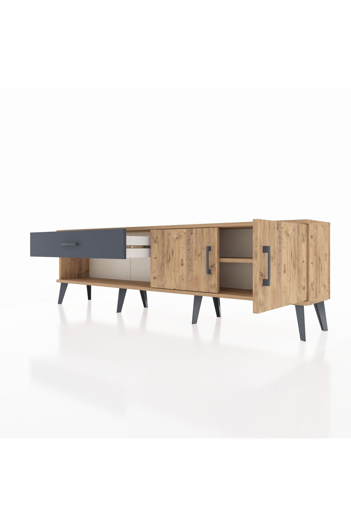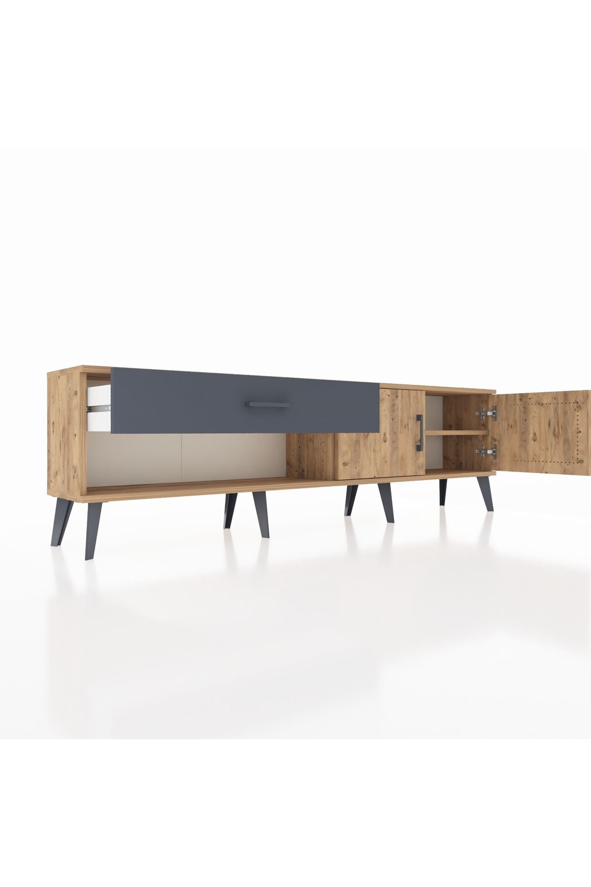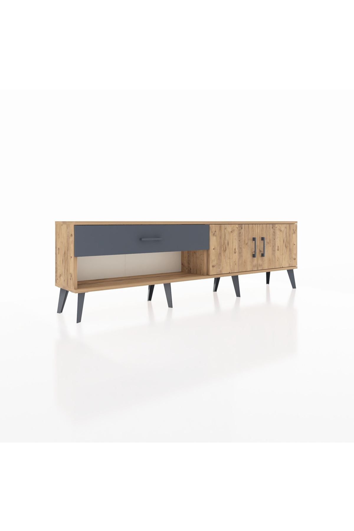 Arges TV Ünitesi Tek Raflı Tek Çekmeceli 2 Kapaklı 176x30x51 Çam-Çam/Antrasit