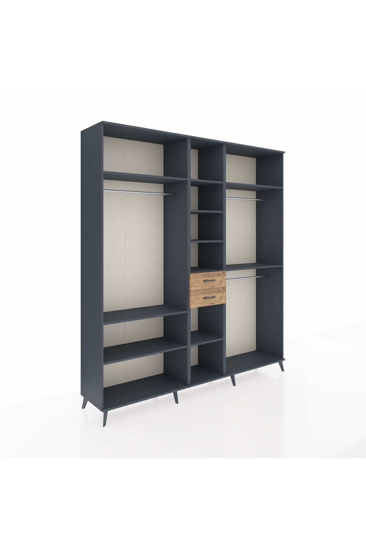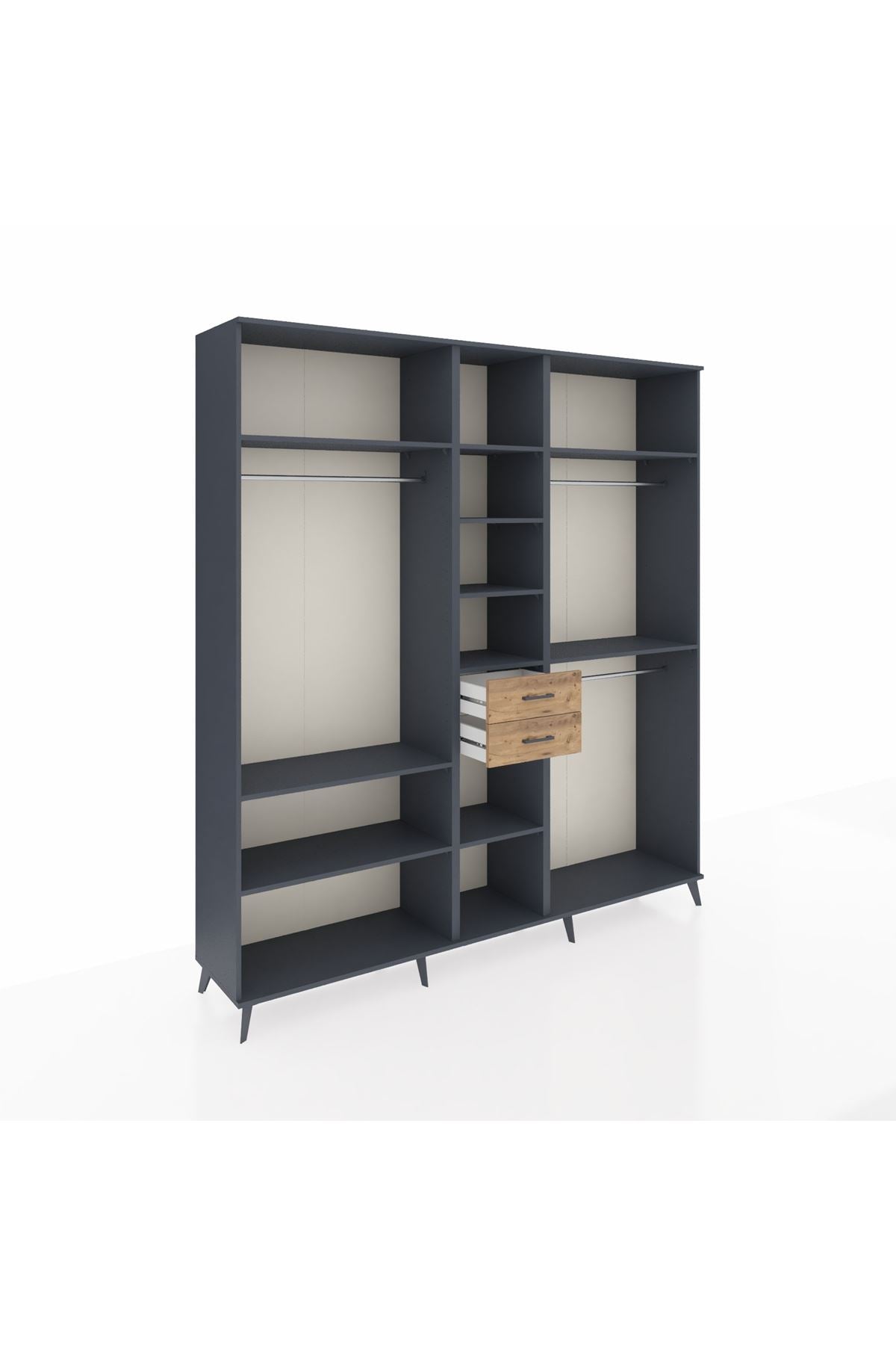 Hyperion Dolap 10 Raflı 2 Çekmeceli 3 Askılı 220x44x243 Antrasit-Antrasit/Çam