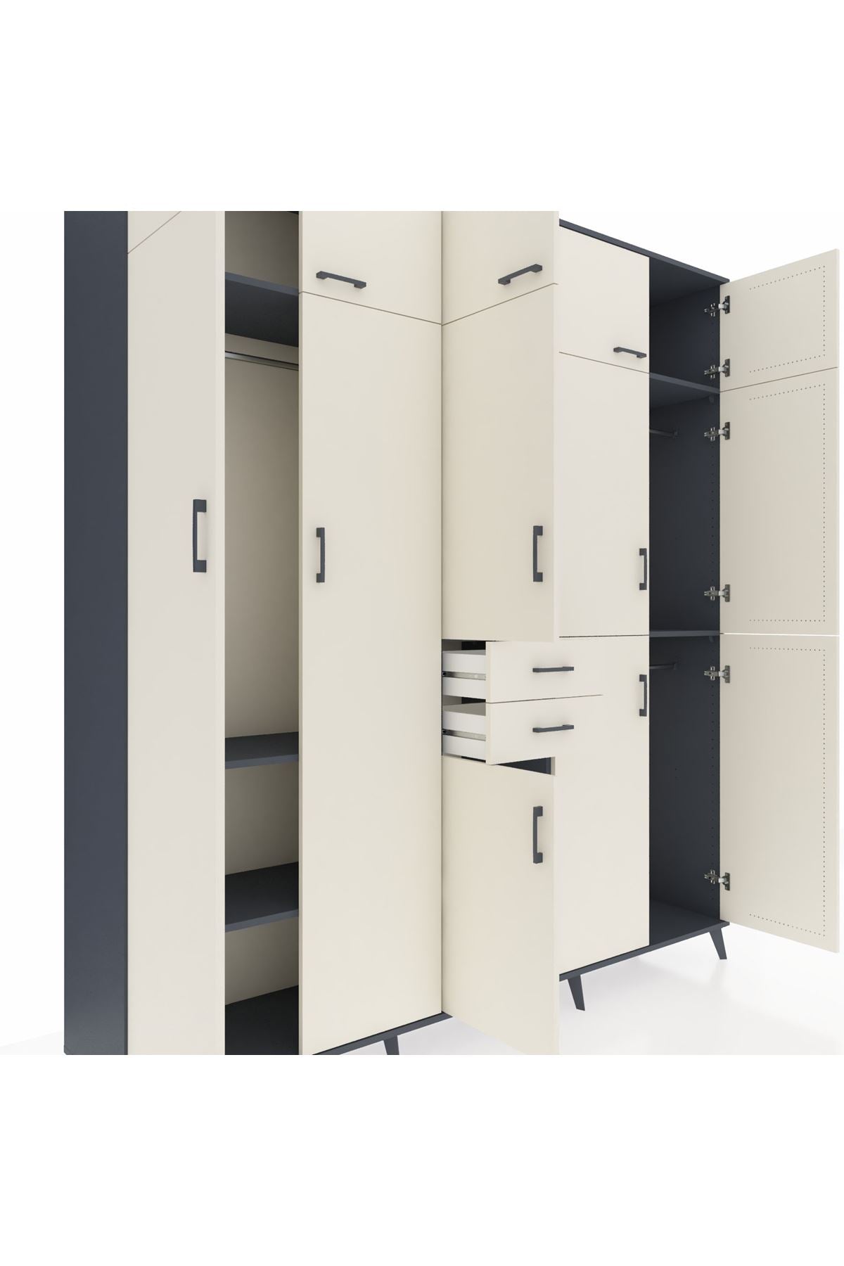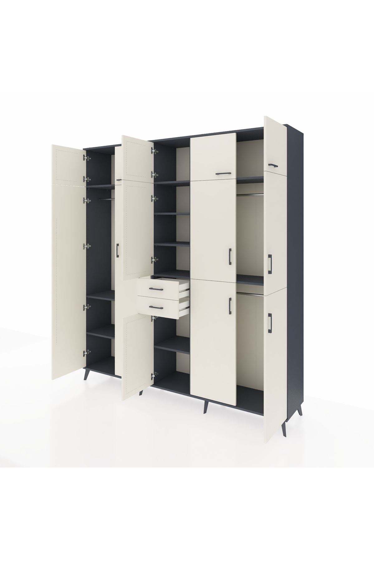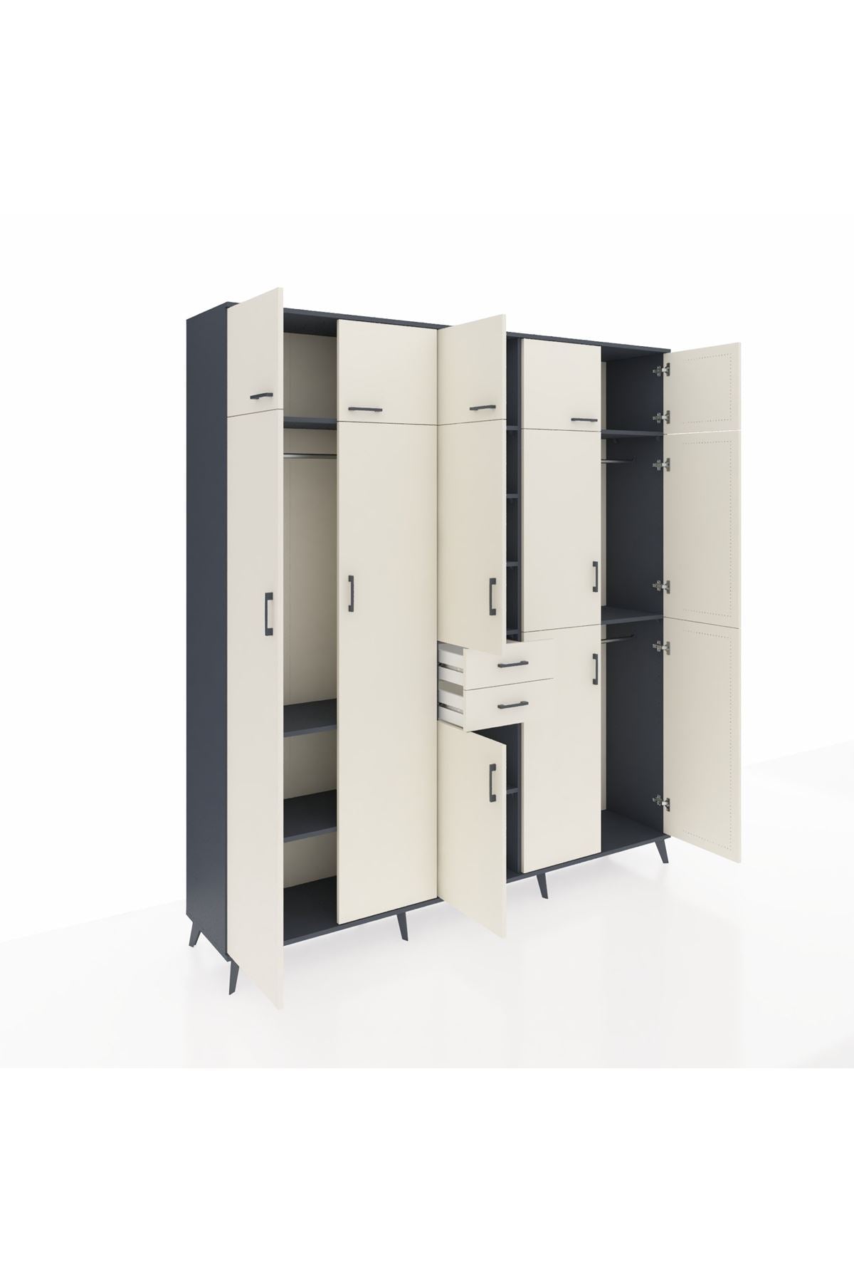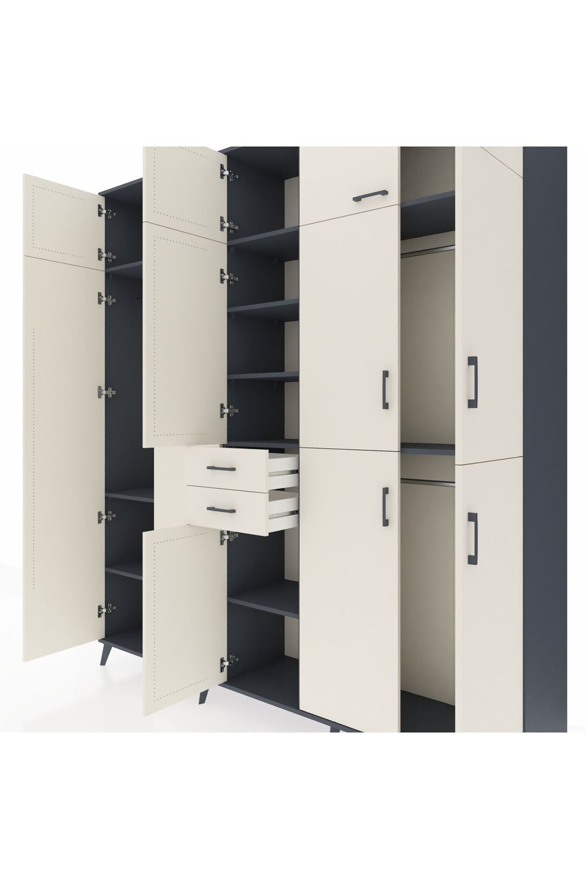 Hyperion Dolap 10 Raflı 2 Çekmeceli 3 Askılı 220x44x243 Antrasit-Aytaşı/Aytaşı