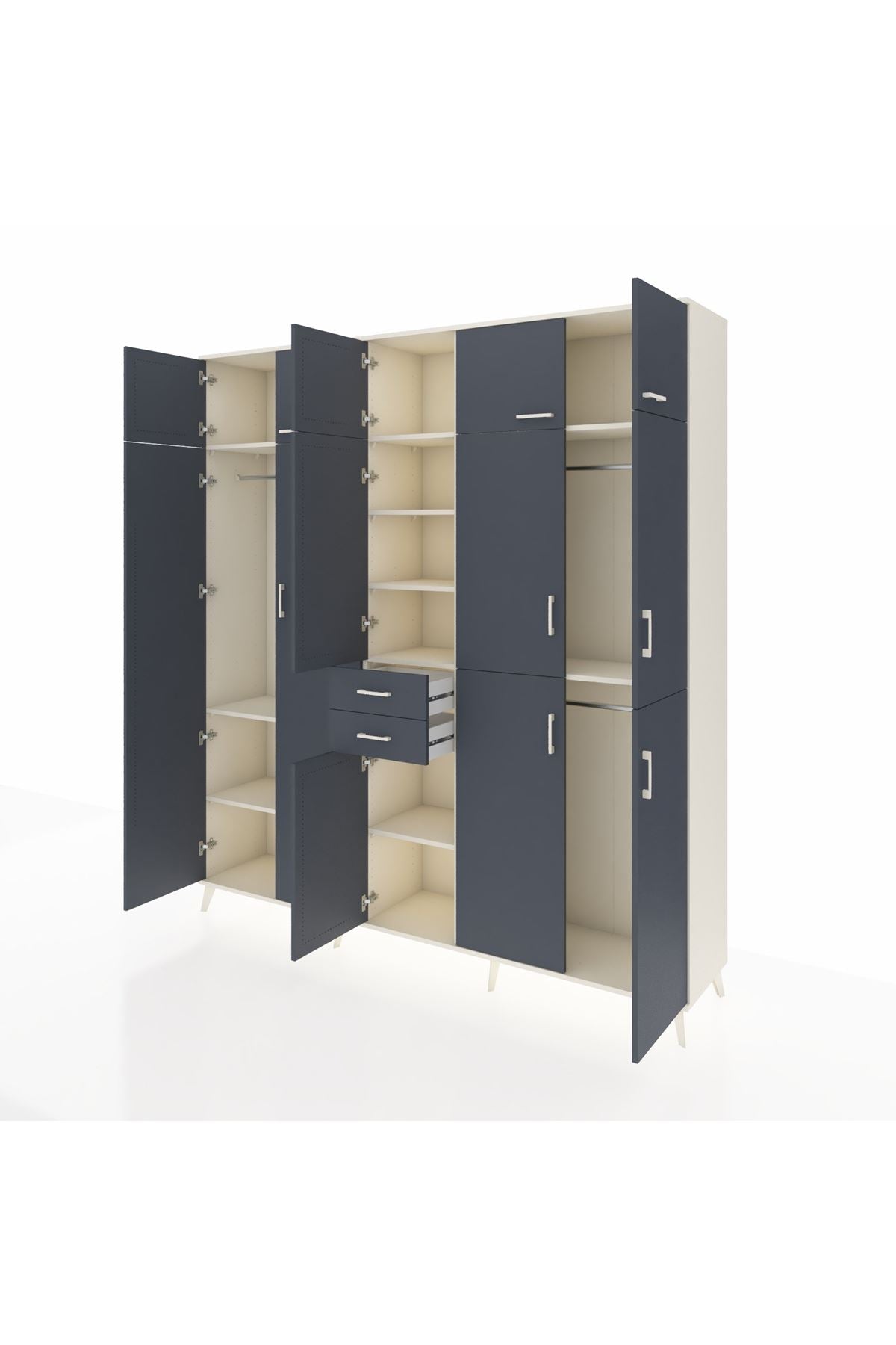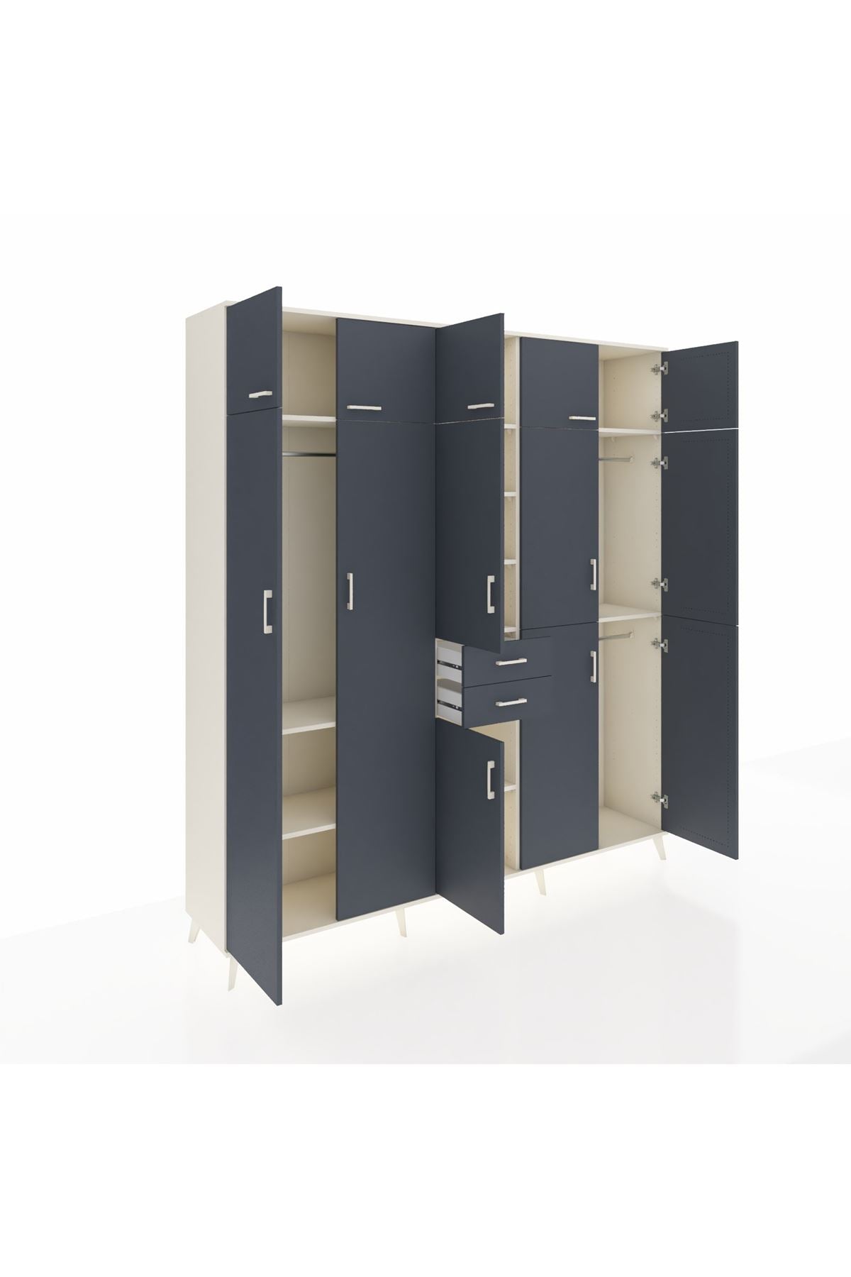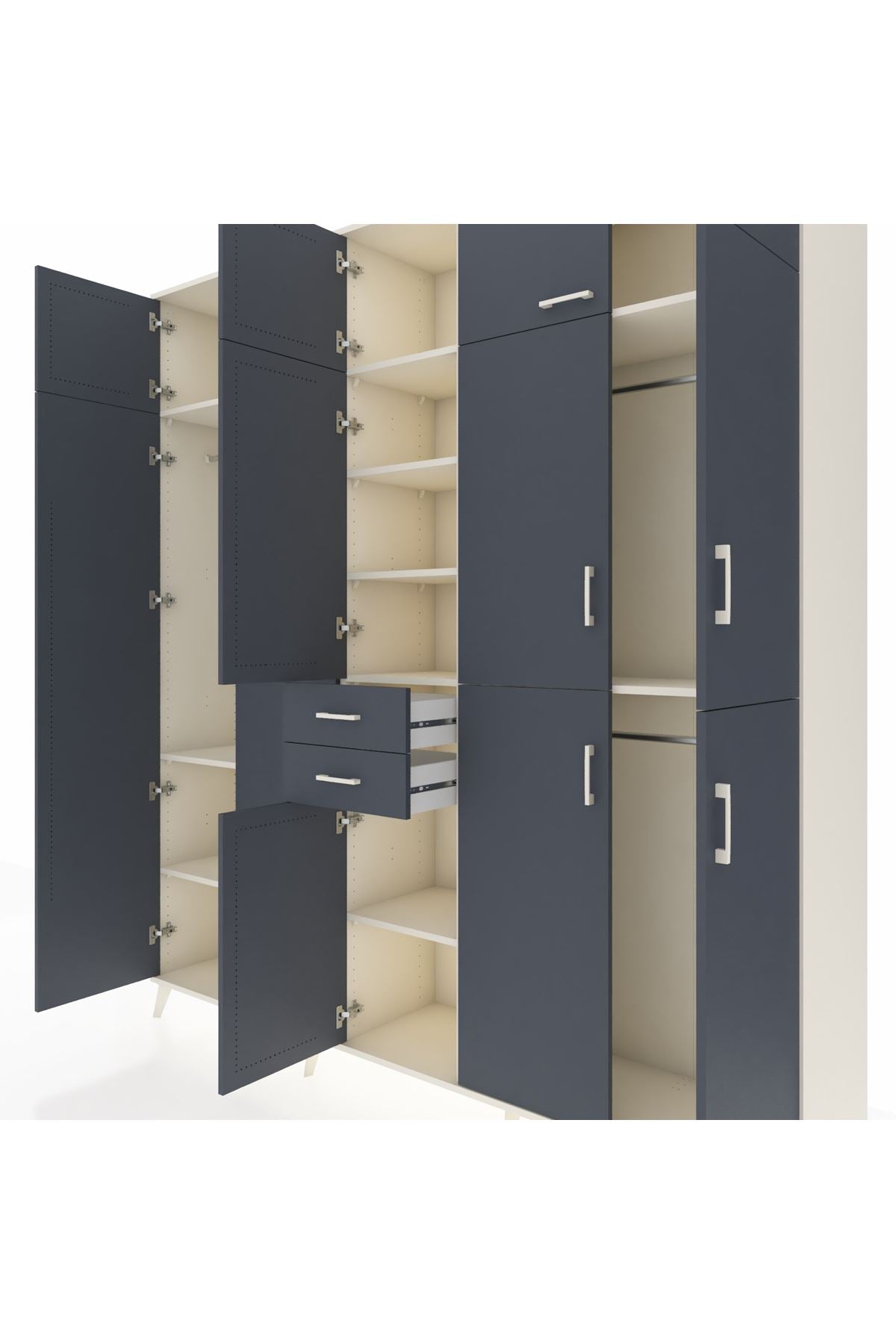 Hyperion Dolap 10 Raflı 2 Çekmeceli 3 Askılı 220x44x243 Aytaşı-Antrasit/Antrasit