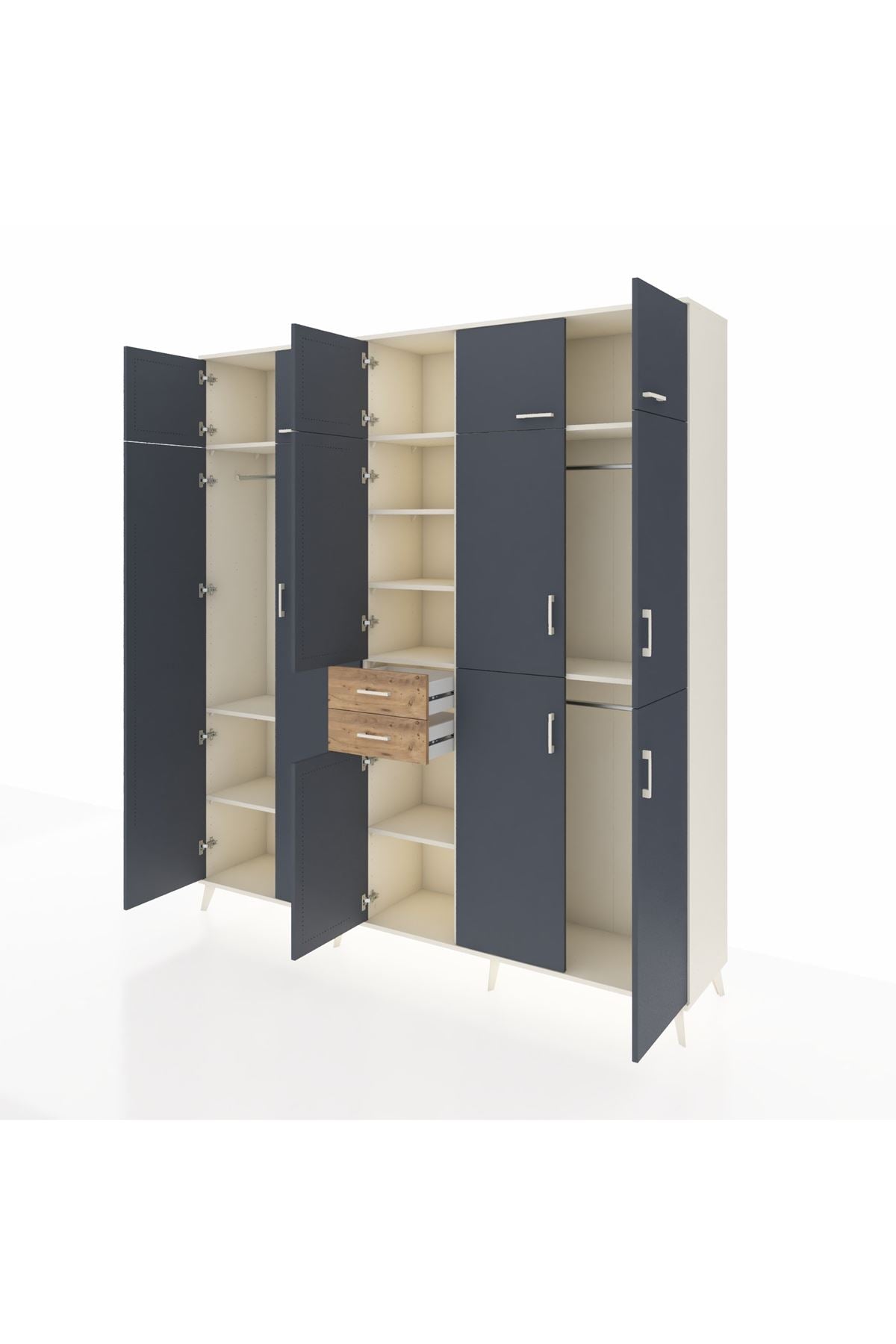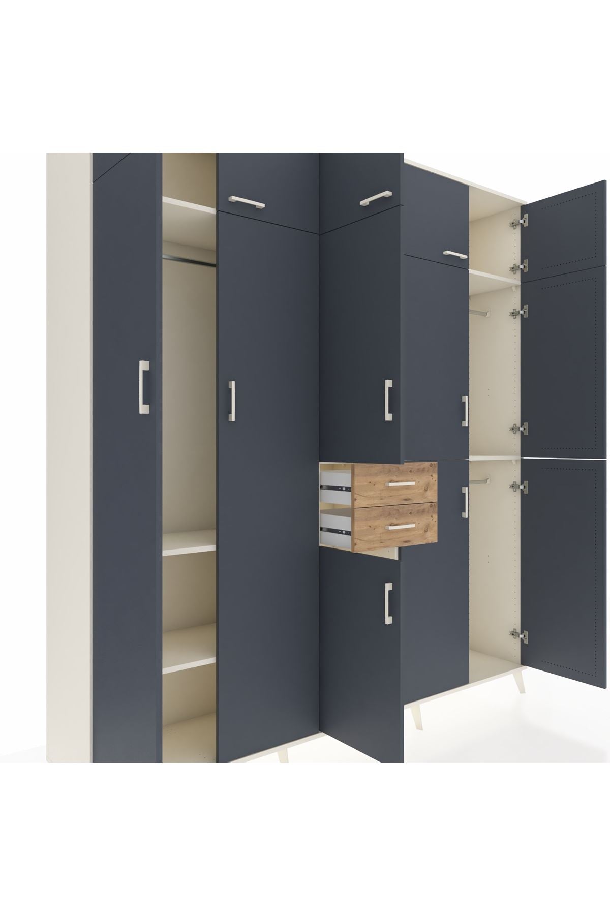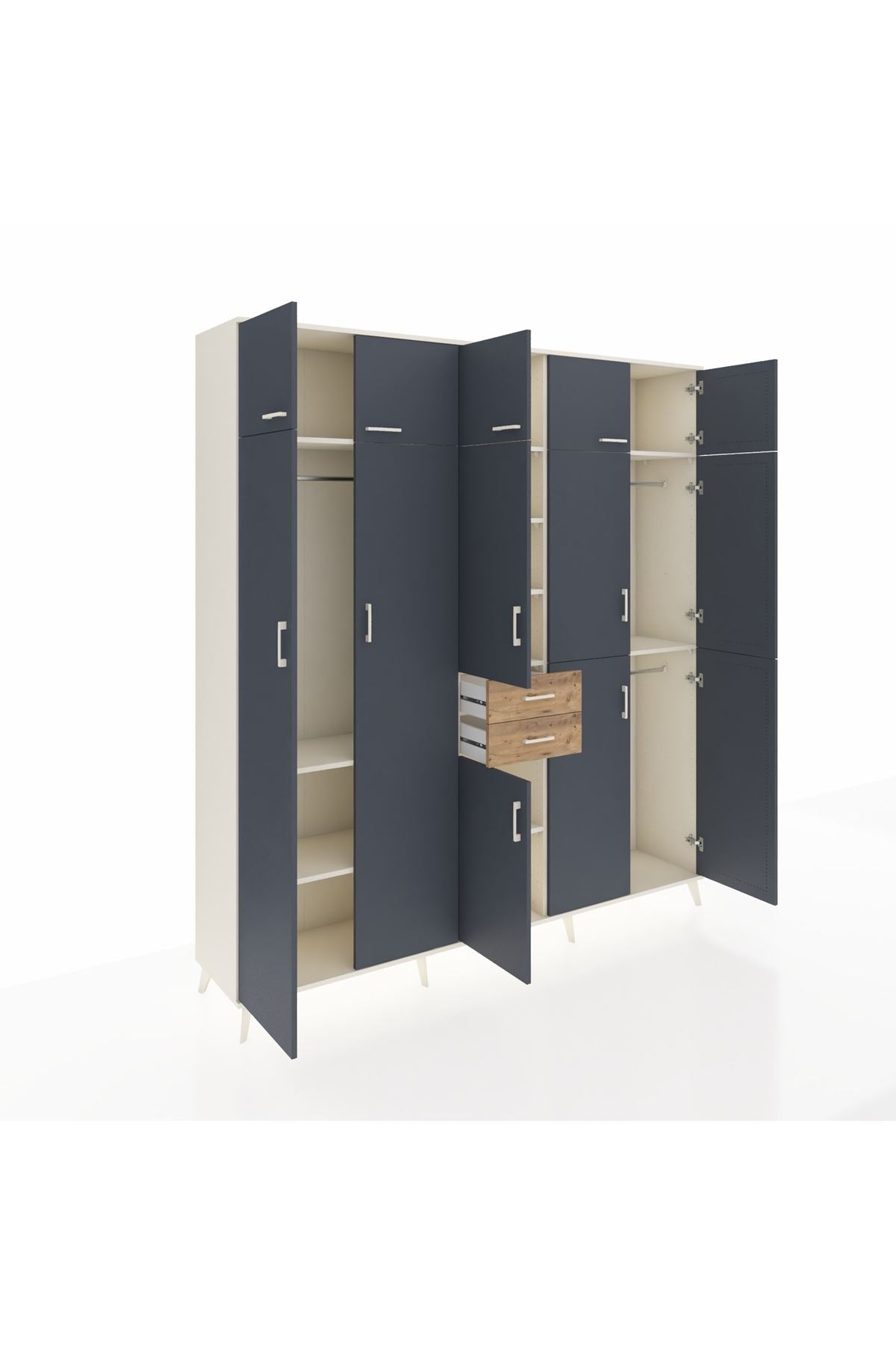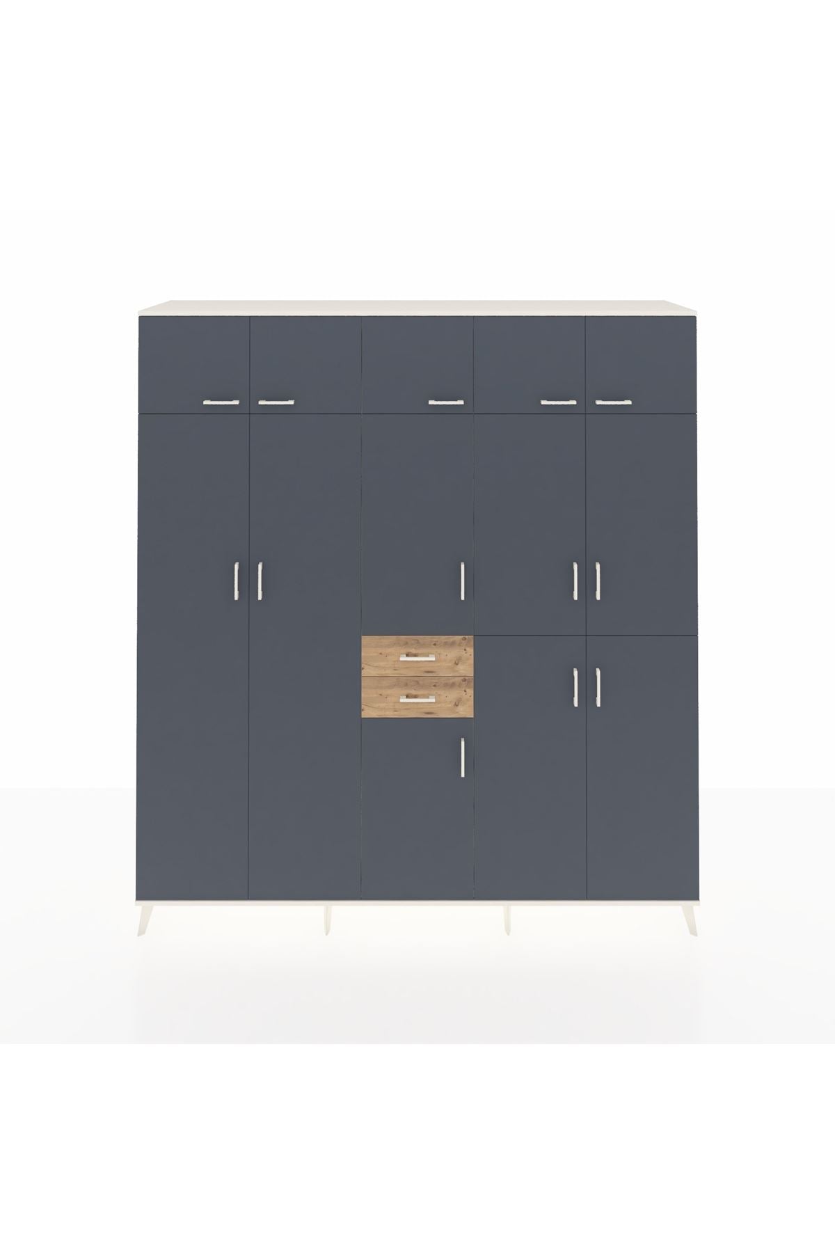 Hyperion Dolap 10 Raflı 2 Çekmeceli 3 Askılı 220x44x243 Aytaşı-Antrasit/Çam