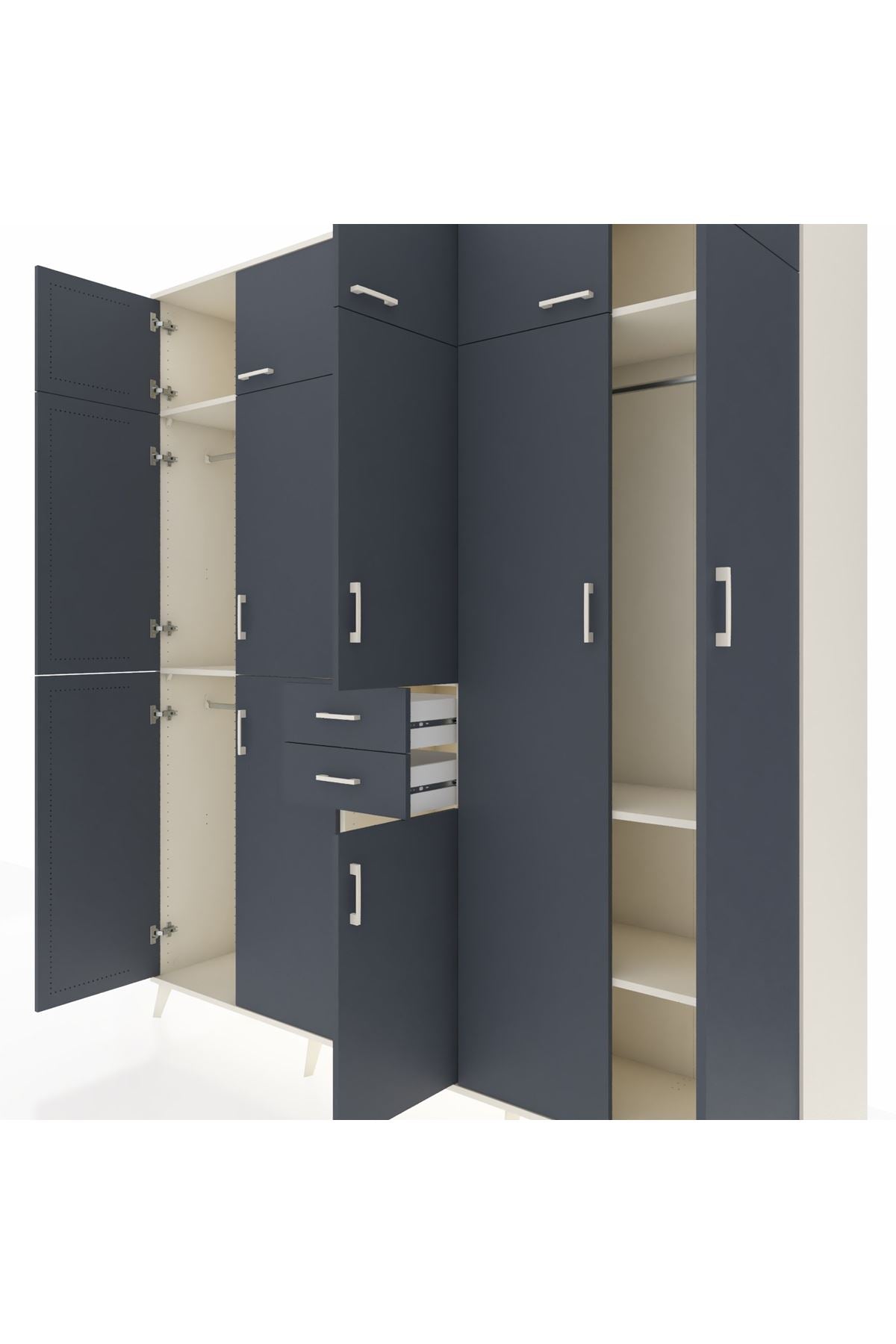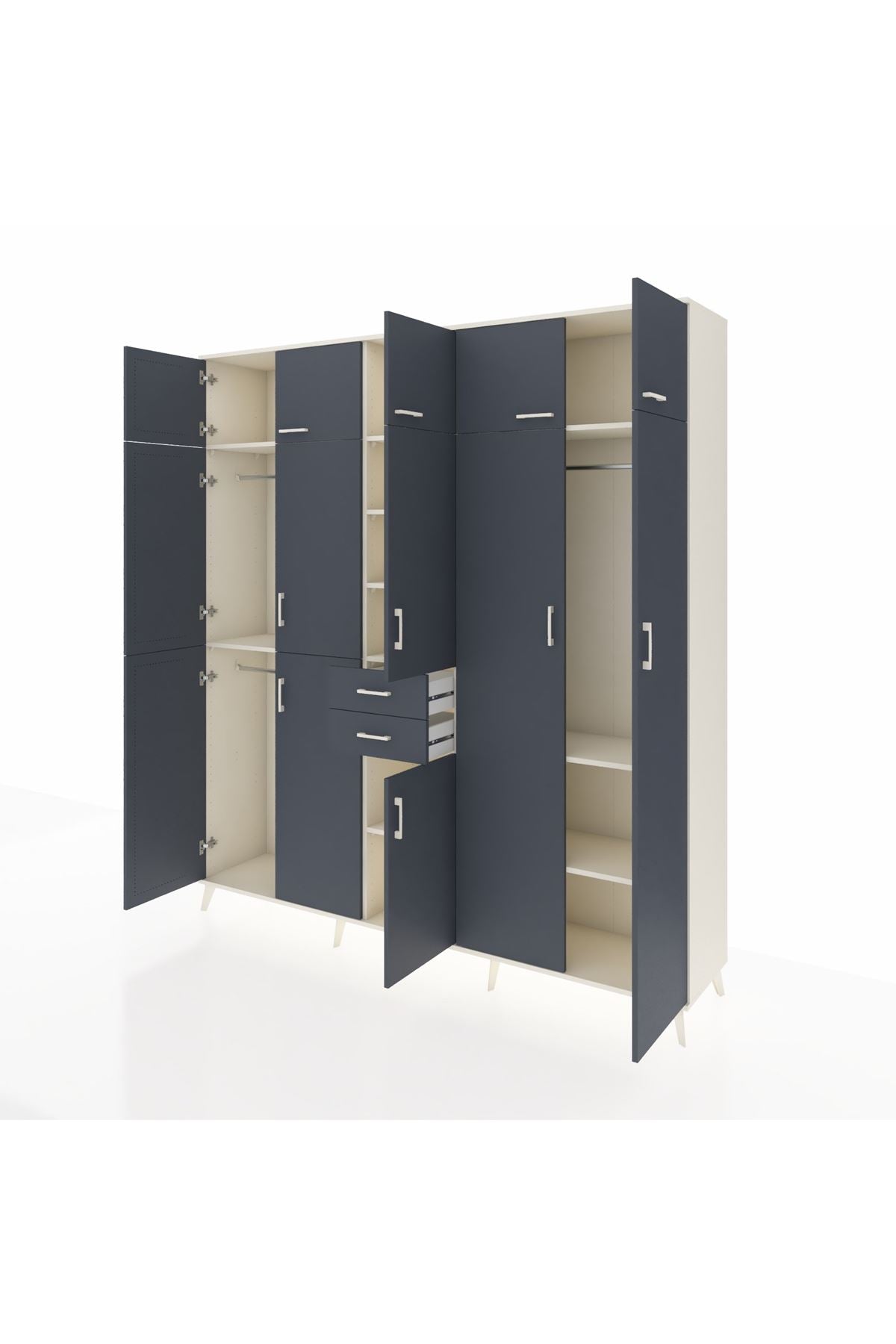 Hyperion Dolap 10 Raflı 2 Çekmeceli 3 Askılı 220x44x243 Aytaşı-Antrasit/Antrasit