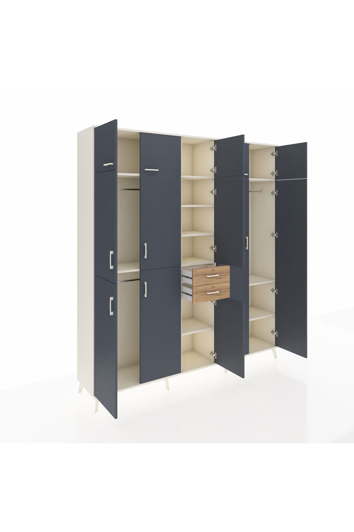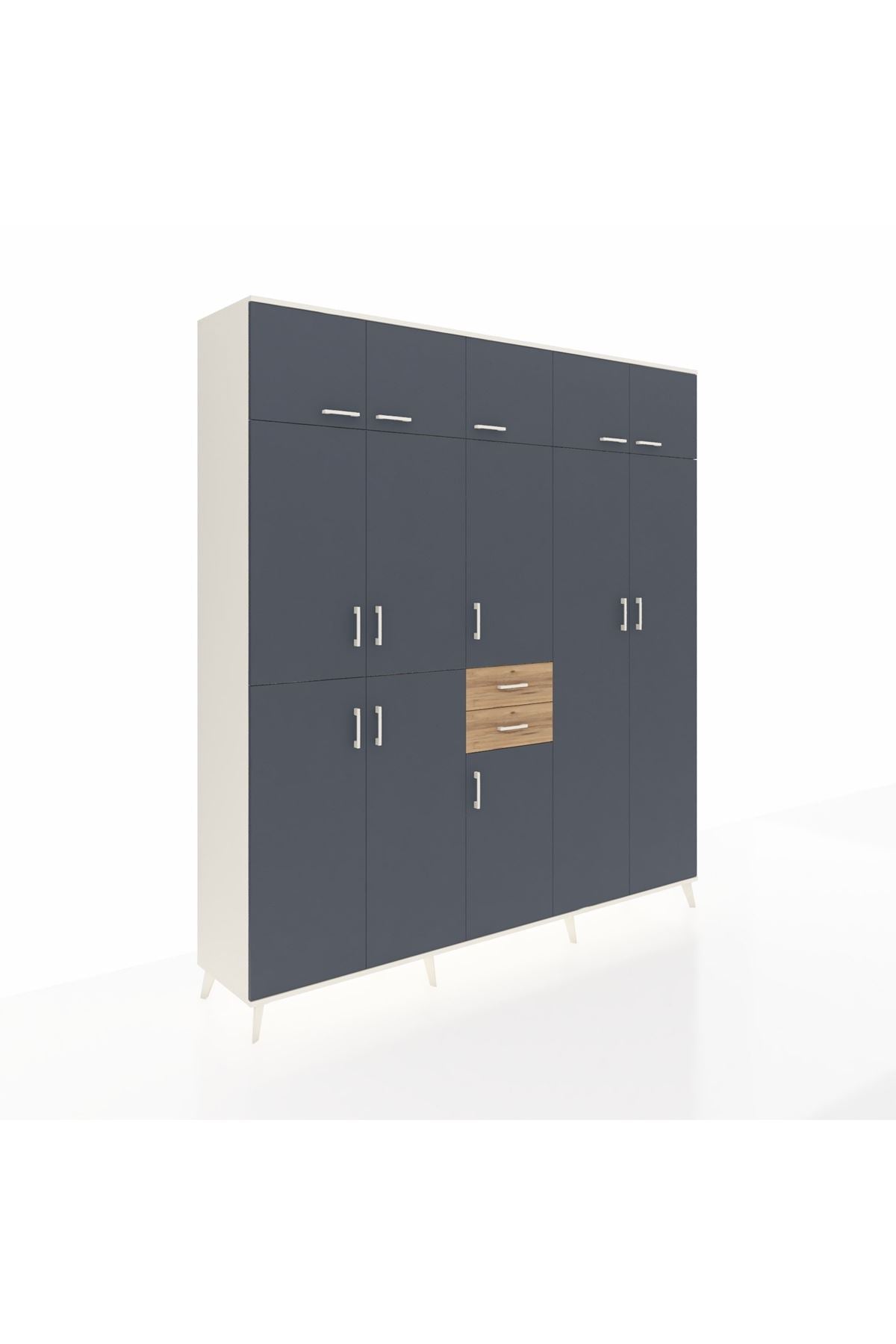 Hyperion Dolap 10 Raflı 2 Çekmeceli 3 Askılı 220x44x243 Aytaşı-Antrasit/Çam