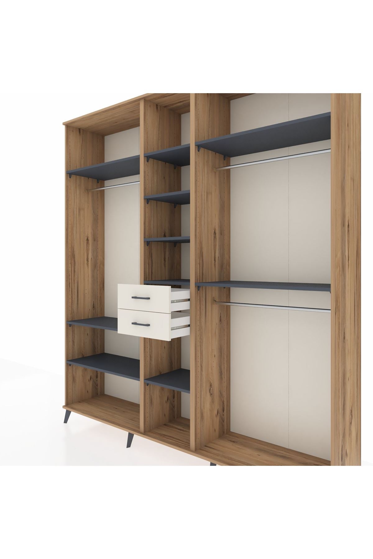 Hyperion Dolap 10 Raflı 2 Çekmeceli 3 Askılı 220x44x243 Çam-Antrasit/Aytaşı