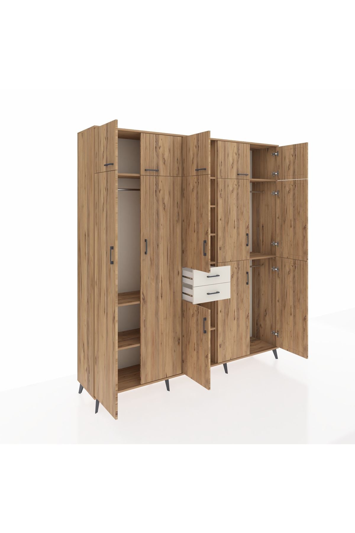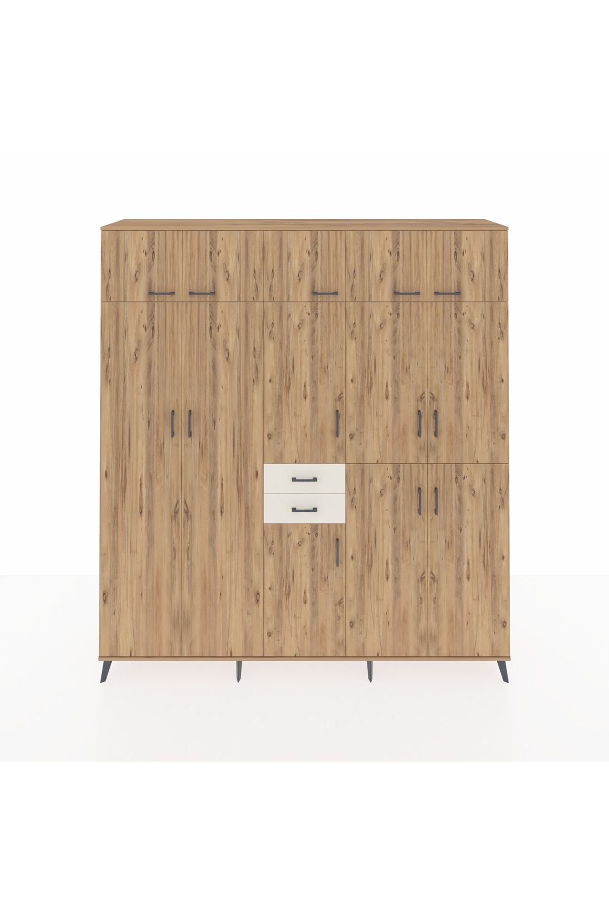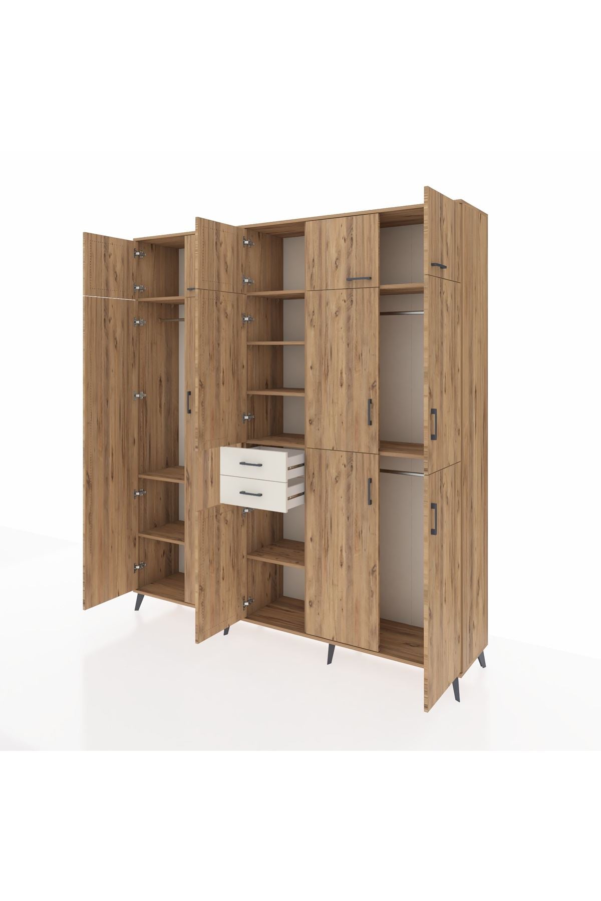 Hyperion Dolap 10 Raflı 2 Çekmeceli 3 Askılı 220x44x243 Çam-Çam/Aytaşı