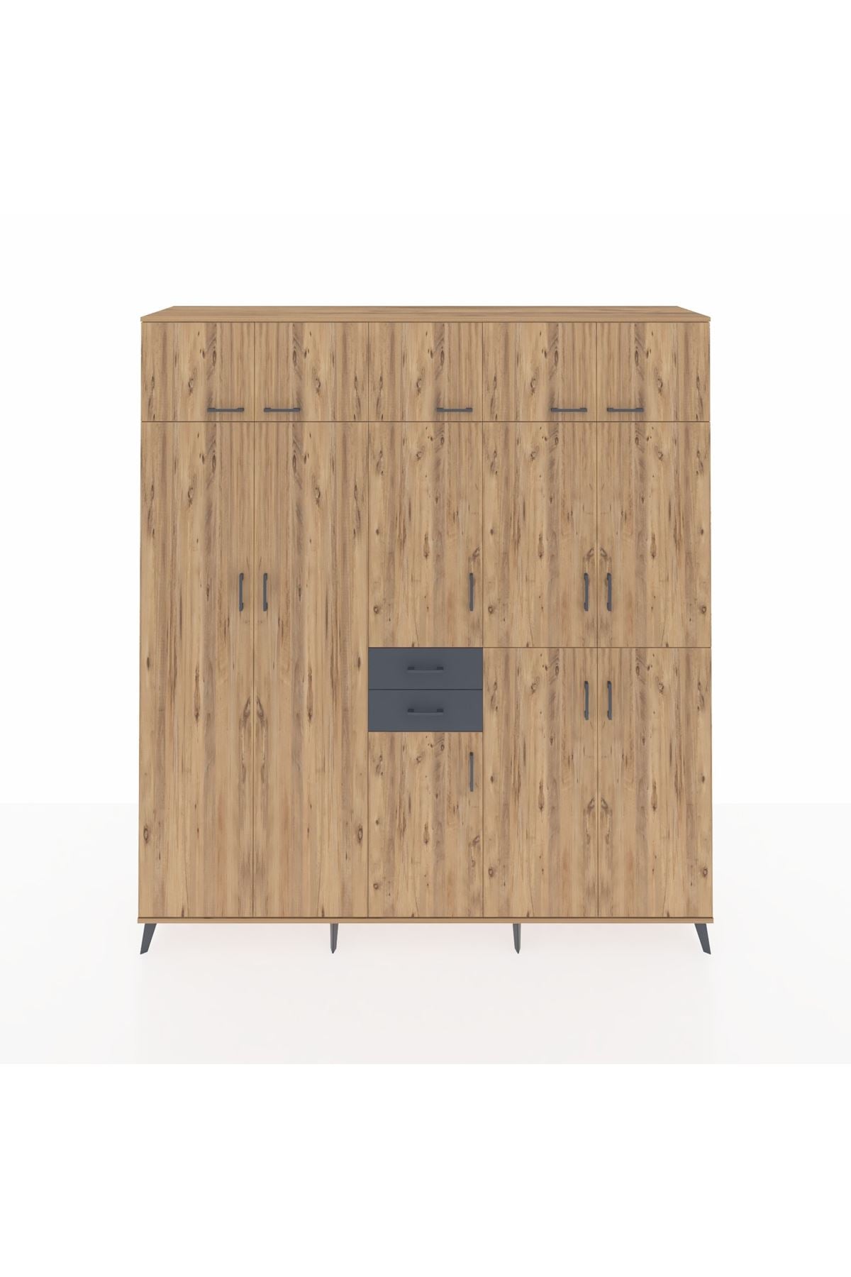 Hyperion Dolap 10 Raflı 2 Çekmeceli 3 Askılı 220x44x243 Çam-Çam/Antrasit