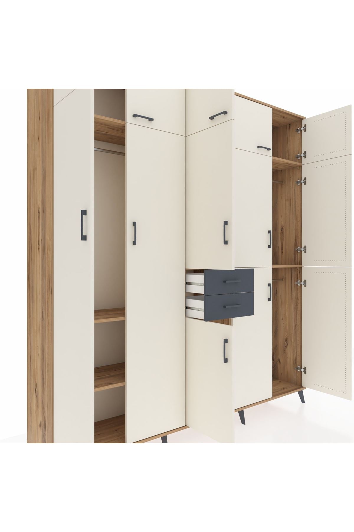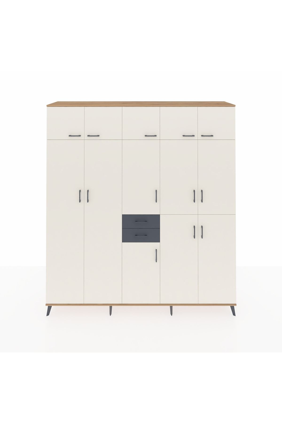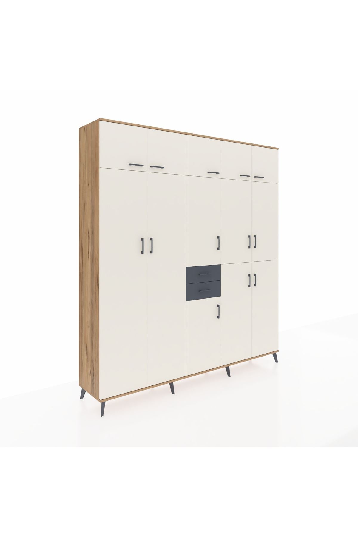 Hyperion Dolap 10 Raflı 2 Çekmeceli 3 Askılı 220x44x243 Çam-Aytaşı/Antrasit