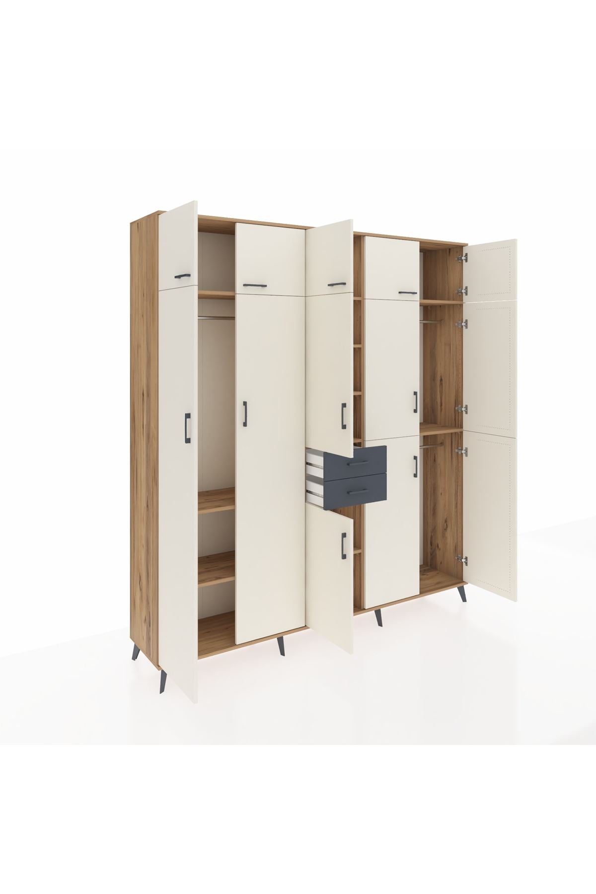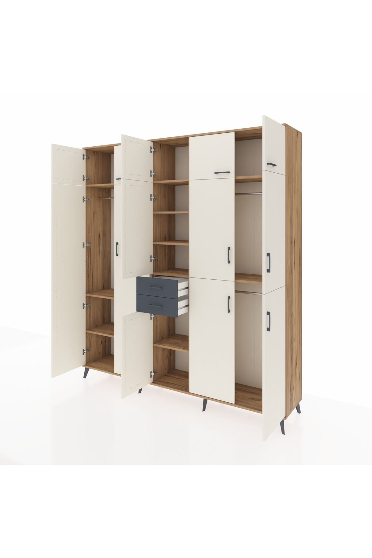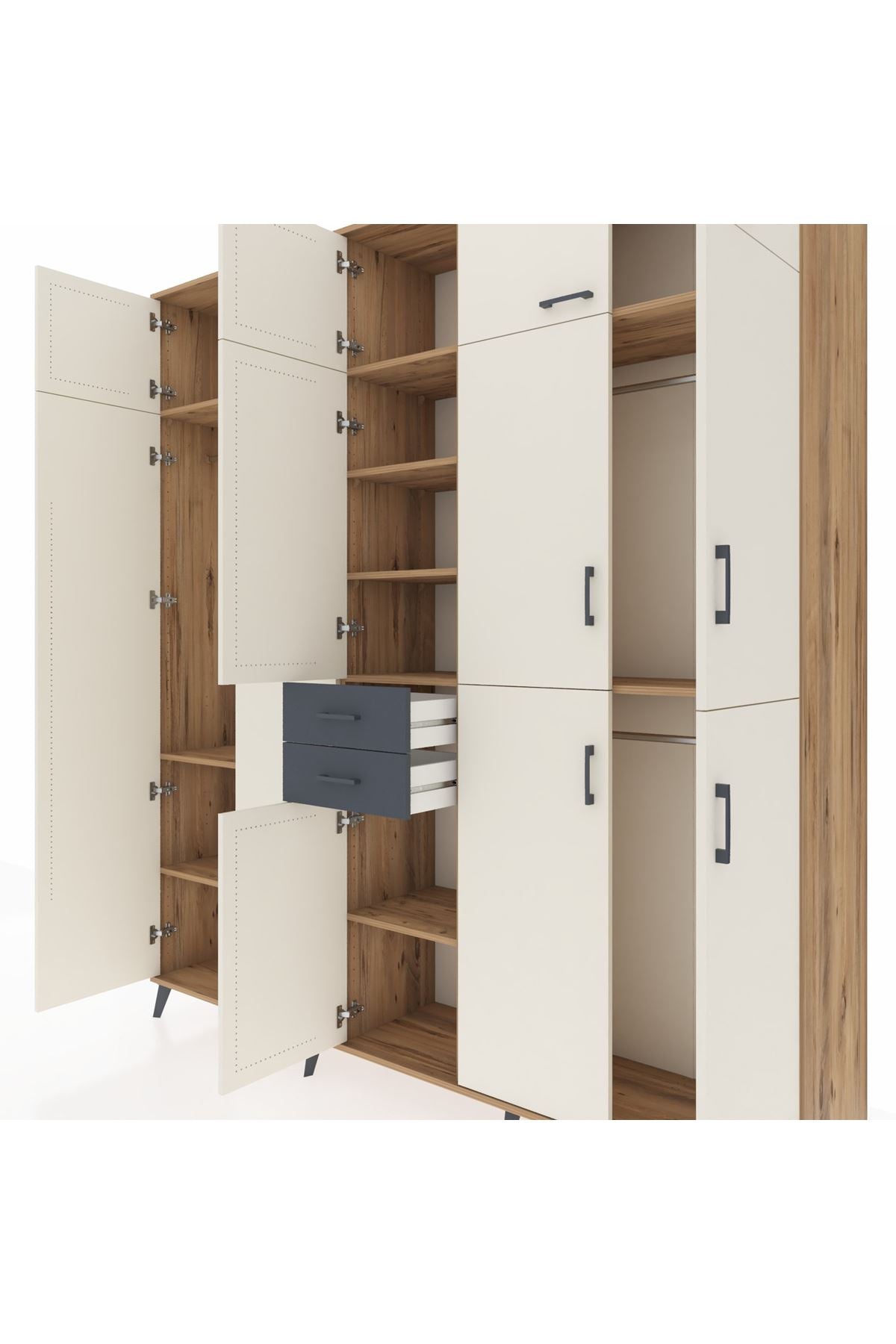 Hyperion Dolap 10 Raflı 2 Çekmeceli 3 Askılı 220x44x243 Çam-Aytaşı/Antrasit
