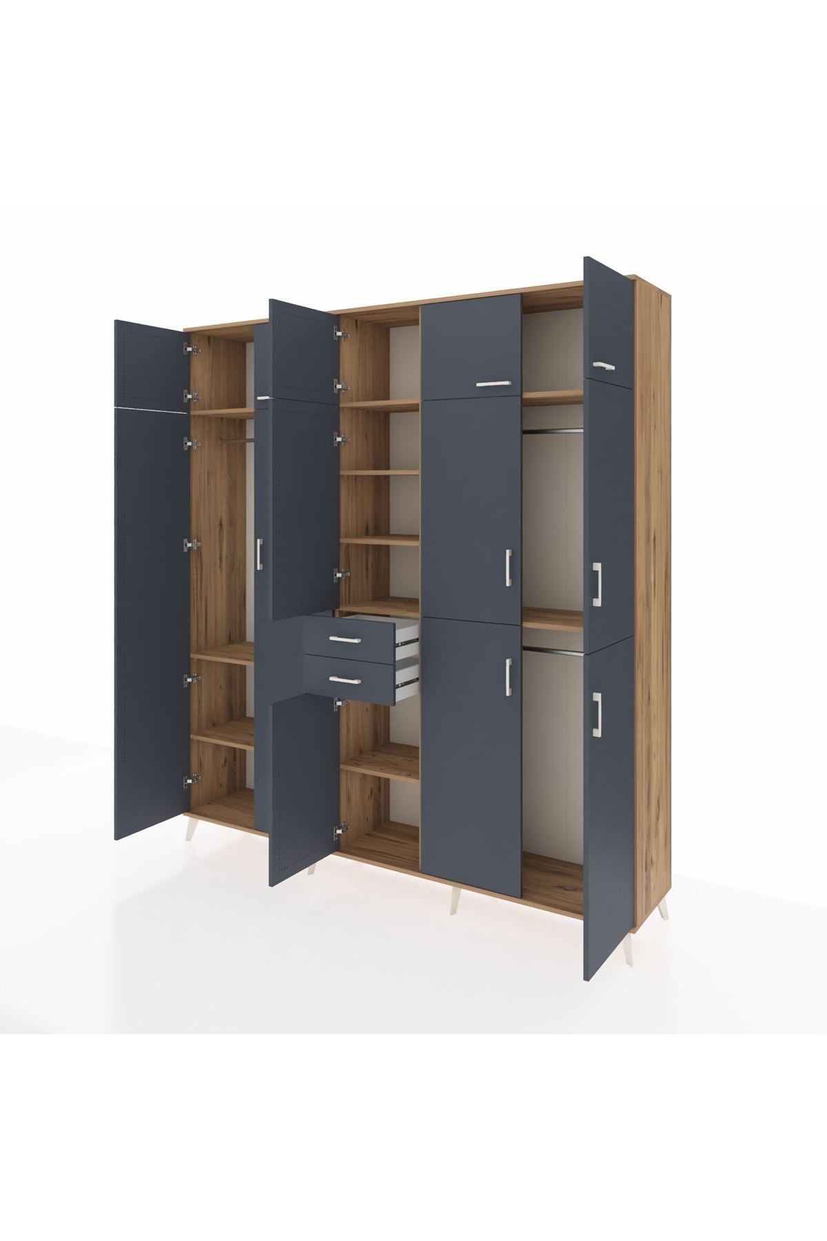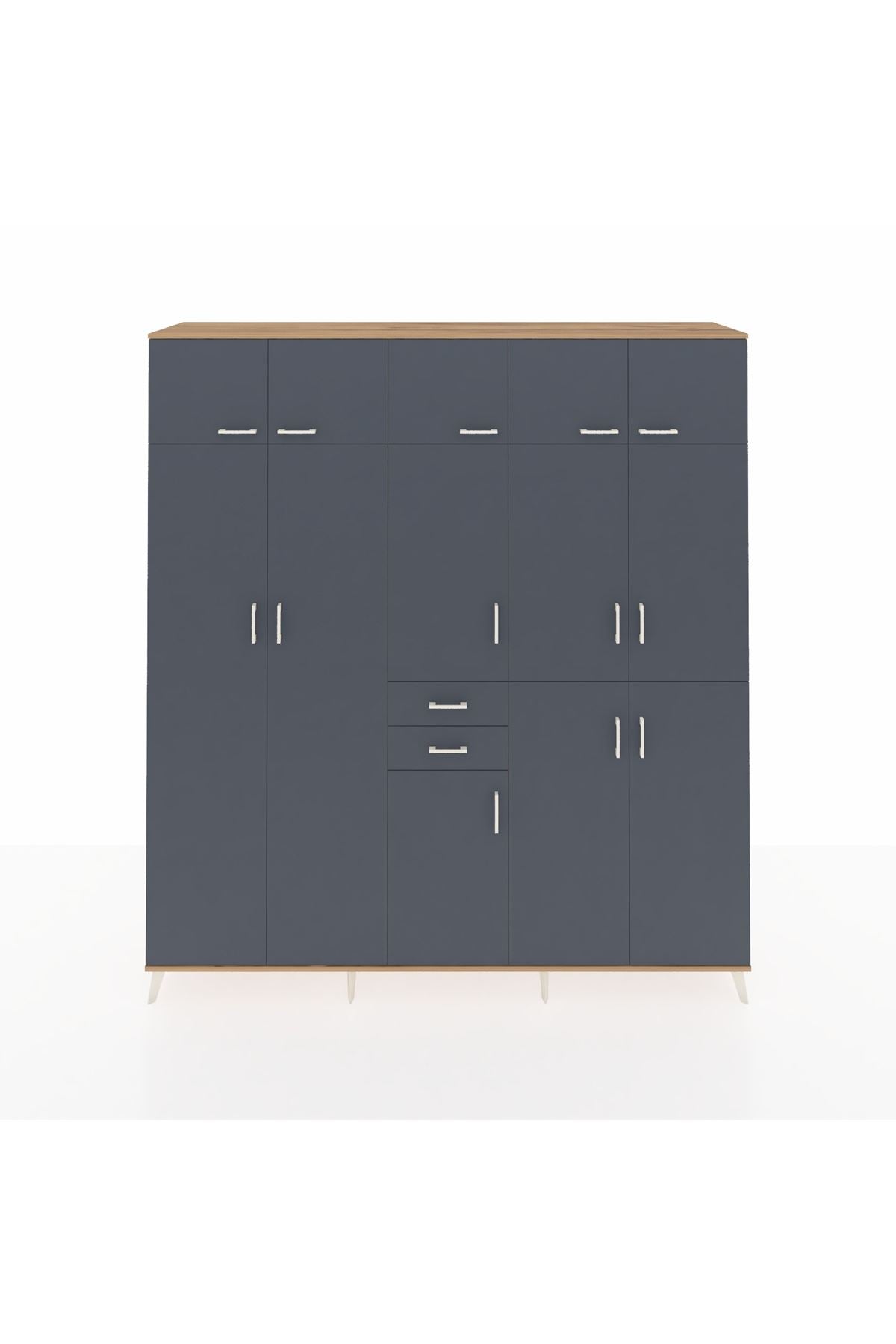 Hyperion Dolap 10 Raflı 2 Çekmeceli 3 Askılı 220x44x243 Çam-Antrasit/Antrasit