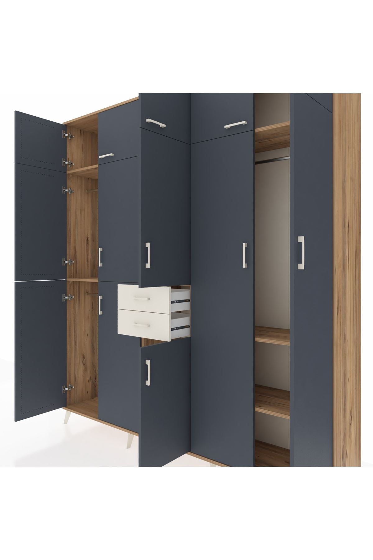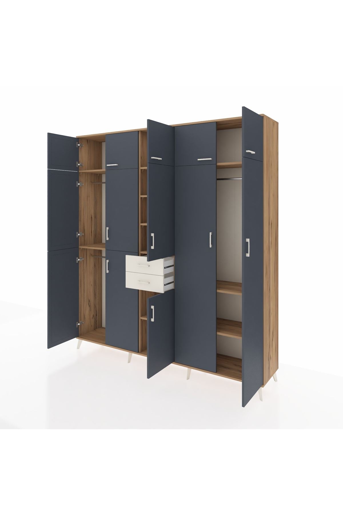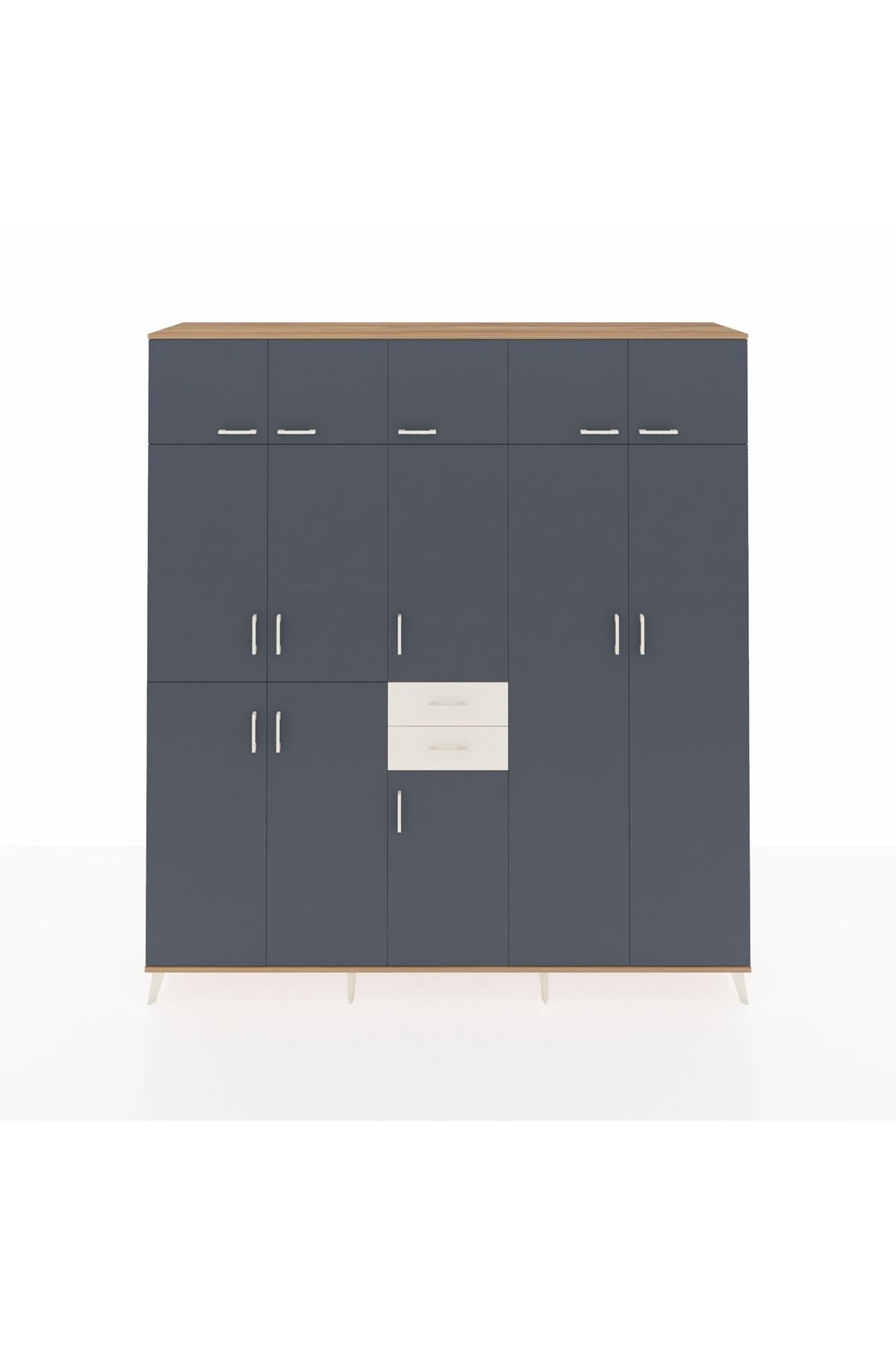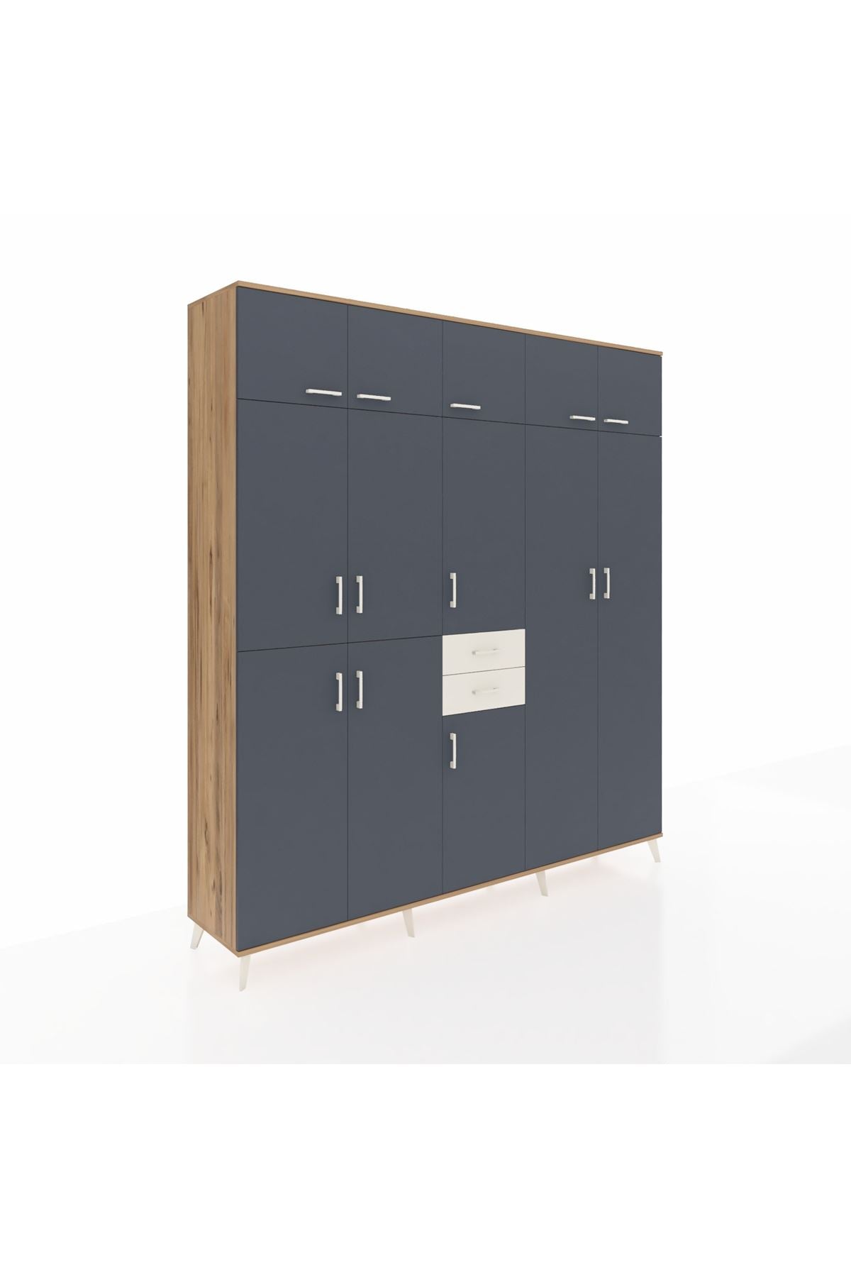 Hyperion Dolap 10 Raflı 2 Çekmeceli 3 Askılı 220x44x243 Çam-Antrasit/Aytaşı