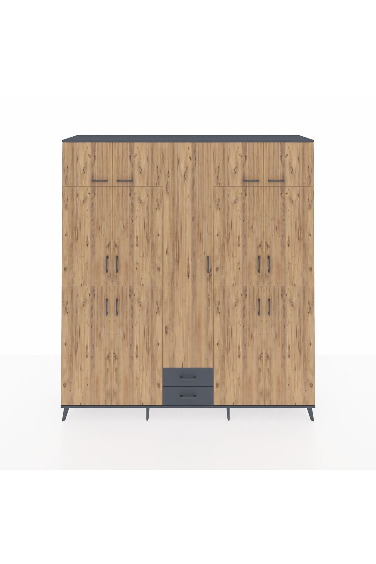 Hyperion Dolap 10 Raflı 2 Çekmeceli 4 Askılı 220x44x243 Antrasit-Çam/Antrasit