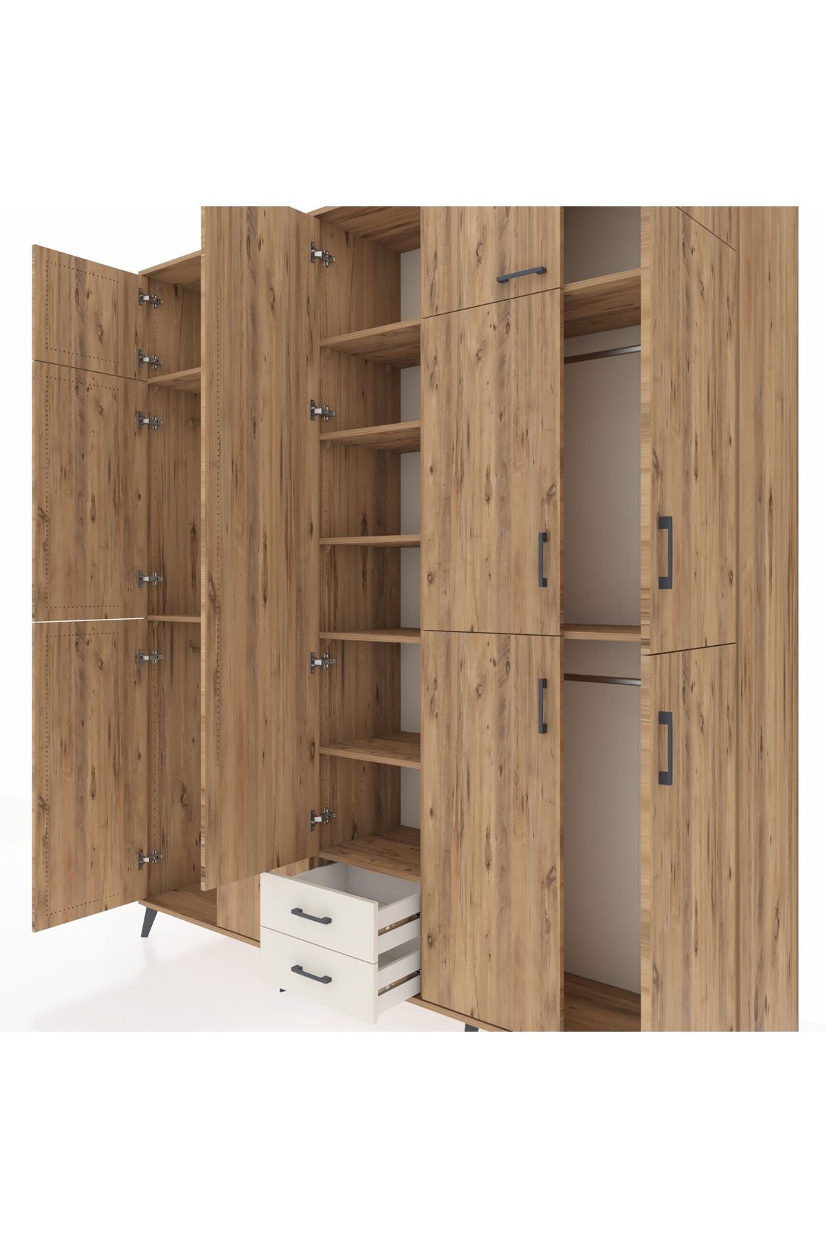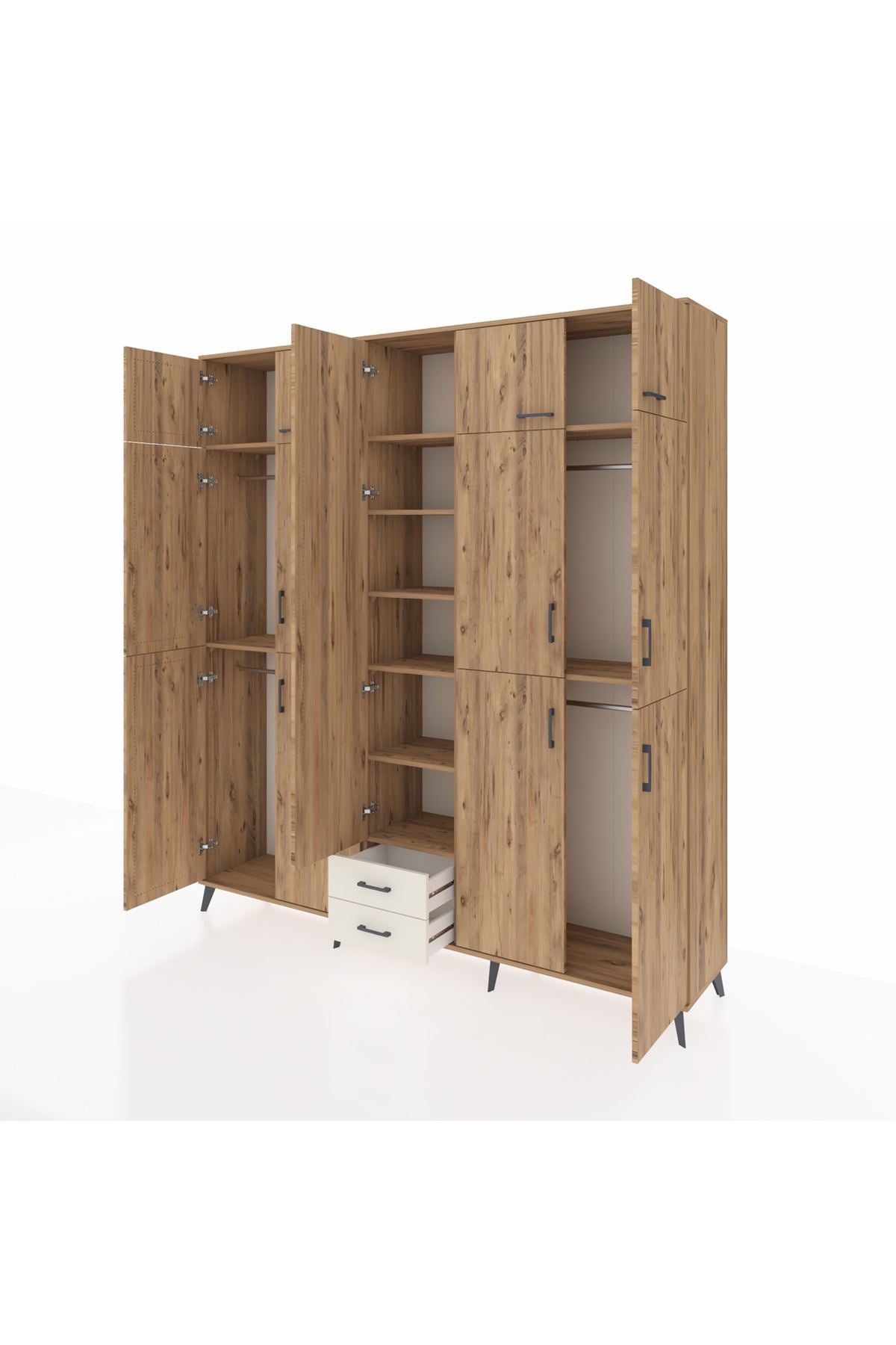 Hyperion Dolap 10 Raflı 2 Çekmeceli 4 Askılı 220x44x243 Çam-Çam/Aytaşı
